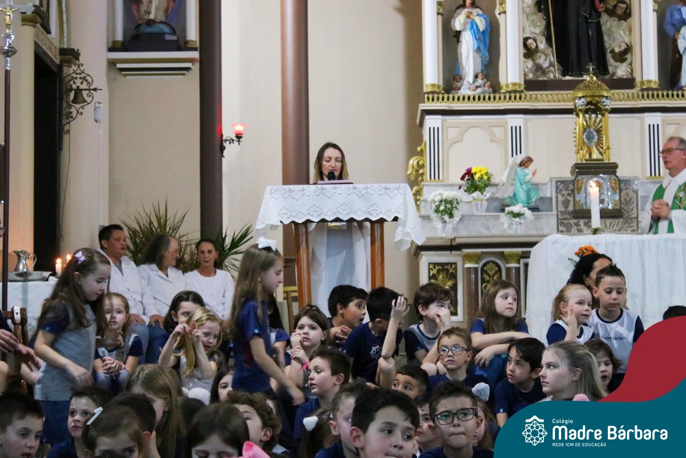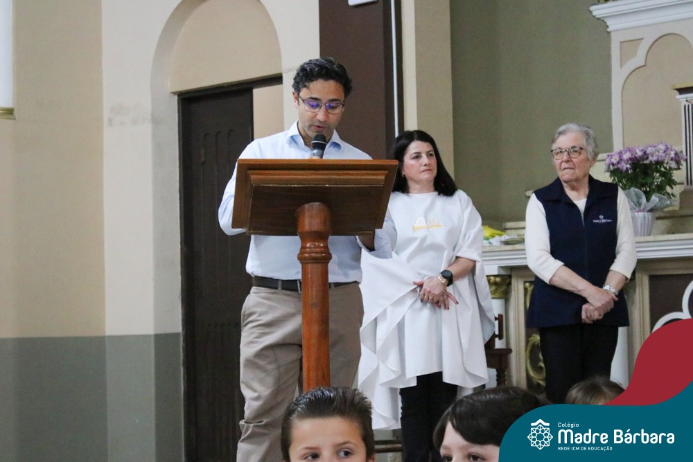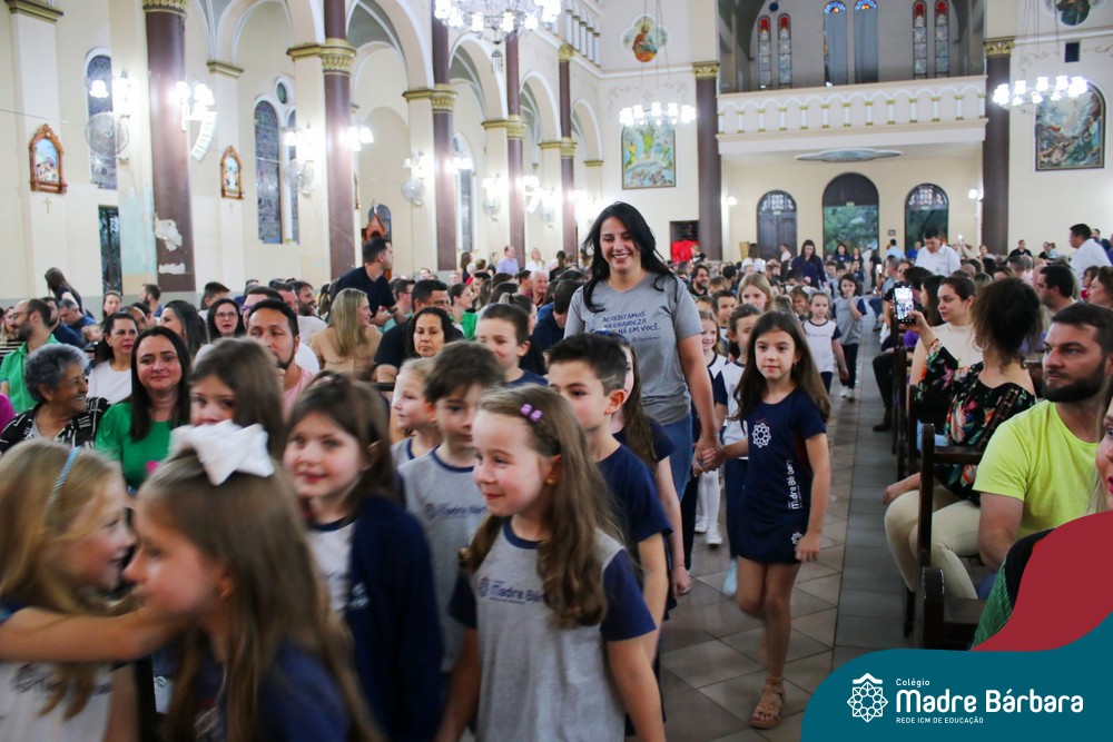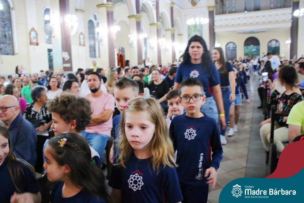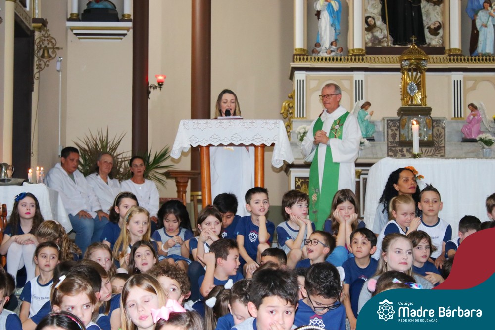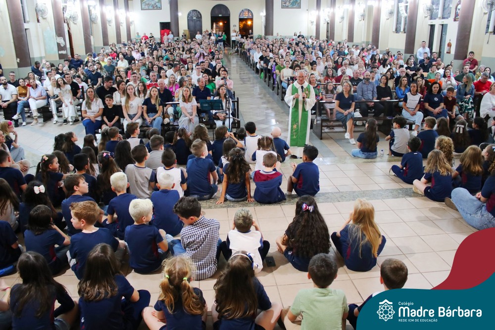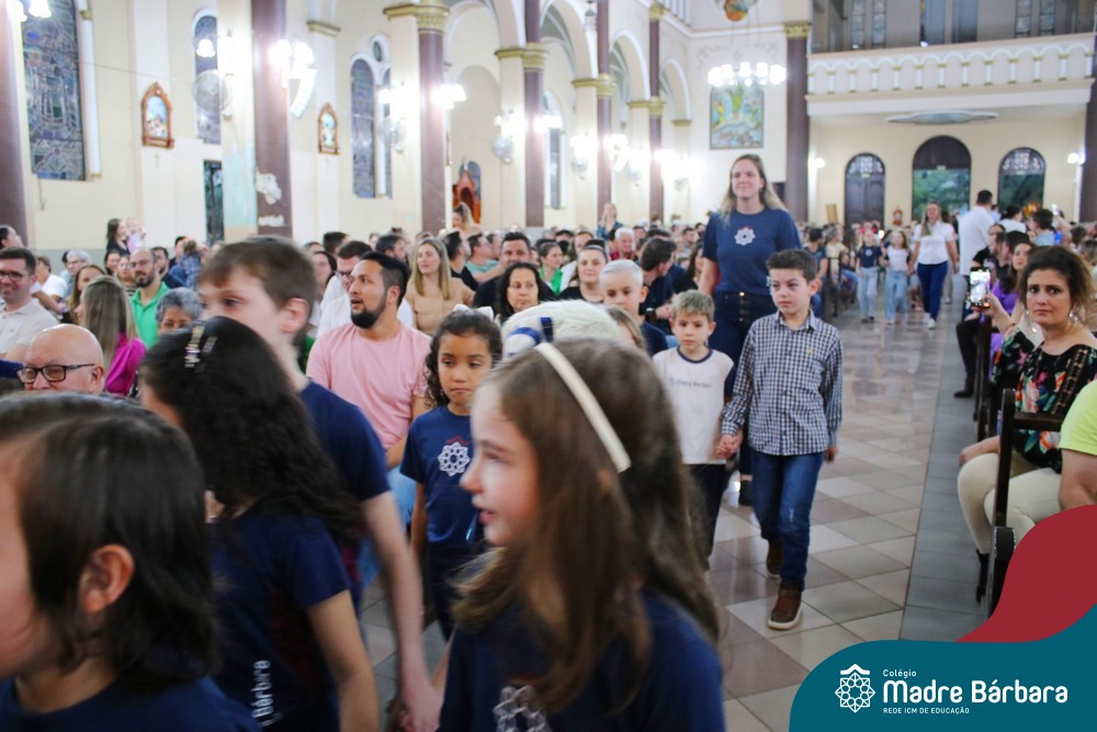 Na noite de sábado (03.08) ocorreu na Paróquia Santo Inácio de Loyola a Missa da Família com as turmas e famílias dos 1ºs aos 3ºs anos do Ensino Fundamental – Anos Iniciais. A celebração contou com orações, músicas, leituras bíblicas e uma música em homenagem às famílias. A Missa da Família buscou reunir o Dia das Pais e Dia das Mães, já que o momento preparado para as mães precisou ser cancelado pela enchente de maio. Foi um momento especial de conexão com Deus e agradecimento pela família. Agradecemos a presença das famílias e crianças!