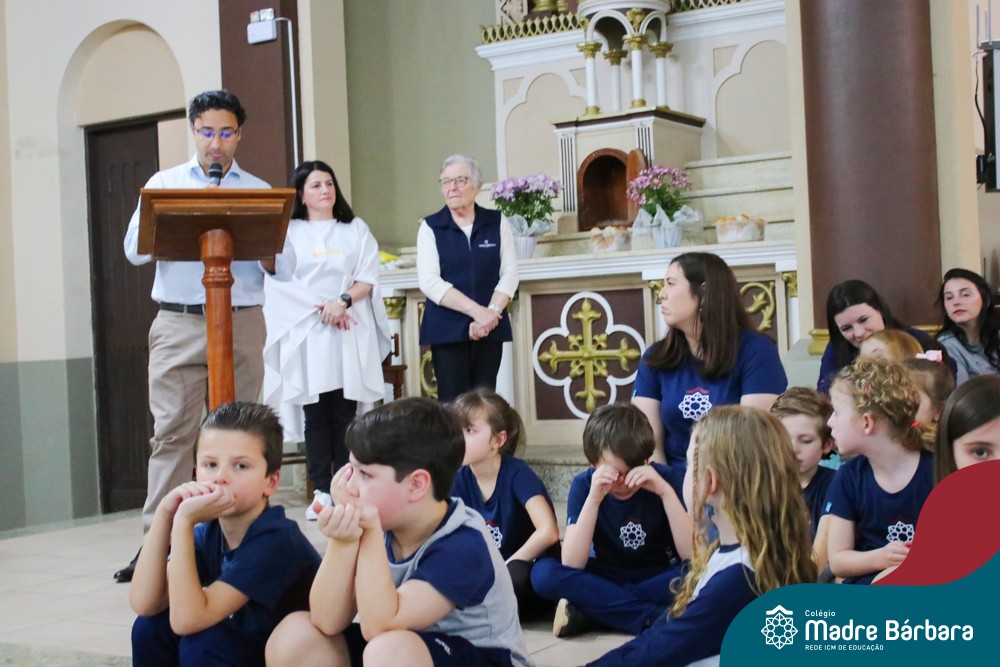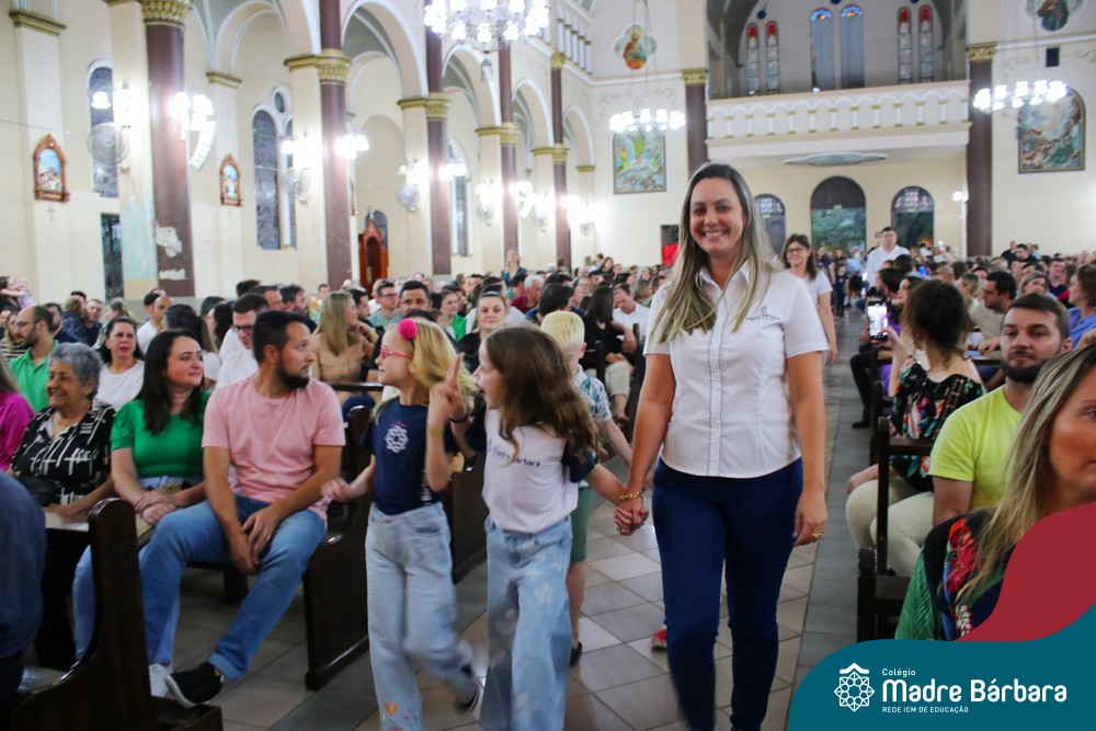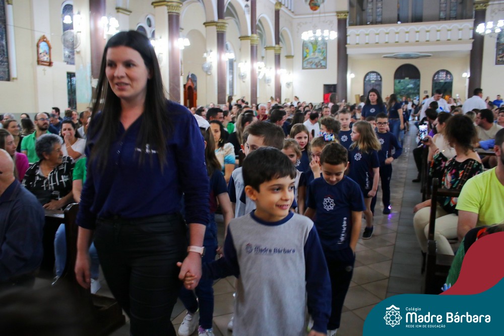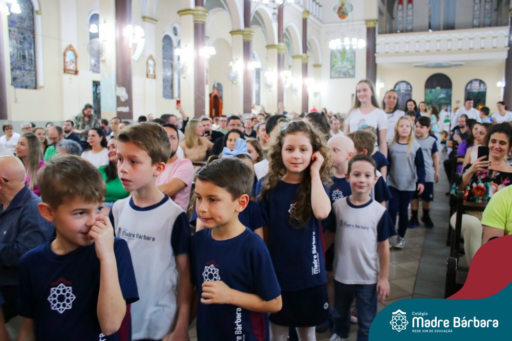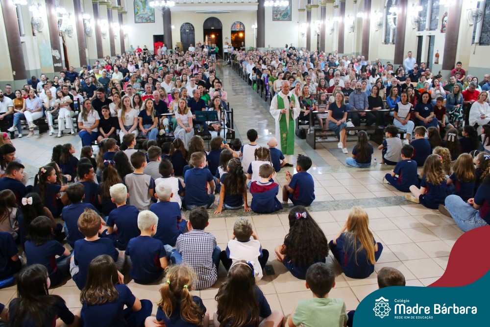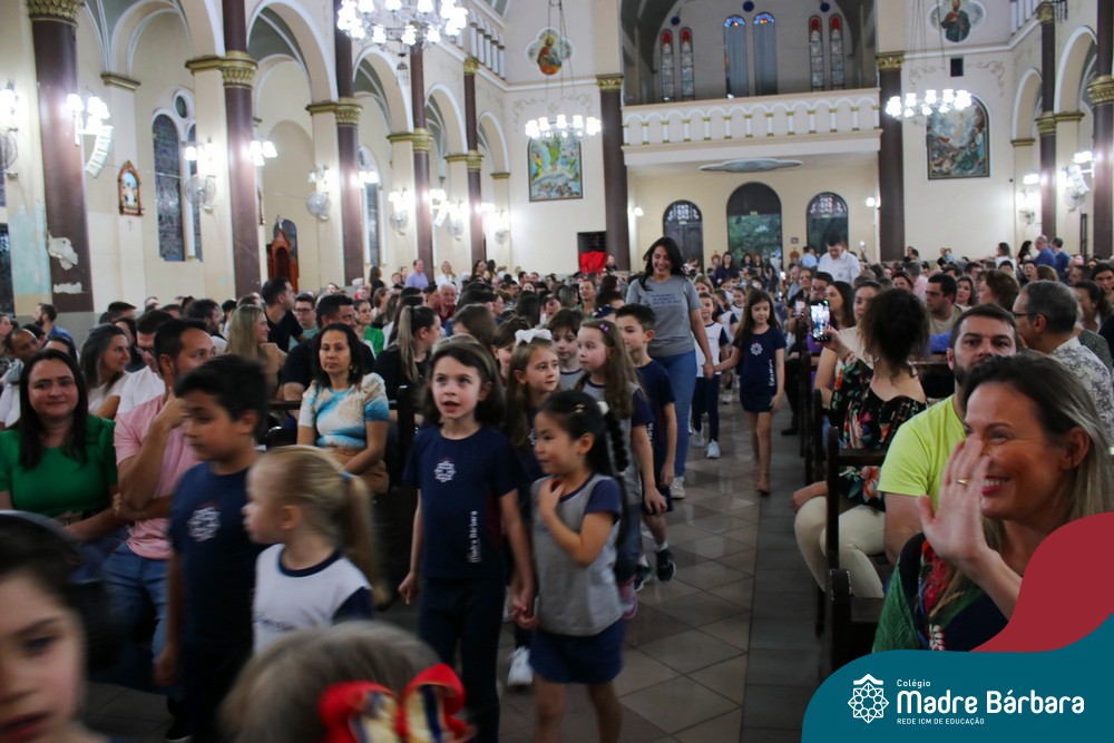 Na noite de sábado (03.08) ocorreu na Paróquia Santo Inácio de Loyola a Missa da Família com as turmas e famílias dos 1ºs aos 3ºs anos do Ensino Fundamental – Anos Iniciais. A celebração contou com orações, músicas, leituras bíblicas e uma música em homenagem às famílias. A Missa da Família buscou reunir o Dia das Pais e Dia das Mães, já que o momento preparado para as mães precisou ser cancelado pela enchente de maio. Foi um momento especial de conexão com Deus e agradecimento pela família. Agradecemos a presença das famílias e crianças!