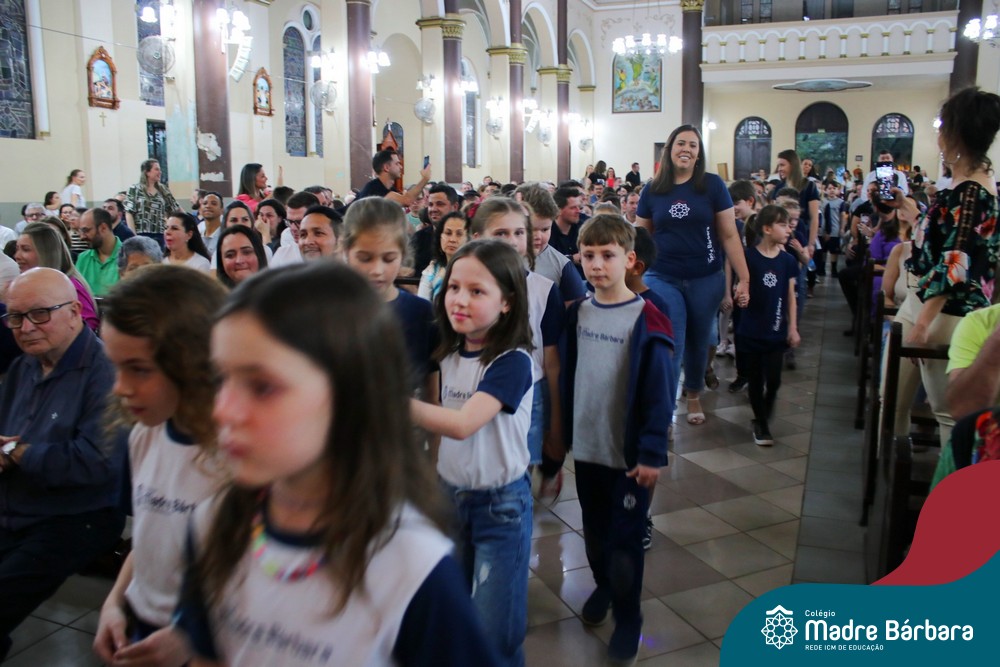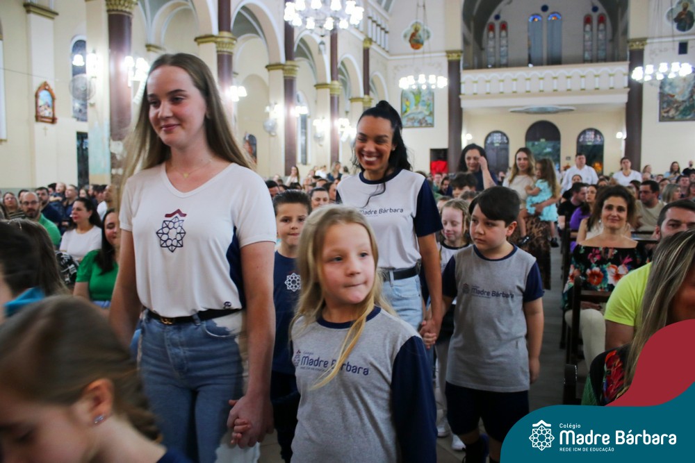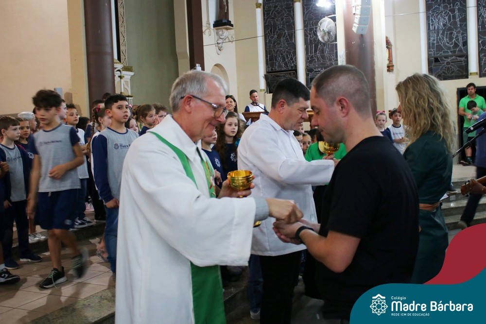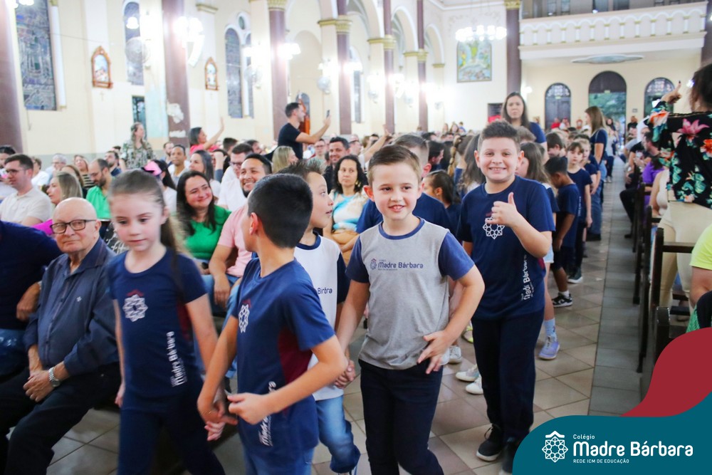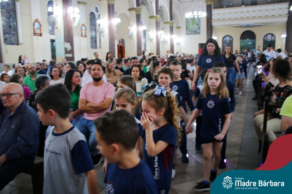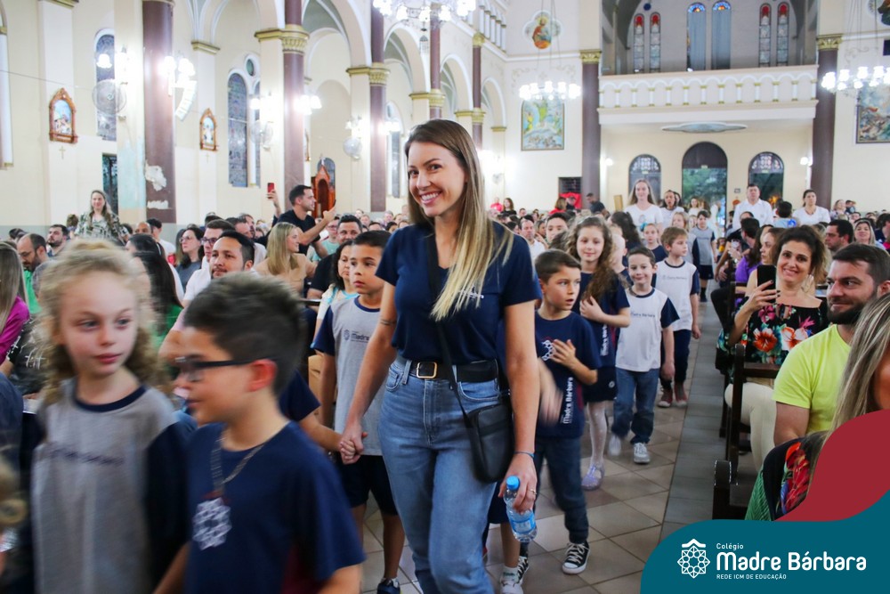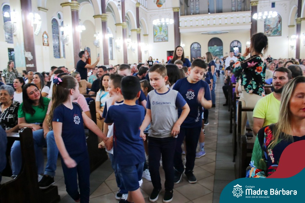 Na noite de sábado (03.08) ocorreu na Paróquia Santo Inácio de Loyola a Missa da Família com as turmas e famílias dos 1ºs aos 3ºs anos do Ensino Fundamental – Anos Iniciais. A celebração contou com orações, músicas, leituras bíblicas e uma música em homenagem às famílias. A Missa da Família buscou reunir o Dia das Pais e Dia das Mães, já que o momento preparado para as mães precisou ser cancelado pela enchente de maio. Foi um momento especial de conexão com Deus e agradecimento pela família. Agradecemos a presença das famílias e crianças!