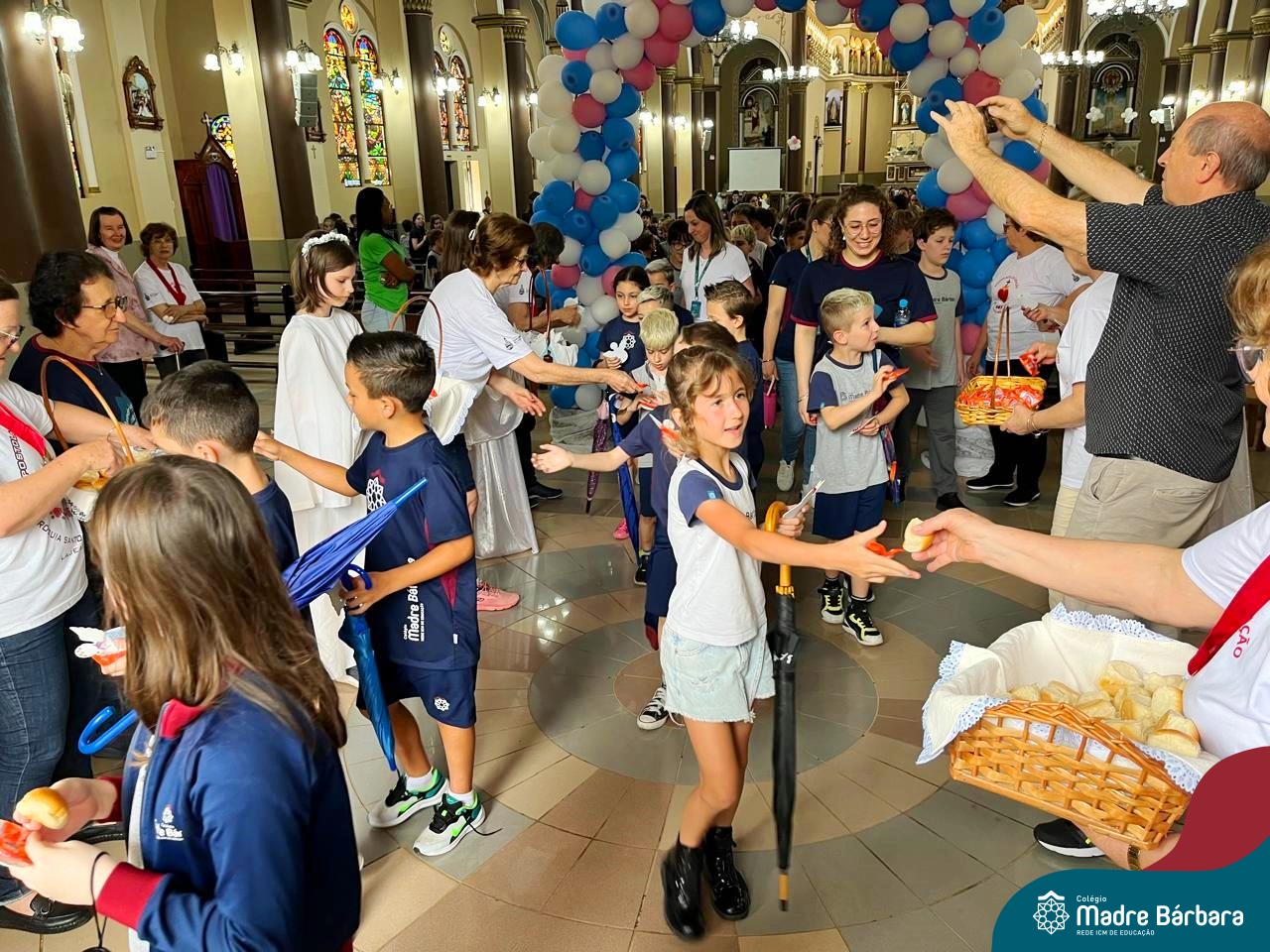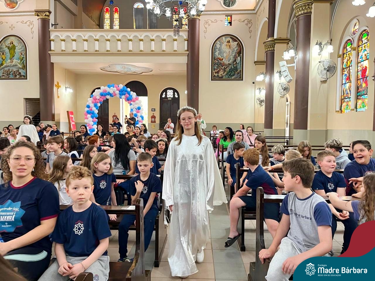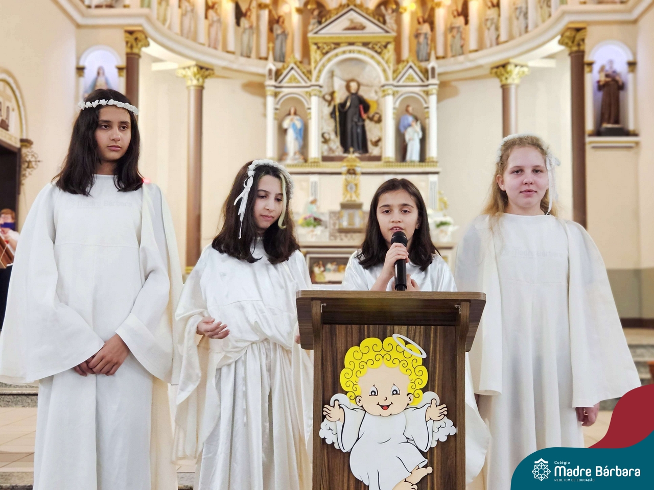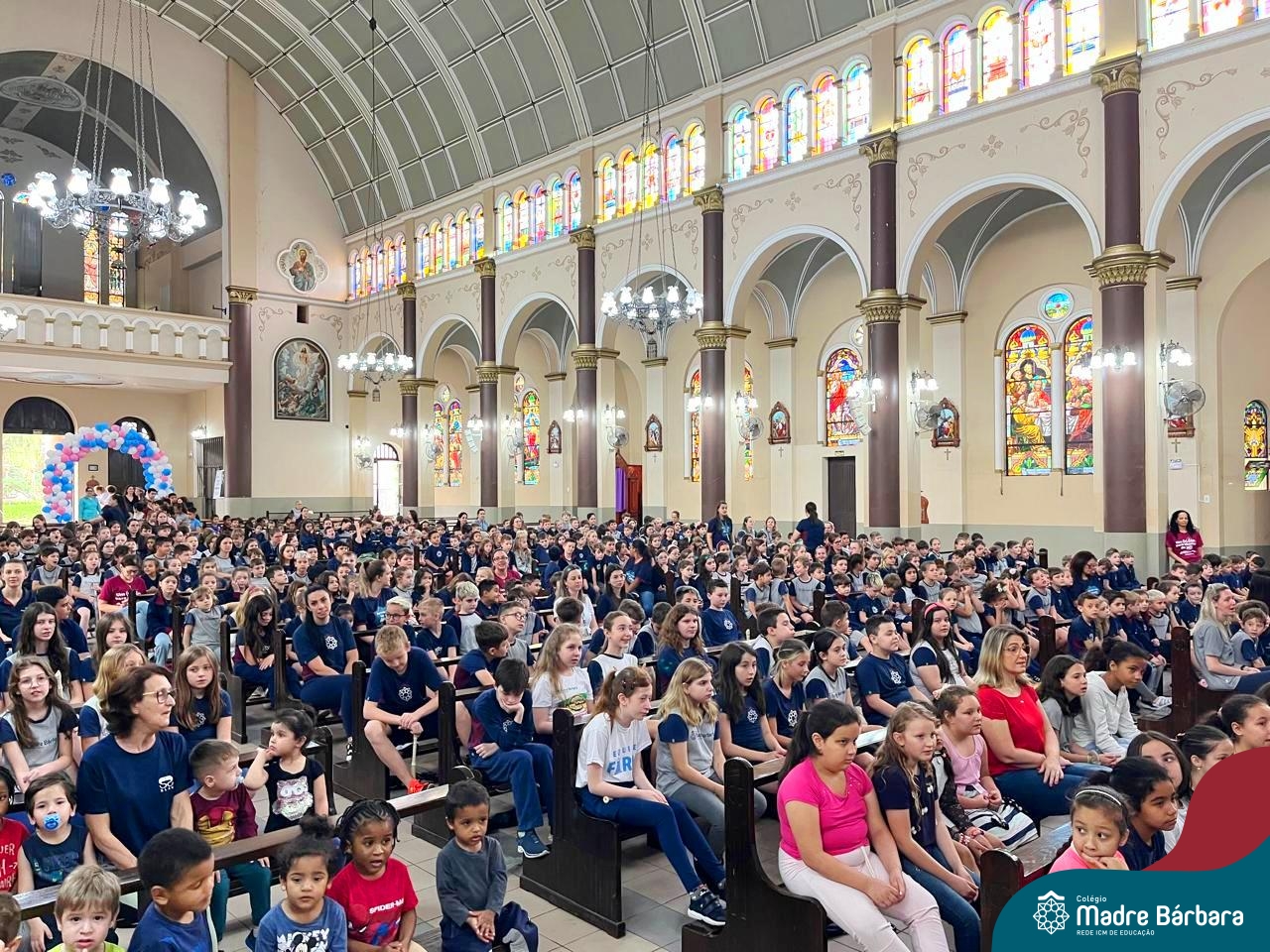 Nesta terça-feira (01.10) o Apostolado da Oração realizou na Paróquia Santo Inácio de Loyola a Celebração pelo Dia do Anjo da Guarda, que é comemorado no dia 2 de outubro. O Colégio Madre Bárbara – Rede ICM esteve presente com crianças dos Níveis 5 da Educação Infantil e dos 1ºs aos 5ºs anos do Ensino Fundamental – Anos Iniciais. No encontro, estudantes dos 5ºs anos se apresentaram com flauta e algumas crianças representaram anjos. No final, os alunos receberam um pãozinho abençoado e um anjo com a oração: “Santo anjo do Senhor, meu zeloso guardador, se a ti me confiou a piedade divina sempre me rege, me guarda, me governa, me ilumina, amém”. Já agradeceu seu anjo da guarda hoje?!