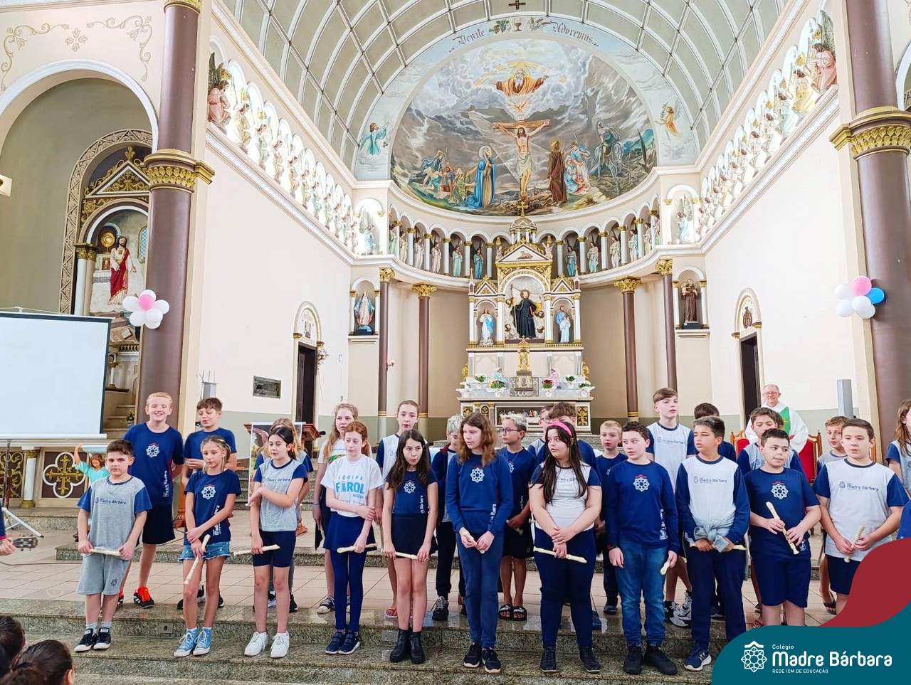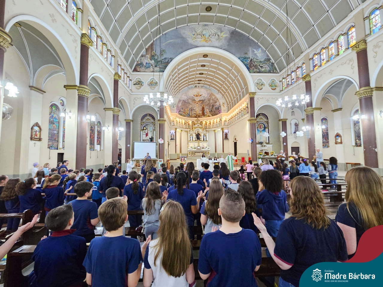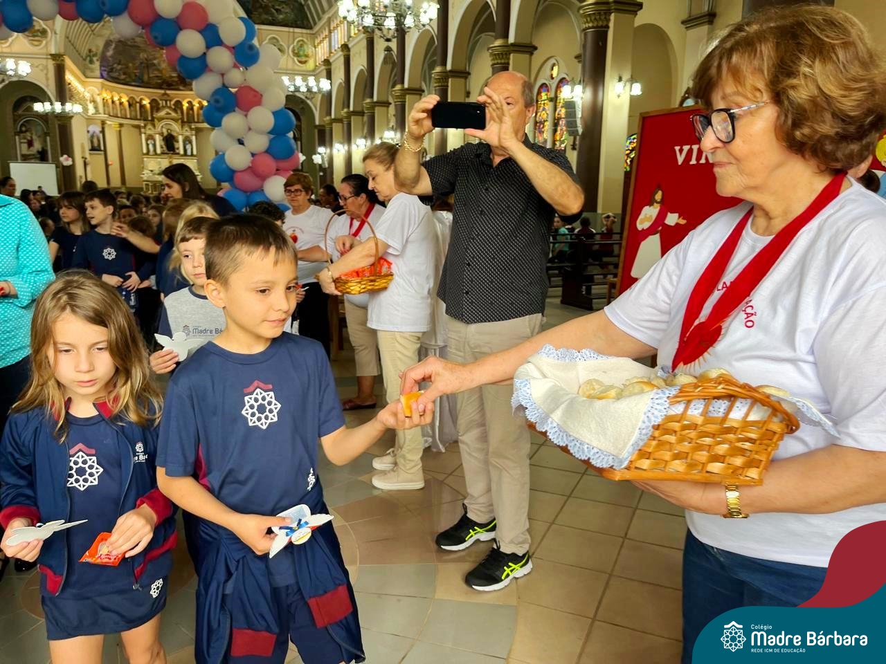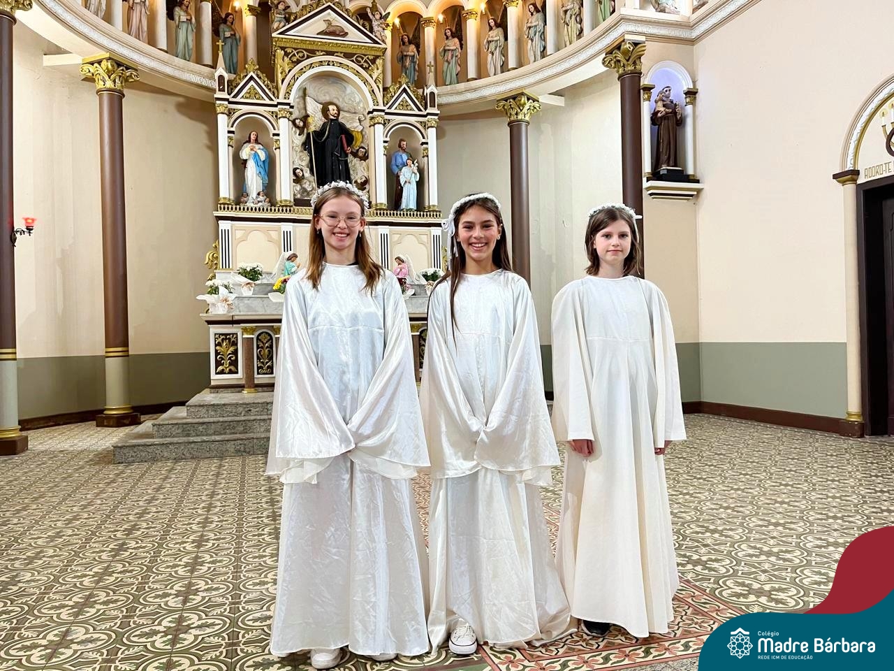 Nesta terça-feira (01.10) o Apostolado da Oração realizou na Paróquia Santo Inácio de Loyola a Celebração pelo Dia do Anjo da Guarda, que é comemorado no dia 2 de outubro. O Colégio Madre Bárbara – Rede ICM esteve presente com crianças dos Níveis 5 da Educação Infantil e dos 1ºs aos 5ºs anos do Ensino Fundamental – Anos Iniciais. No encontro, estudantes dos 5ºs anos se apresentaram com flauta e algumas crianças representaram anjos. No final, os alunos receberam um pãozinho abençoado e um anjo com a oração: “Santo anjo do Senhor, meu zeloso guardador, se a ti me confiou a piedade divina sempre me rege, me guarda, me governa, me ilumina, amém”. Já agradeceu seu anjo da guarda hoje?!
