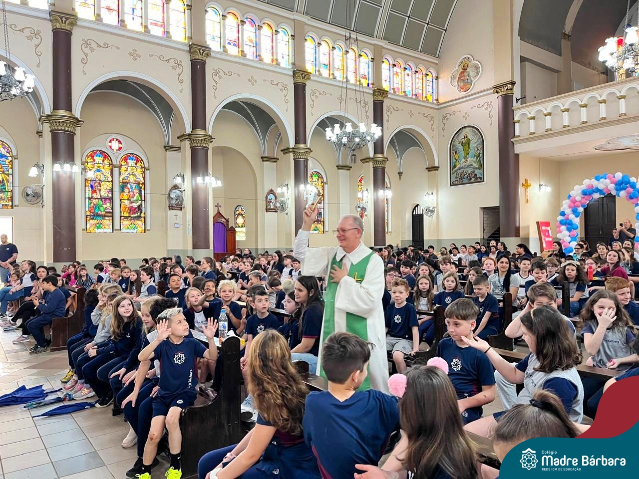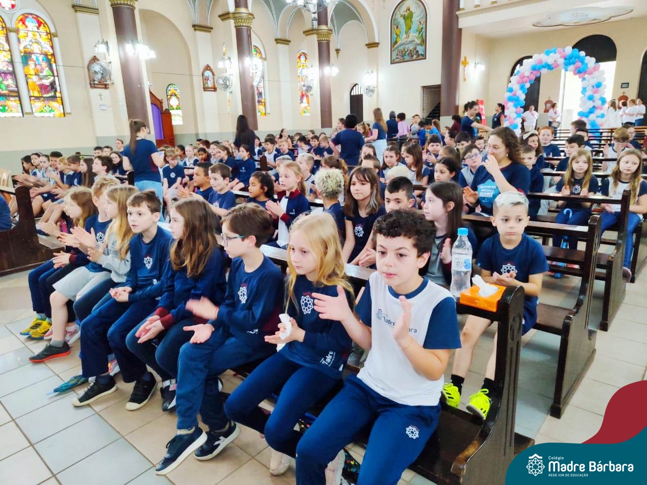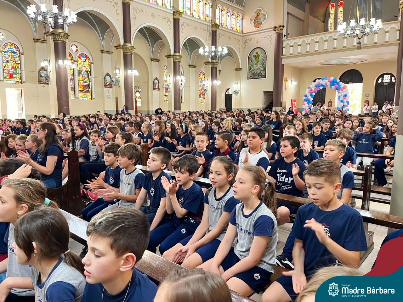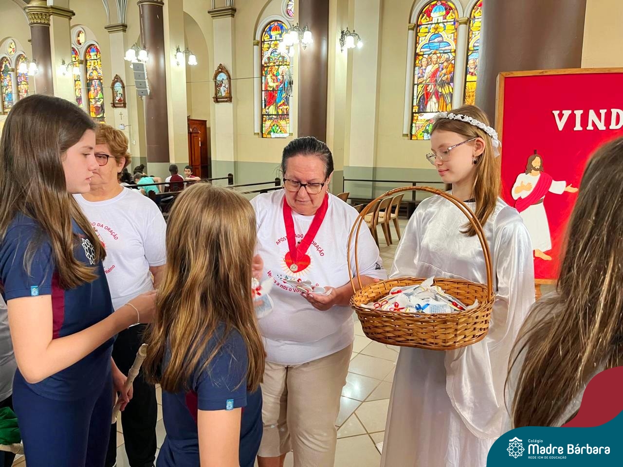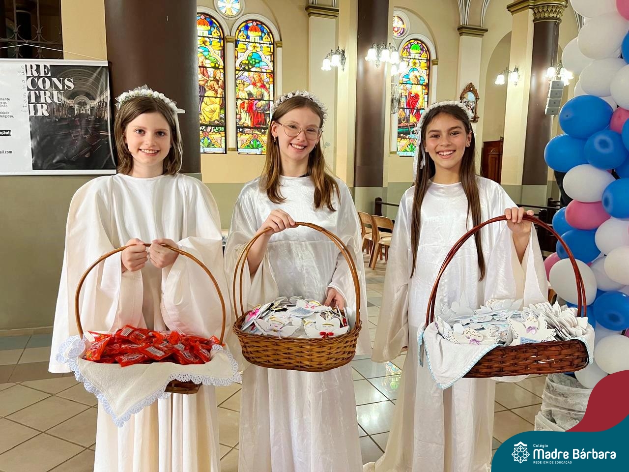 Nesta terça-feira (01.10) o Apostolado da Oração realizou na Paróquia Santo Inácio de Loyola a Celebração pelo Dia do Anjo da Guarda, que é comemorado no dia 2 de outubro. O Colégio Madre Bárbara – Rede ICM esteve presente com crianças dos Níveis 5 da Educação Infantil e dos 1ºs aos 5ºs anos do Ensino Fundamental – Anos Iniciais. No encontro, estudantes dos 5ºs anos se apresentaram com flauta e algumas crianças representaram anjos. No final, os alunos receberam um pãozinho abençoado e um anjo com a oração: “Santo anjo do Senhor, meu zeloso guardador, se a ti me confiou a piedade divina sempre me rege, me guarda, me governa, me ilumina, amém”. Já agradeceu seu anjo da guarda hoje?!