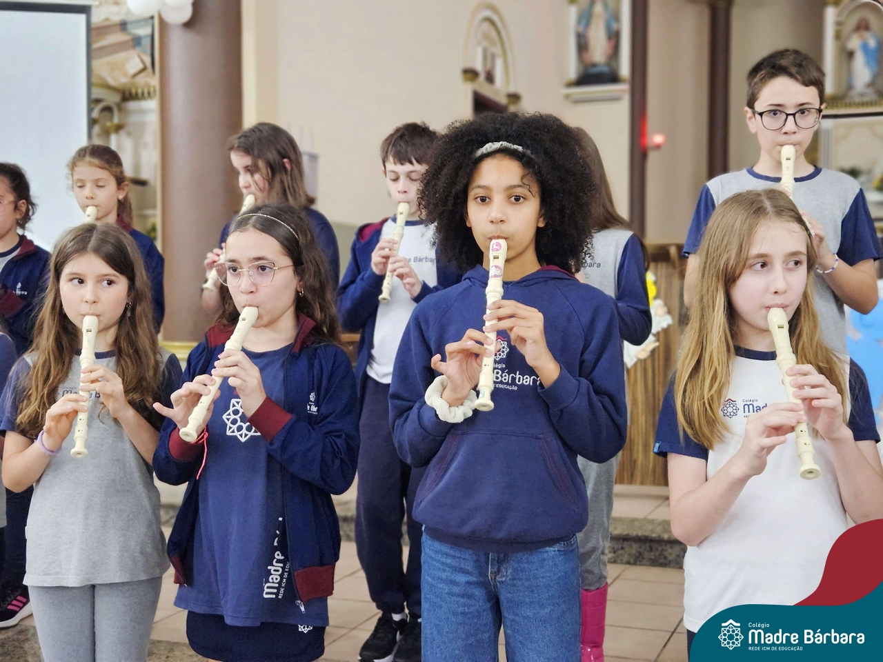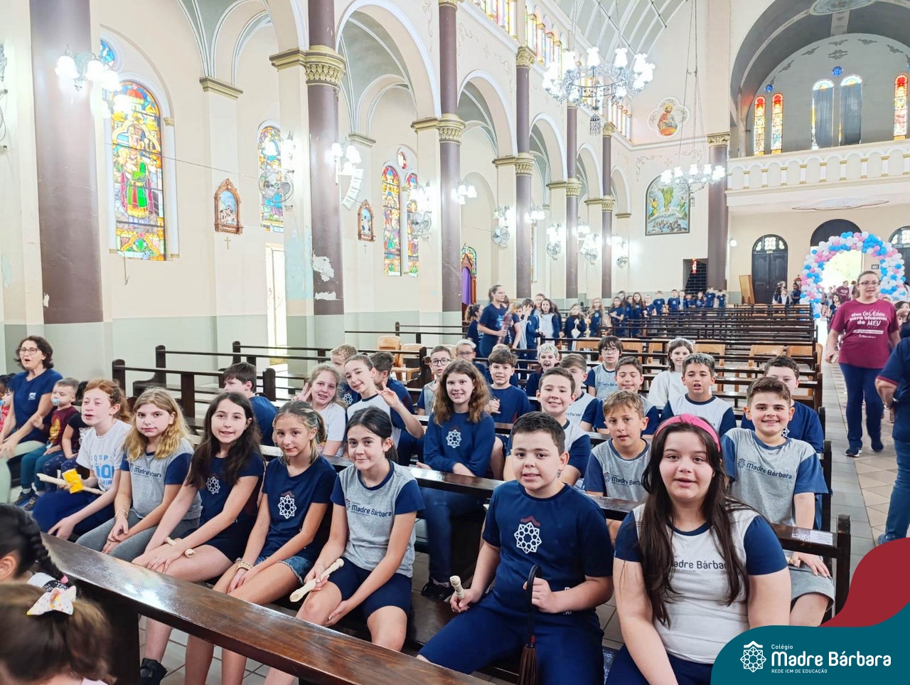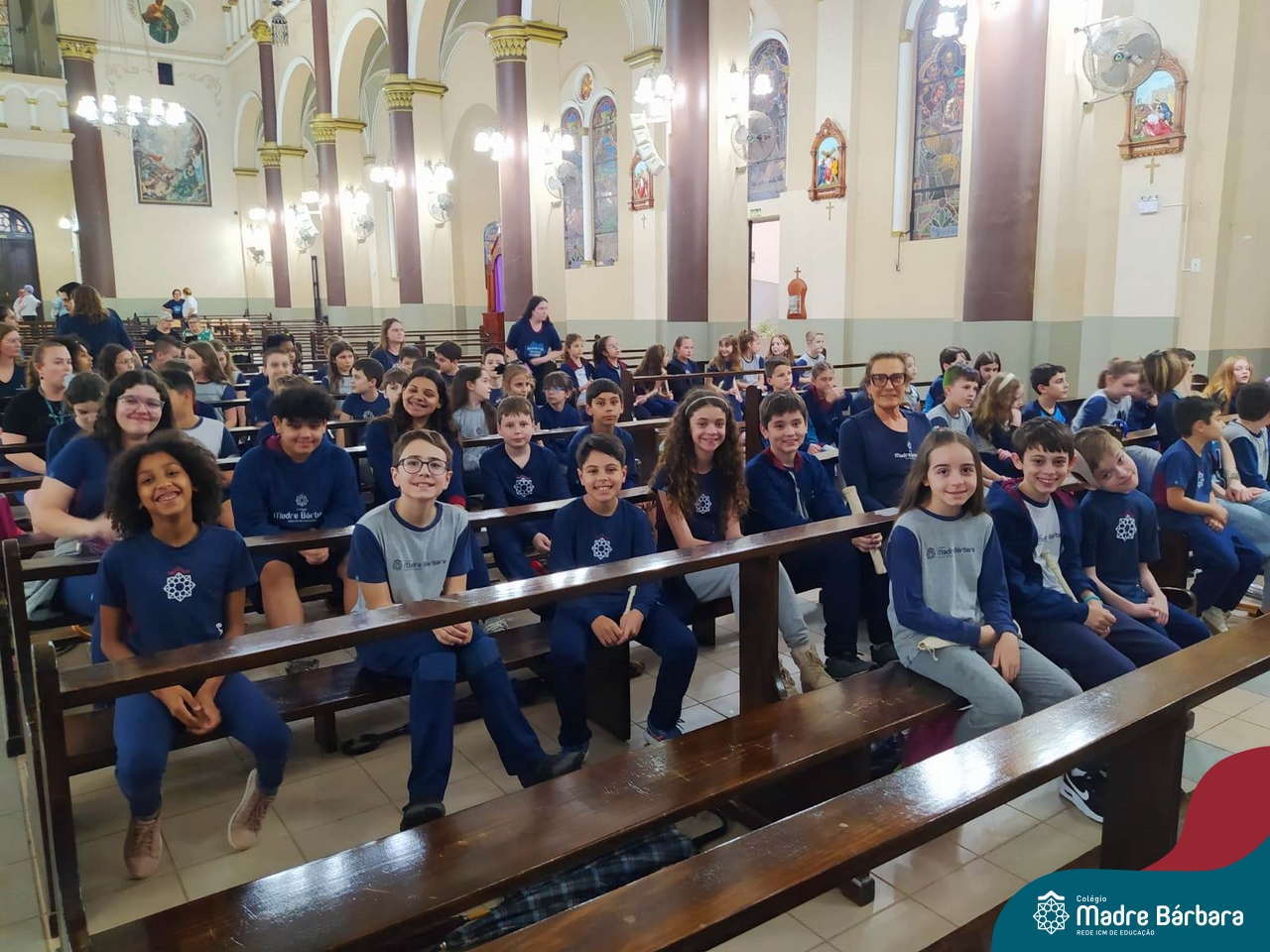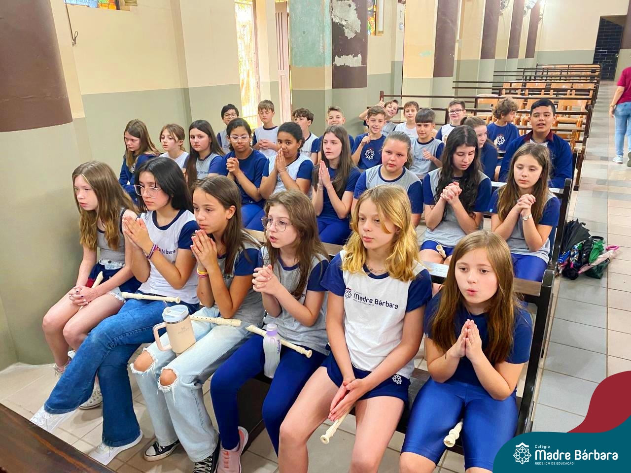 Nesta terça-feira (01.10) o Apostolado da Oração realizou na Paróquia Santo Inácio de Loyola a Celebração pelo Dia do Anjo da Guarda, que é comemorado no dia 2 de outubro. O Colégio Madre Bárbara – Rede ICM esteve presente com crianças dos Níveis 5 da Educação Infantil e dos 1ºs aos 5ºs anos do Ensino Fundamental – Anos Iniciais. No encontro, estudantes dos 5ºs anos se apresentaram com flauta e algumas crianças representaram anjos. No final, os alunos receberam um pãozinho abençoado e um anjo com a oração: “Santo anjo do Senhor, meu zeloso guardador, se a ti me confiou a piedade divina sempre me rege, me guarda, me governa, me ilumina, amém”. Já agradeceu seu anjo da guarda hoje?!