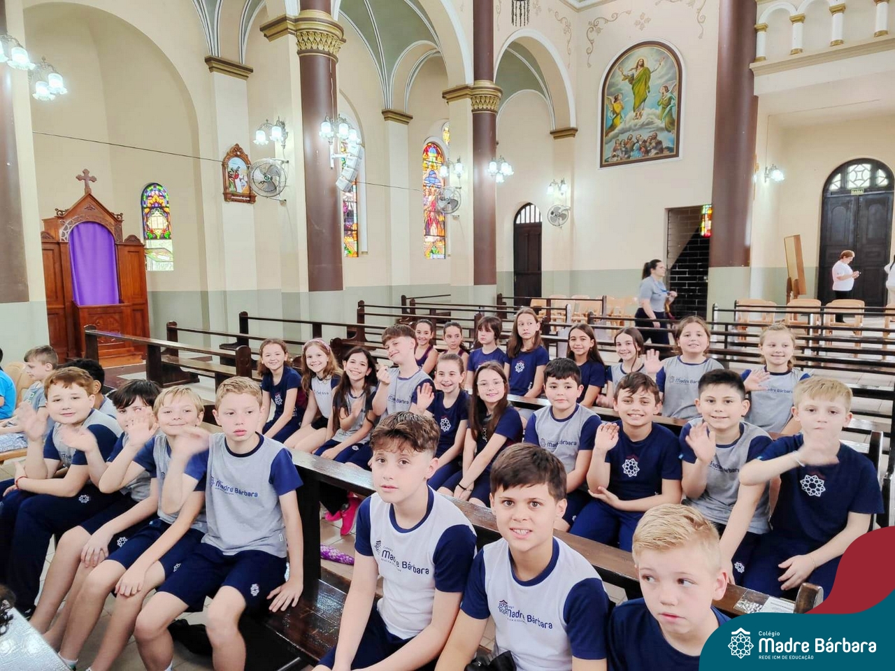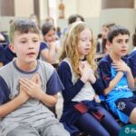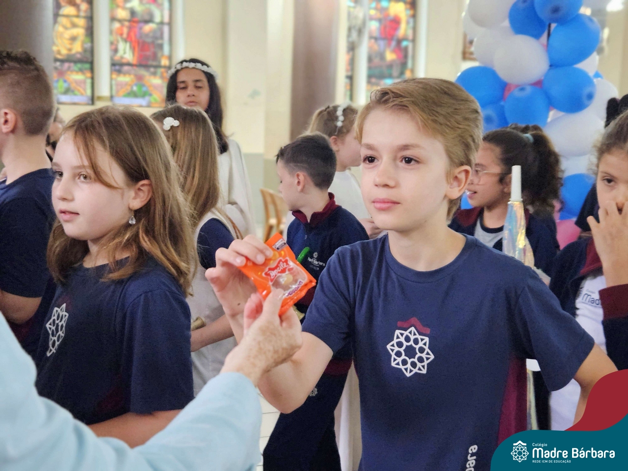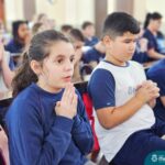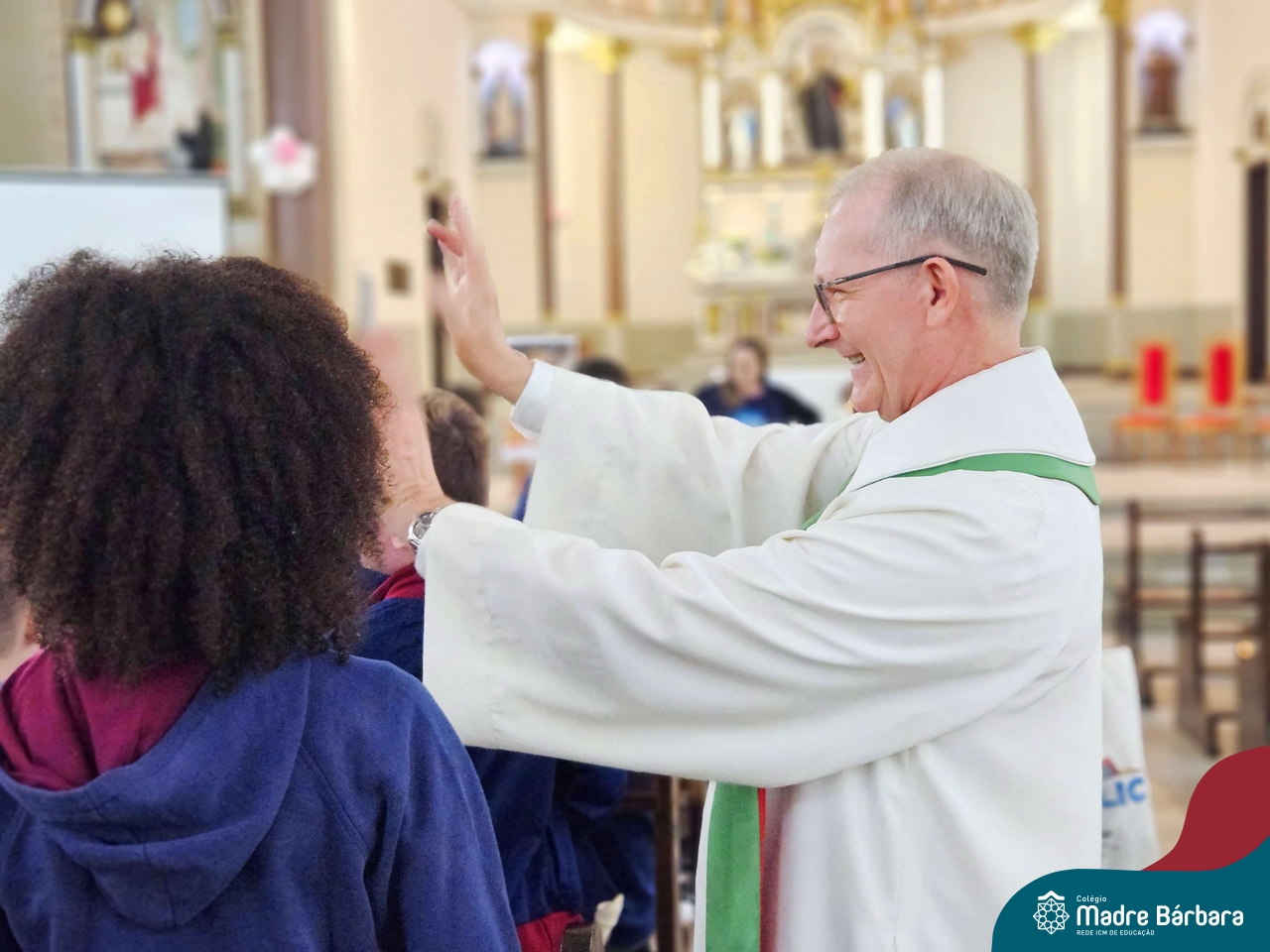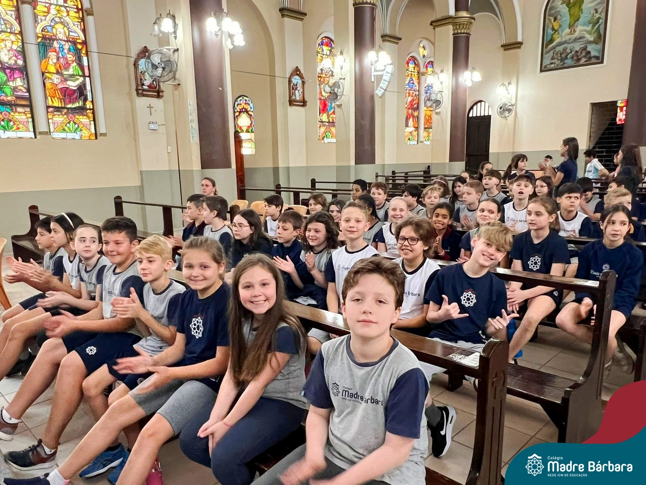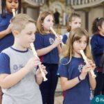 Nesta terça-feira (01.10) o Apostolado da Oração realizou na Paróquia Santo Inácio de Loyola a Celebração pelo Dia do Anjo da Guarda, que é comemorado no dia 2 de outubro. O Colégio Madre Bárbara – Rede ICM esteve presente com crianças dos Níveis 5 da Educação Infantil e dos 1ºs aos 5ºs anos do Ensino Fundamental – Anos Iniciais. No encontro, estudantes dos 5ºs anos se apresentaram com flauta e algumas crianças representaram anjos. No final, os alunos receberam um pãozinho abençoado e um anjo com a oração: “Santo anjo do Senhor, meu zeloso guardador, se a ti me confiou a piedade divina sempre me rege, me guarda, me governa, me ilumina, amém”. Já agradeceu seu anjo da guarda hoje?!