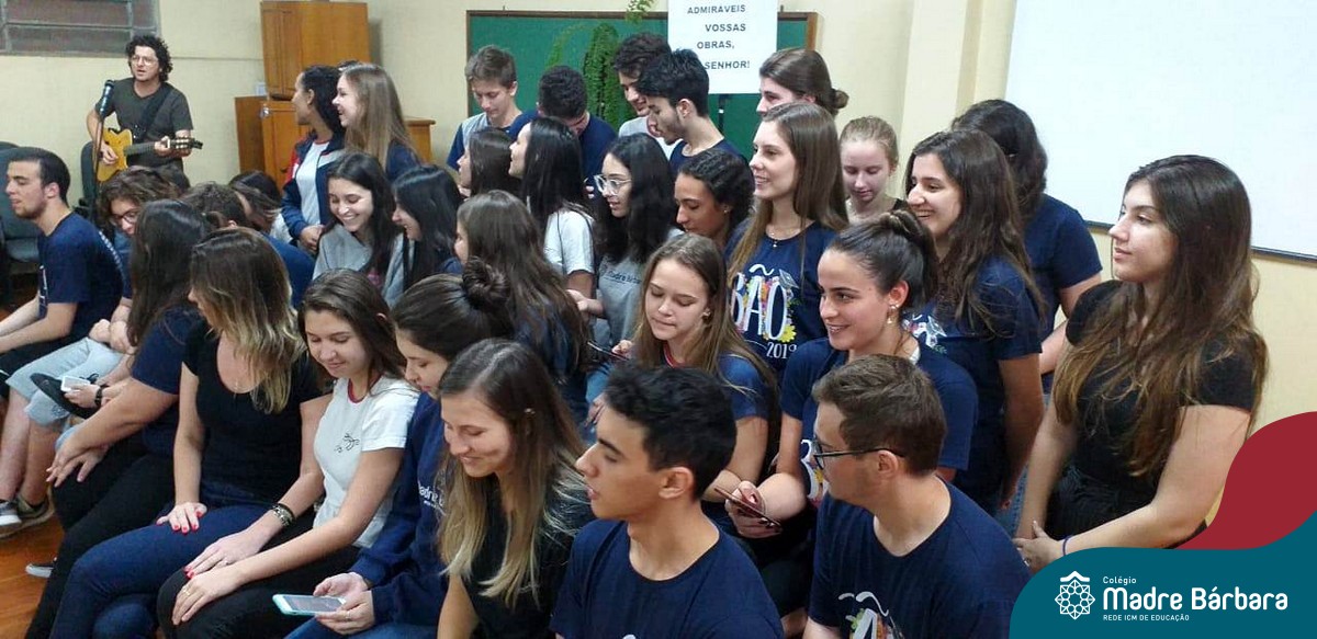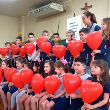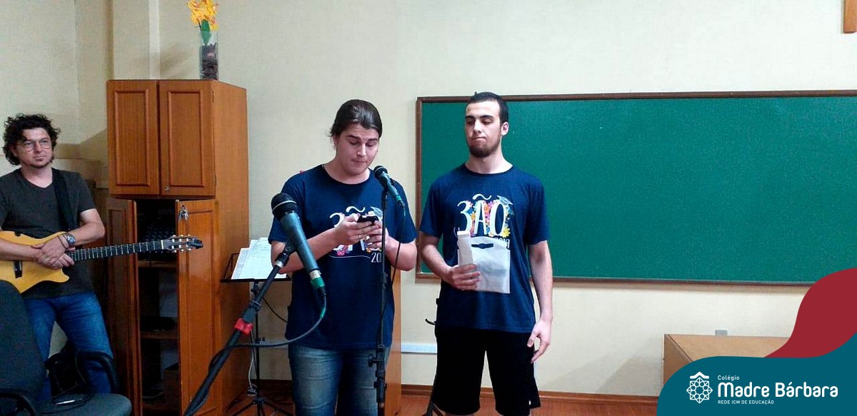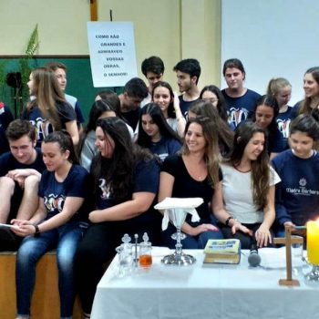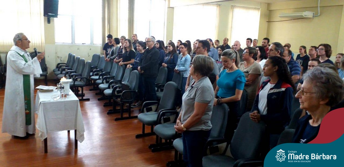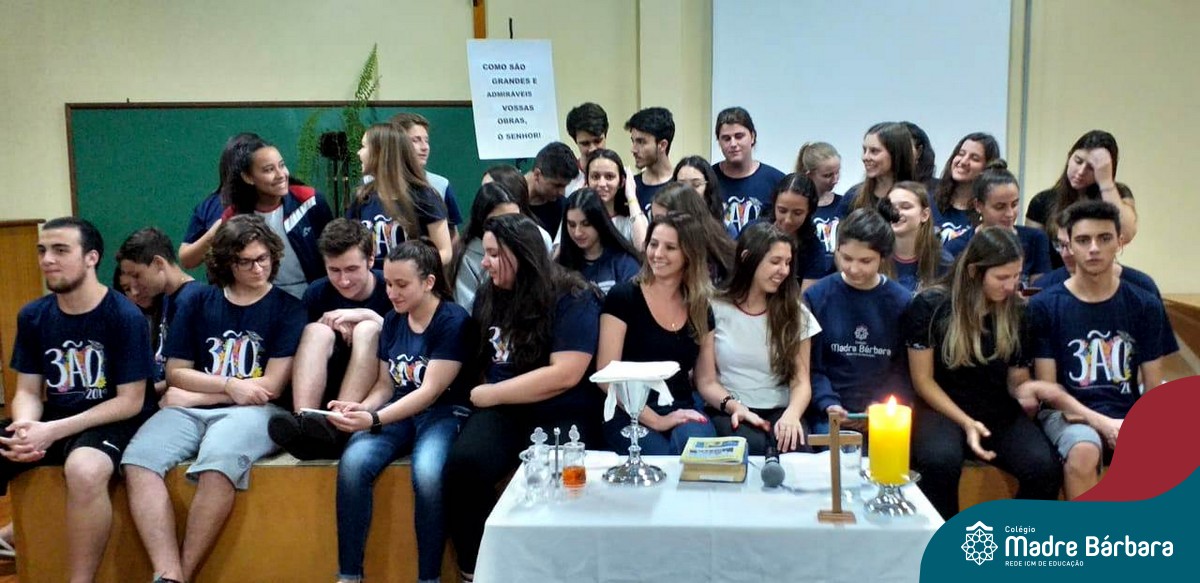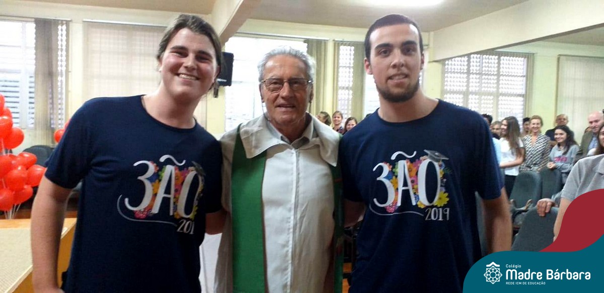 Na quarta-feira (27.11) ocorreu a Missa de Formatura do Terceirão, celebrada pelo Padre Antônio Puhl. O momento contou com a participação dos alunos da turma 14, afilhados do Programa Laços Afetivos, a homenagem da coordenadora de turma, professora Ângela Lenz e a música ficou sob a responsabilidade do educador musical Ricardo Petter.