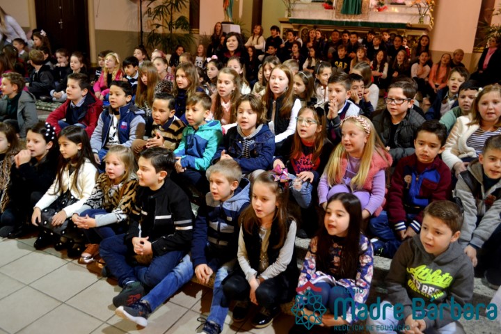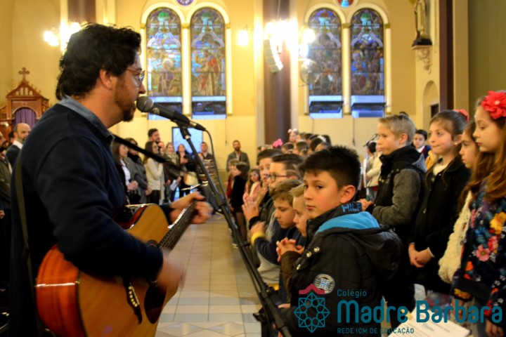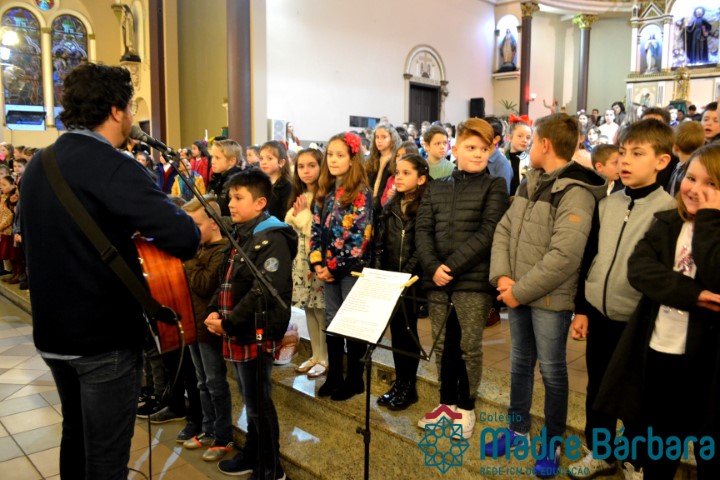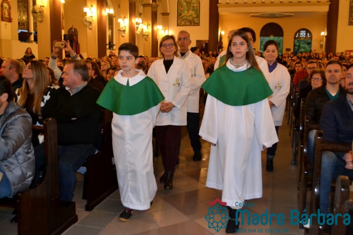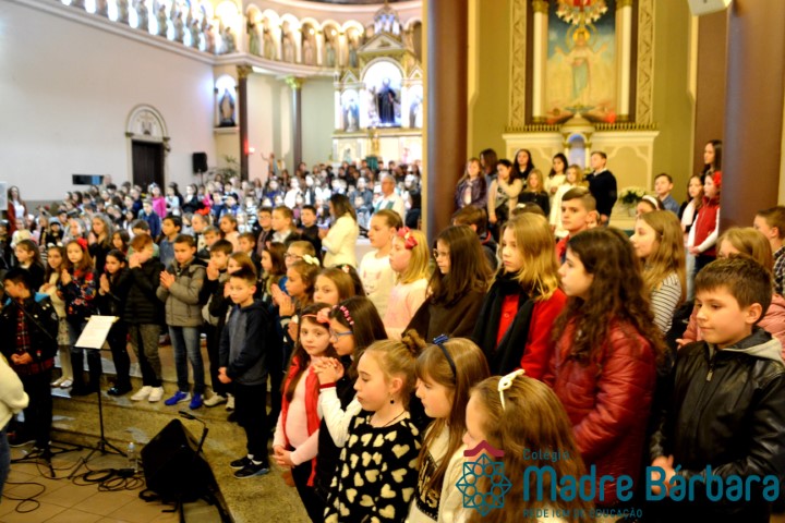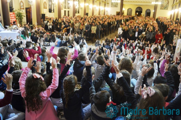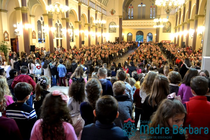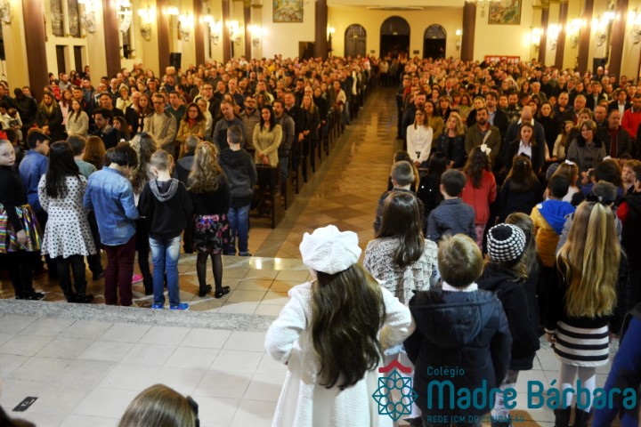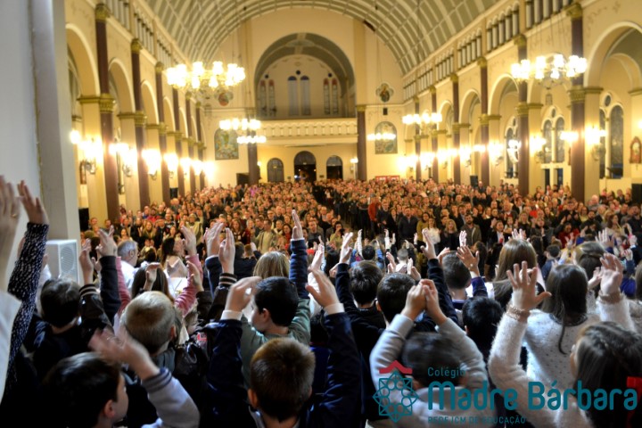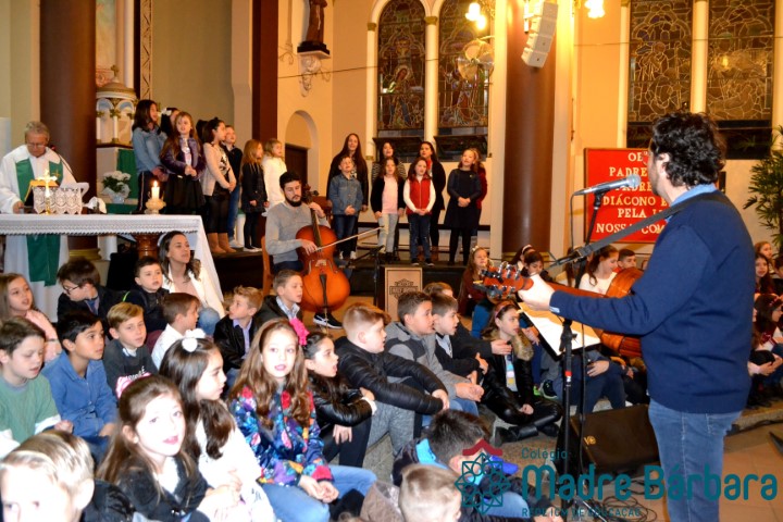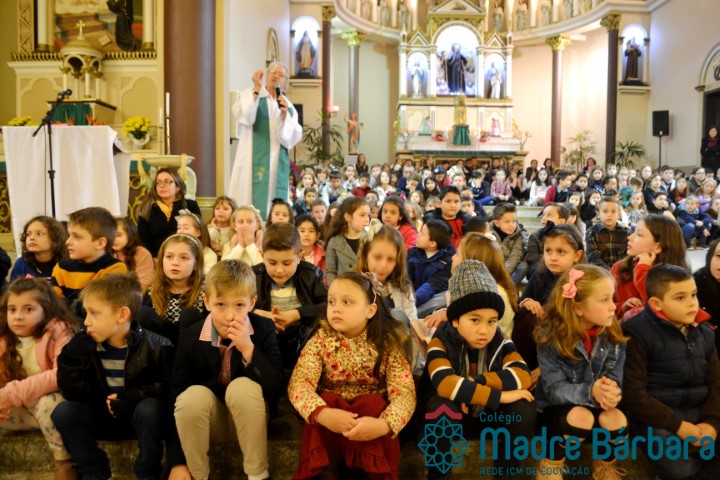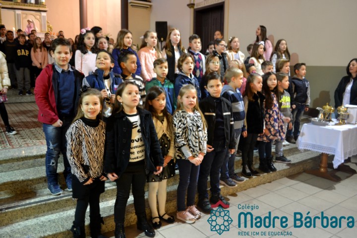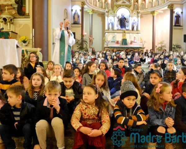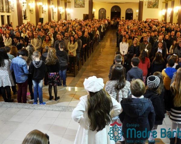 Na noite de sábado (03.08) os pais do Colégio Madre Bárbara – Rede ICM foram homenageados pelas crianças do 1º ao 5º ano dos Anos Iniciais na tradicional Missa dos Pais. A celebração feita pelo Padre Antônio Puhl, contou com a parceria e organização da Pastoral Escolar, da coordenação-pedagógica, das professoras e da Associação de Pais e Mestres (APM). O educador musical Ricardo Petter coordenou os cantos feitos pelos alunos. O Grupo Vocal do Madre Bárbara também teve participação na Missa.