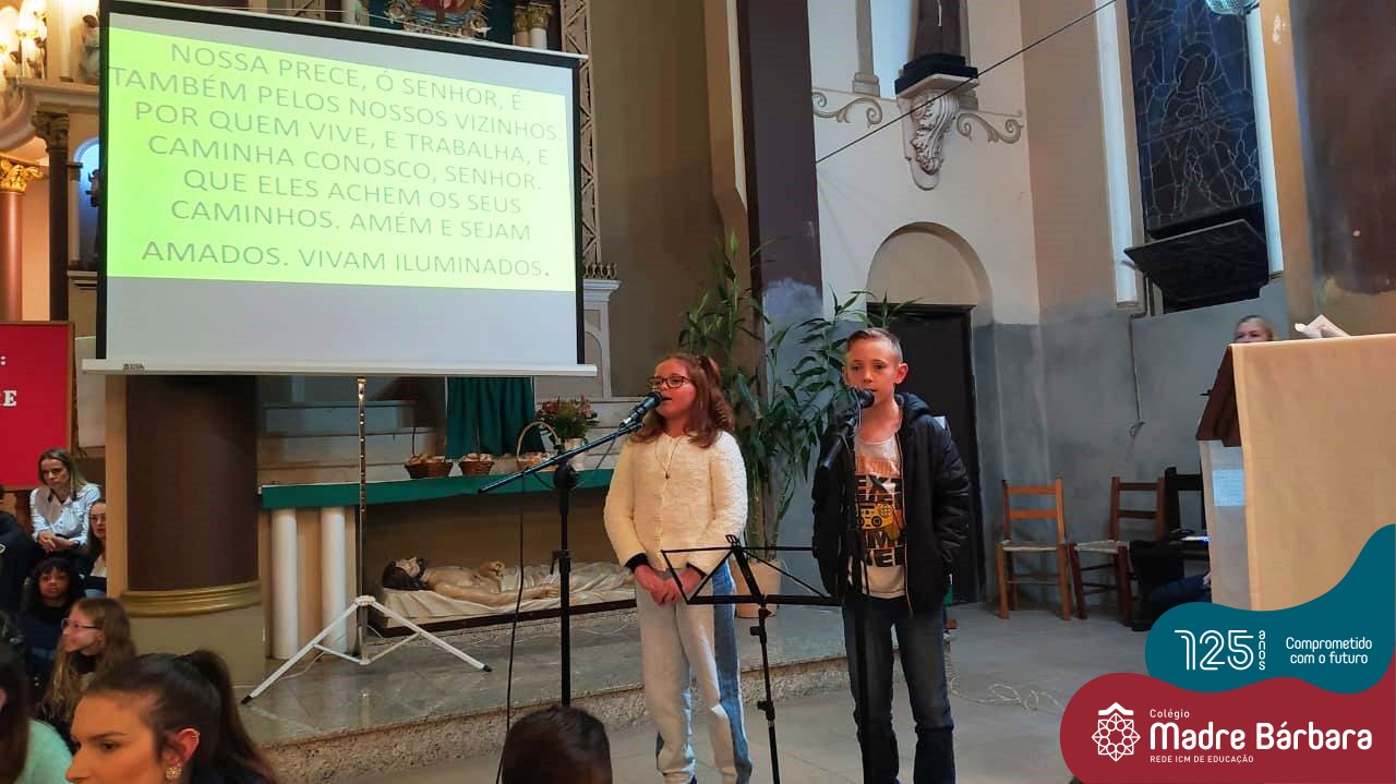 Na noite de sábado (06.08) os pais do Colégio Madre Bárbara – Rede ICM foram homenageados pelas crianças do 1º ao 5º ano dos Anos Iniciais na tradicional Missa dos Pais. A celebração feita pelo Padre Valdir Biazibetti, contou com a parceria e organização da Pastoral Escolar, da coordenação-pedagógica e das professoras . As educadoras musicais Sabrina Martins Costa e Tainá Jaini Rosa Camacho coordenaram os cantos feitos pelos alunos.
