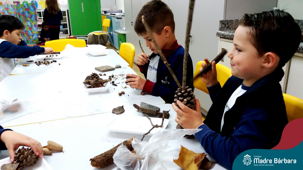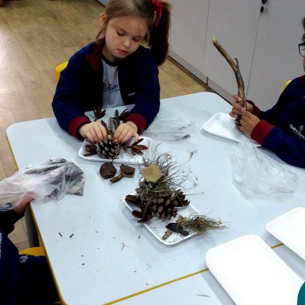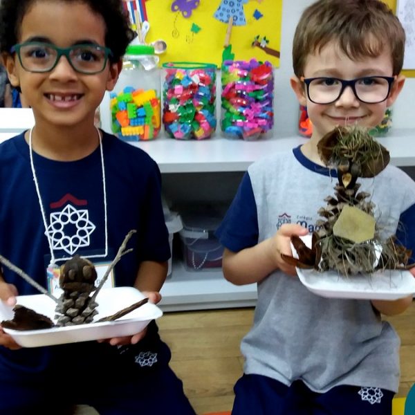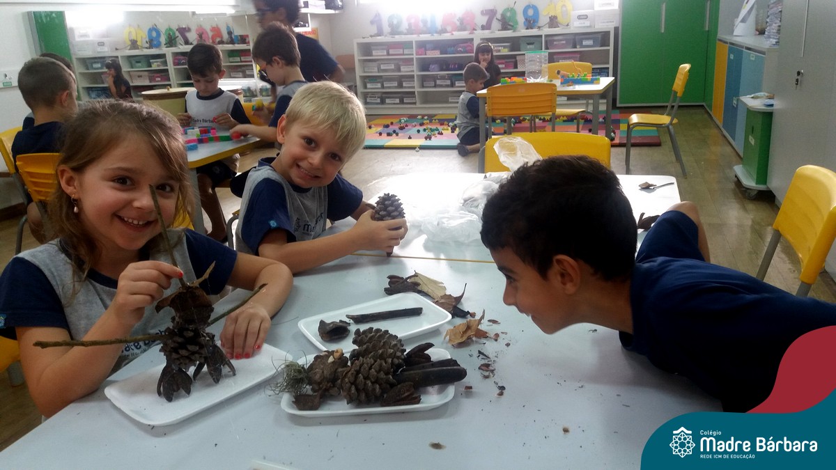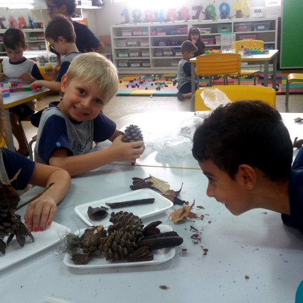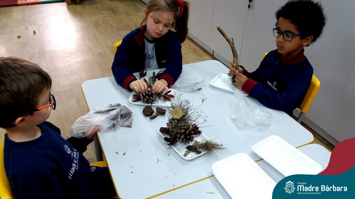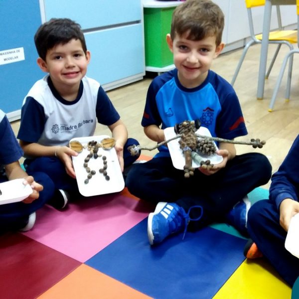 “Tobias e Rebimboca, em Missão Bagunça”, de Johnny Pedra, é uma obra literária que conta a história de um menino, chamado “Tobias” que inventou uma máquina para ajudá-lo a encontrar o brinquedo perdido. A turma do Nível 5B se inspirou no livro e cada aluno construiu sua própria máquina, que teve diferentes funções, sendo feita com elementos da natureza. A situação de aprendizagem fez com que cada criança explorasse as partes do corpo humano, o que não foi nada fácil, pois os materiais eram de diferentes tamanhos e as mais variadas formas.