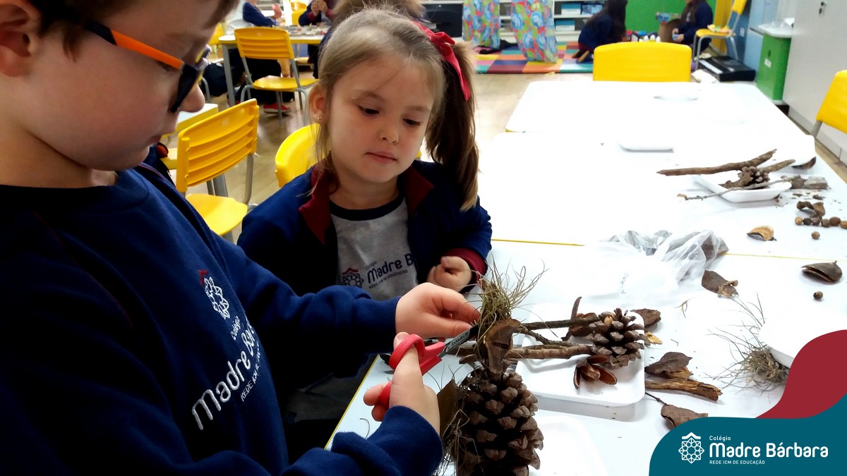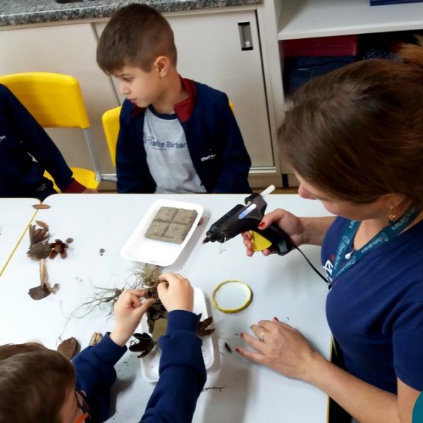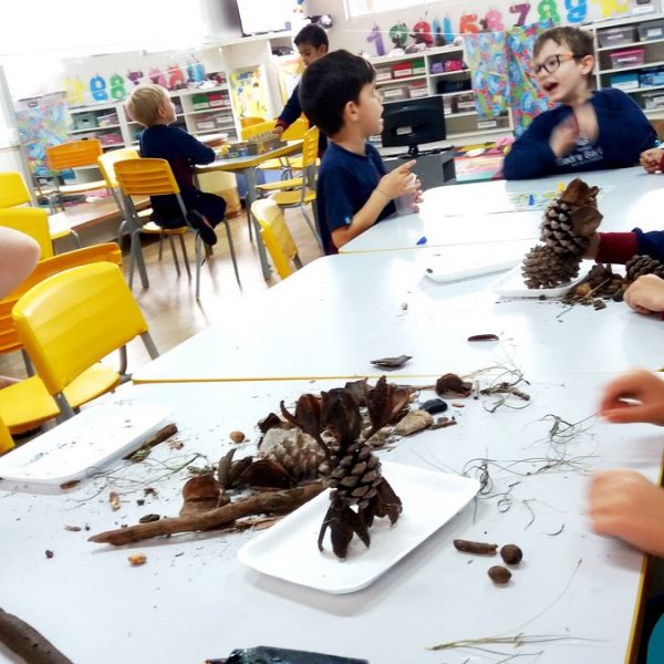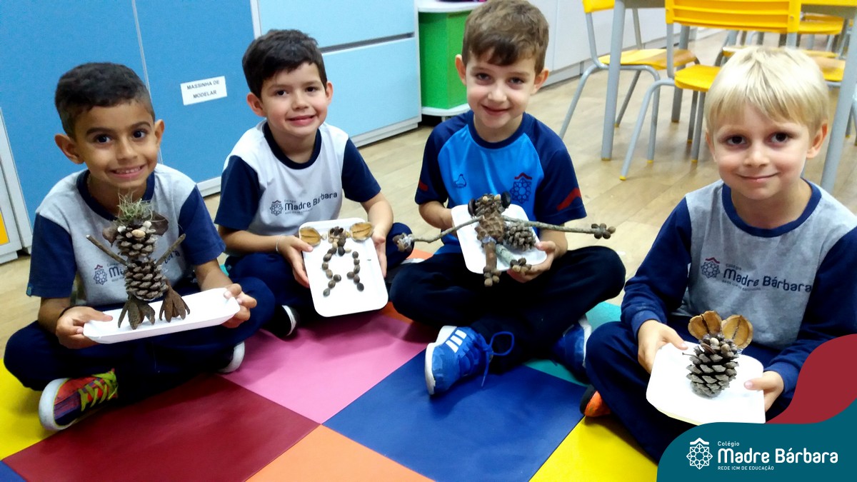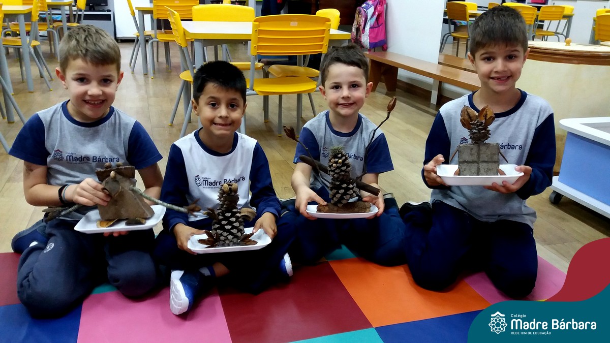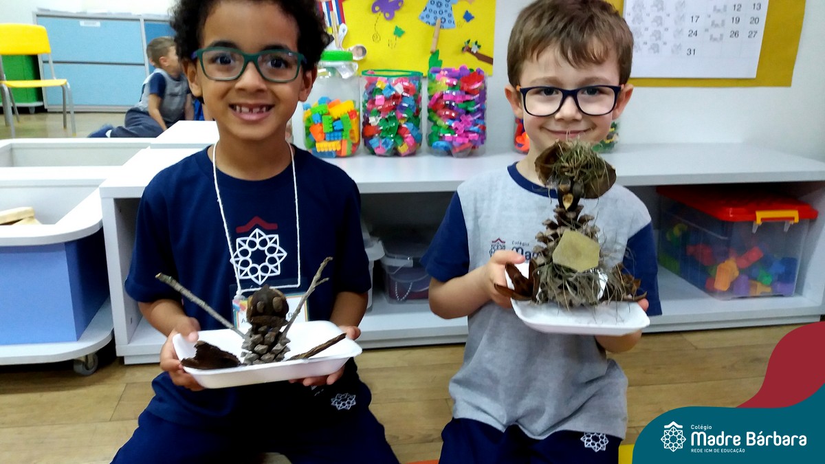 “Tobias e Rebimboca, em Missão Bagunça”, de Johnny Pedra, é uma obra literária que conta a história de um menino, chamado “Tobias” que inventou uma máquina para ajudá-lo a encontrar o brinquedo perdido. A turma do Nível 5B se inspirou no livro e cada aluno construiu sua própria máquina, que teve diferentes funções, sendo feita com elementos da natureza. A situação de aprendizagem fez com que cada criança explorasse as partes do corpo humano, o que não foi nada fácil, pois os materiais eram de diferentes tamanhos e as mais variadas formas.