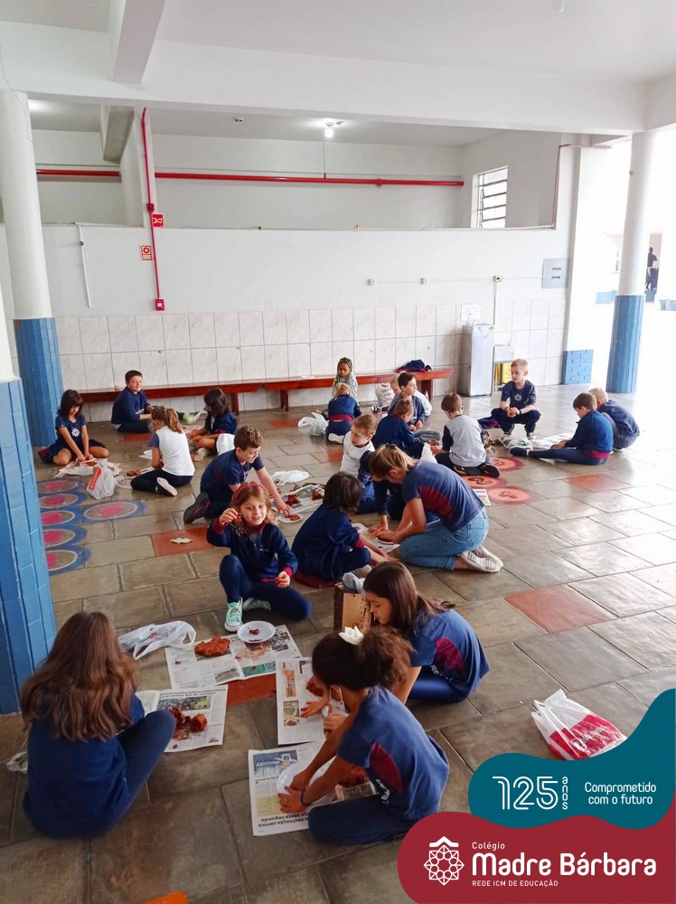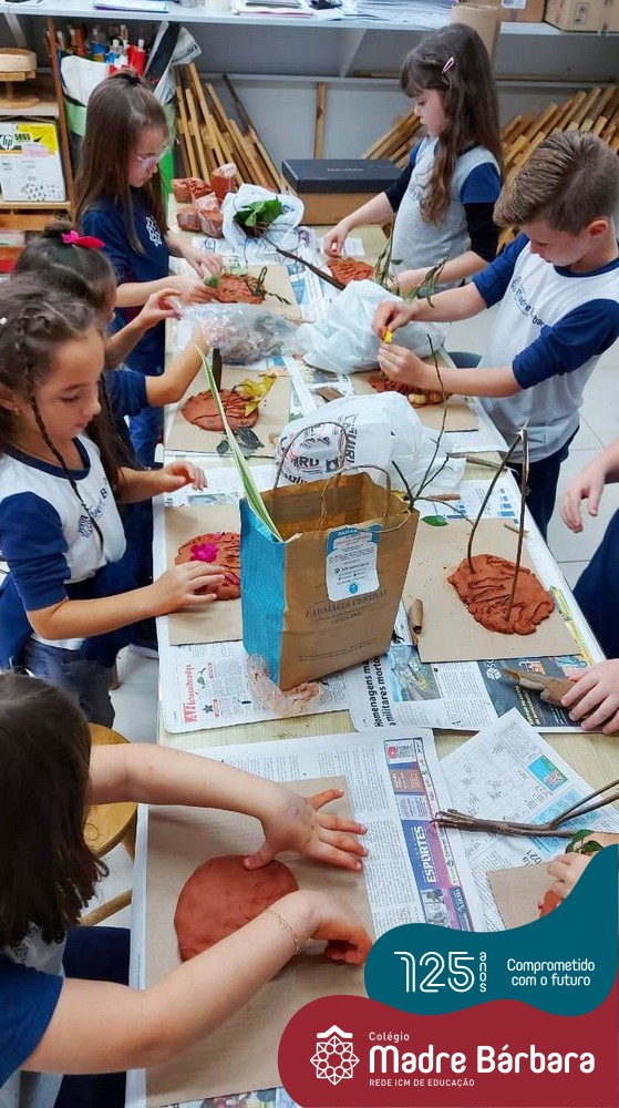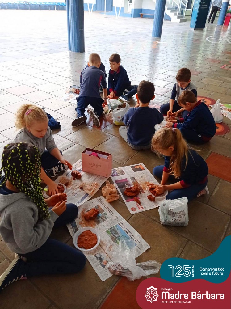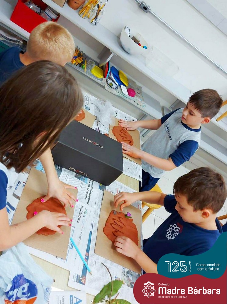 Os alunos dos Segundos Anos, dos Anos Iniciais, foram desafiados pelas professoras: Caroline, Mara S., Juliane, Bruna e Marina, a criar uma escultura utilizando argila e elementos naturais. A proposta foi modelar a palma da mão na argila, onde cada criança pode contribuir dando ideias, tendo um objetivo em mente e pensando ganha-ganha. Um ajudando o outro, na modelagem até formar um círculo na argila, em seguida com auxílio contornamos o contorno da mão e juntos foram decorando a sua modelagem.