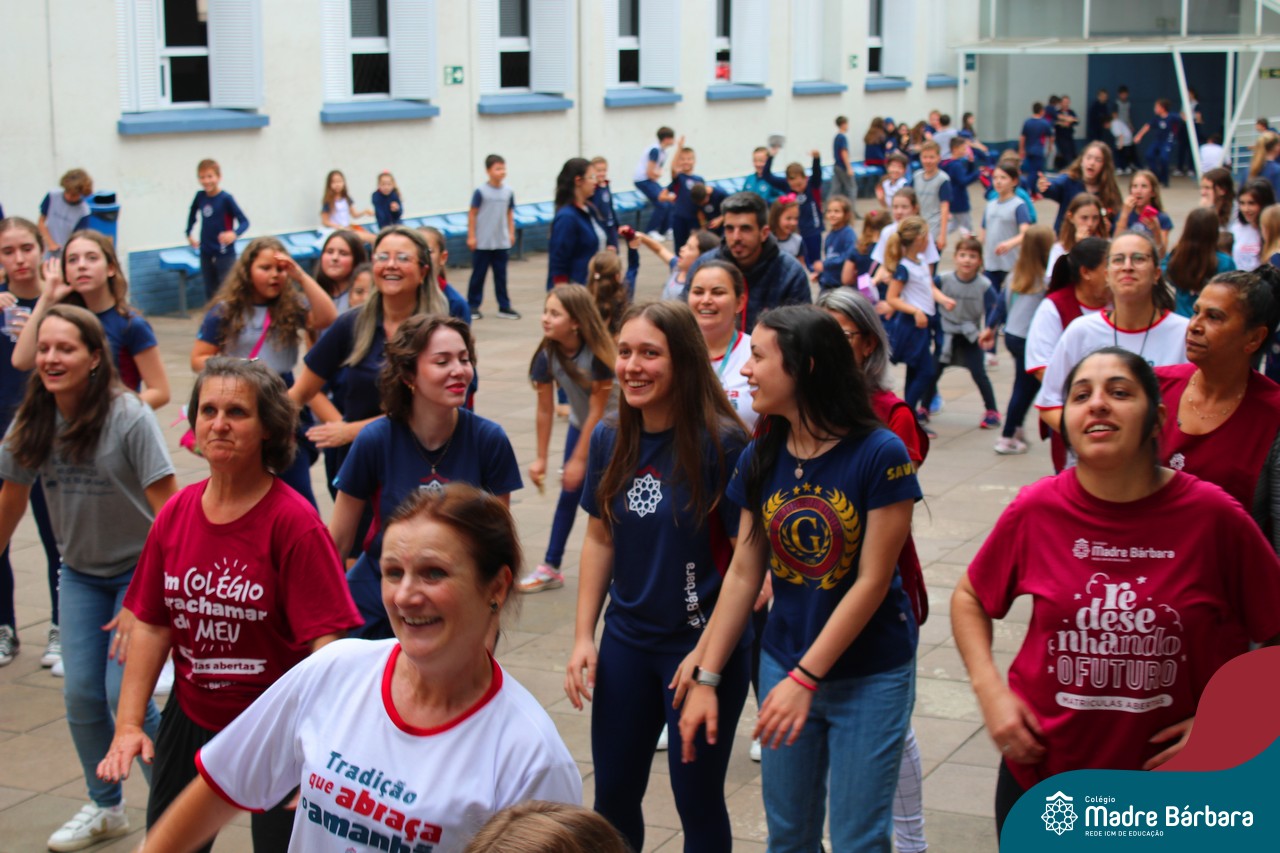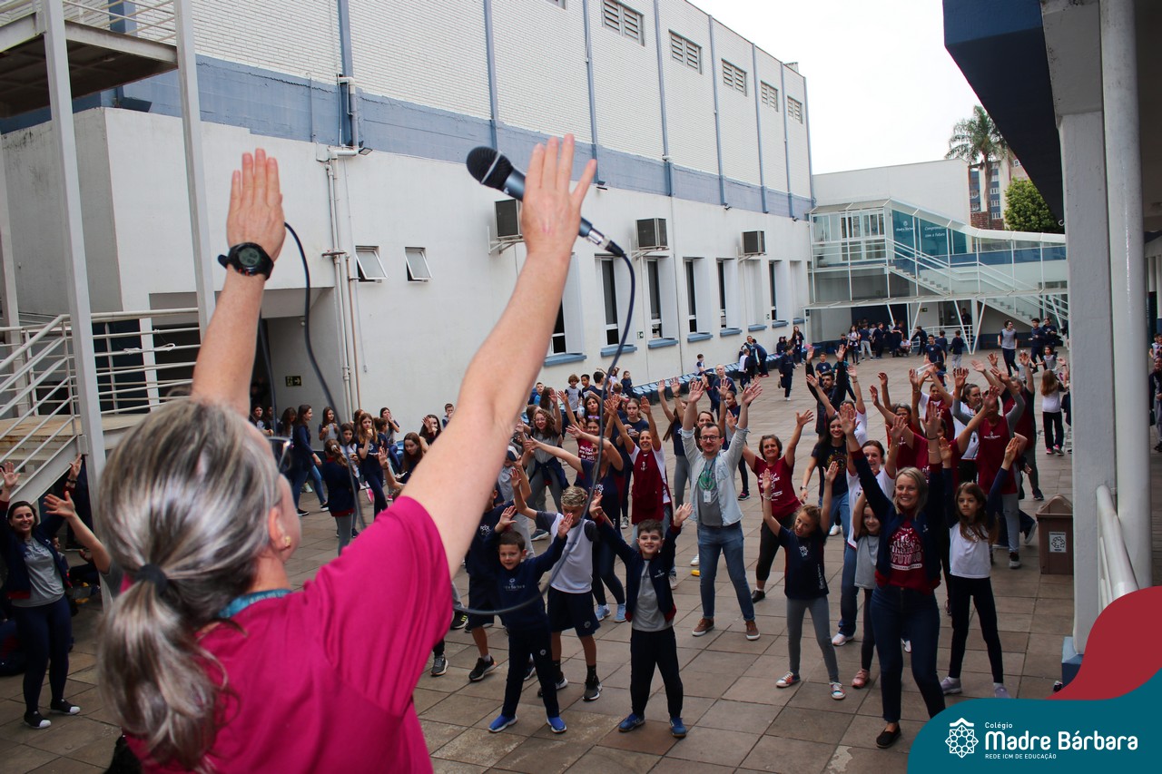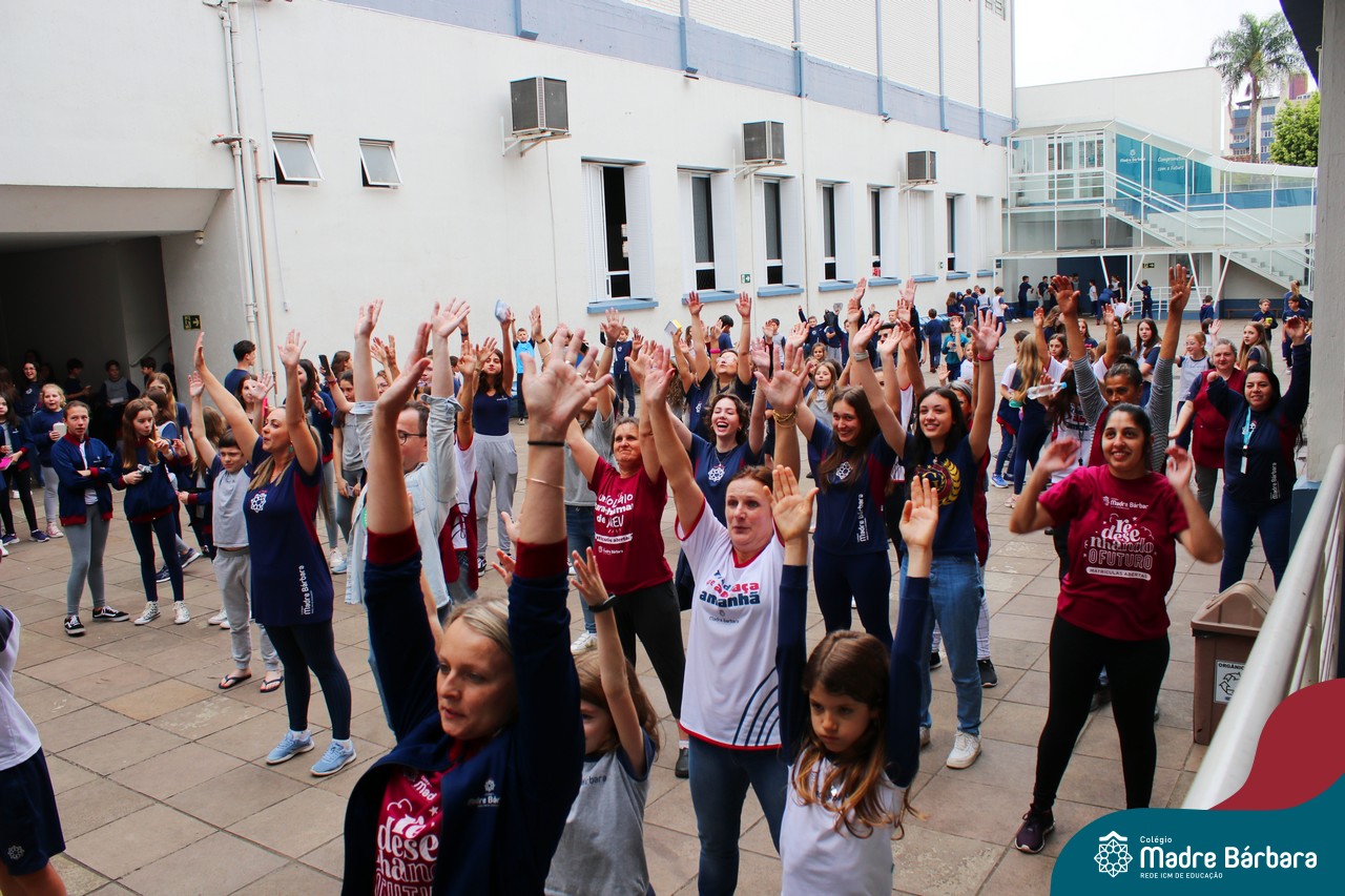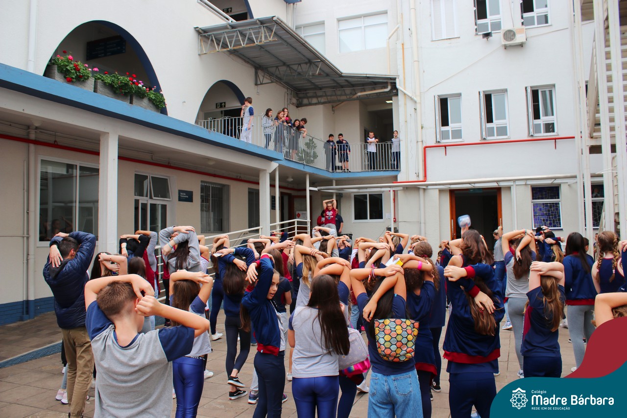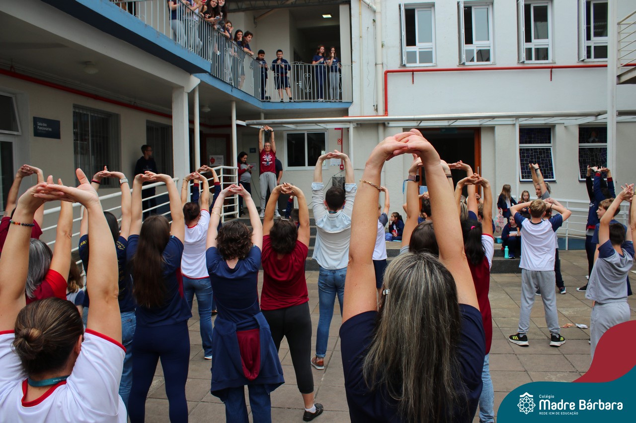 Incentivando a prática de atividades físicas, o grupo da Cipa do Colégio Madre Bárbara – Rede ICM convidou as educadoras físicas Isabel e Eduarda, para irem ao pátio fazer momentos de prática de atividades durante o recreio. A ação teve como tema: “Cuidando da saúde física” e fez parte do terceiro dia de programações da Semana Interna de Prevenção de Acidentes no Trabalho (Sipat). Estudantes e colaboradores estiveram se exercitando no pátio! Agradecemos aqueles que participaram e às profes Bel e Duda, que organizaram o momento.