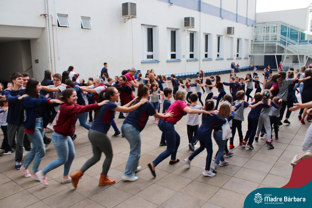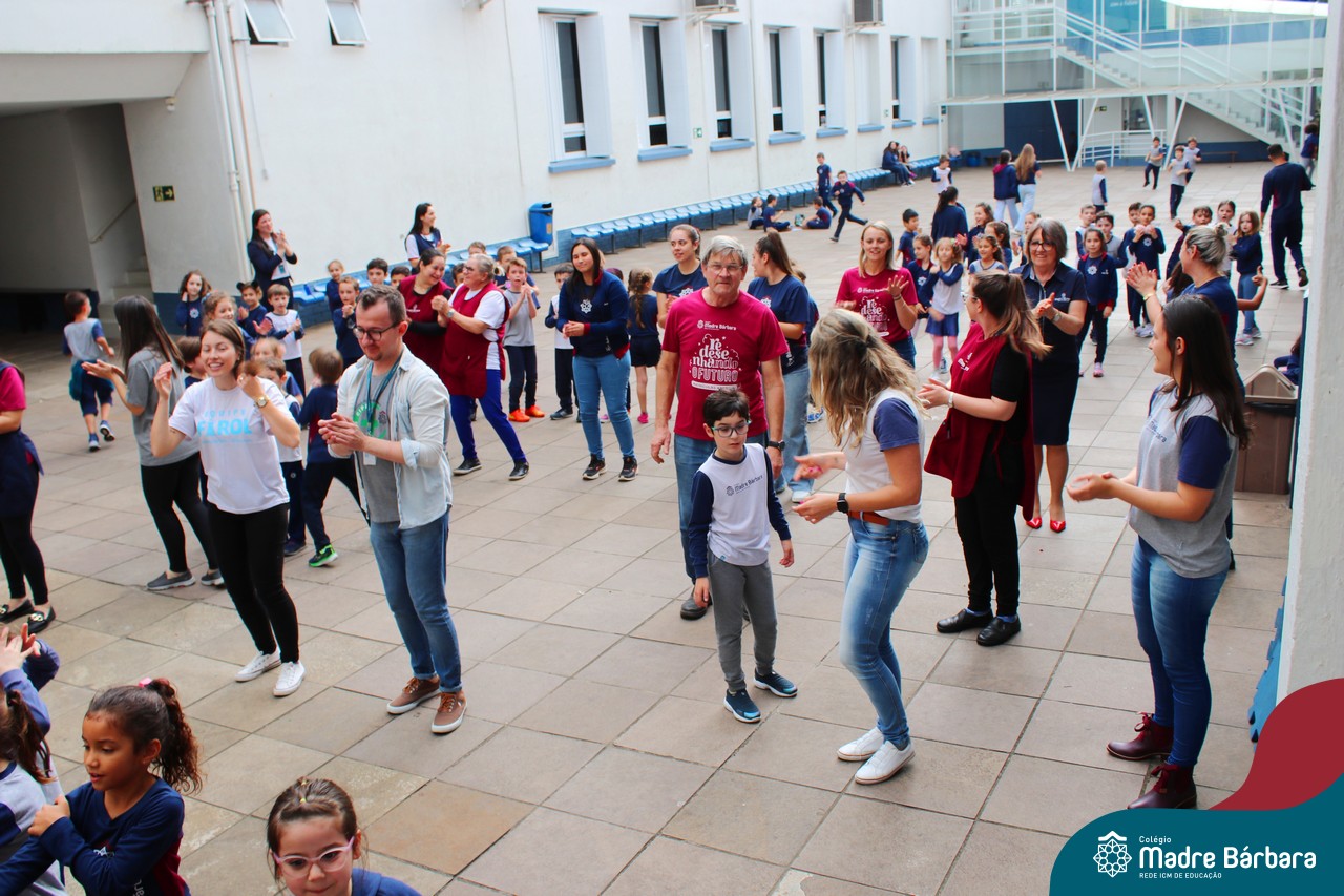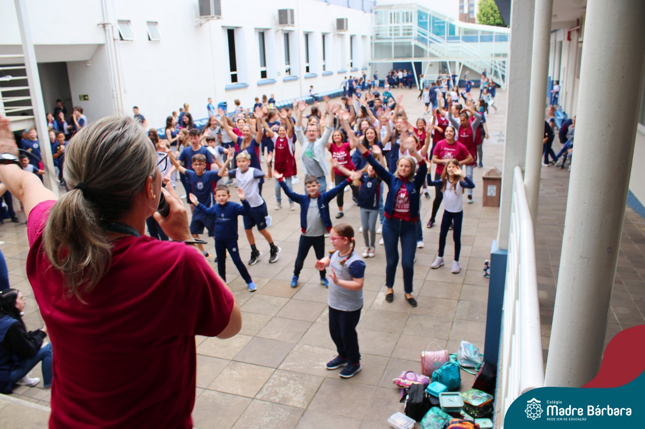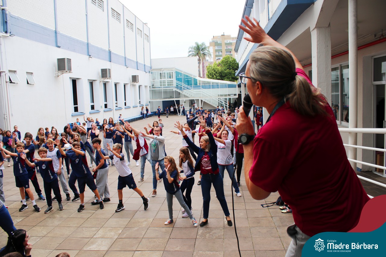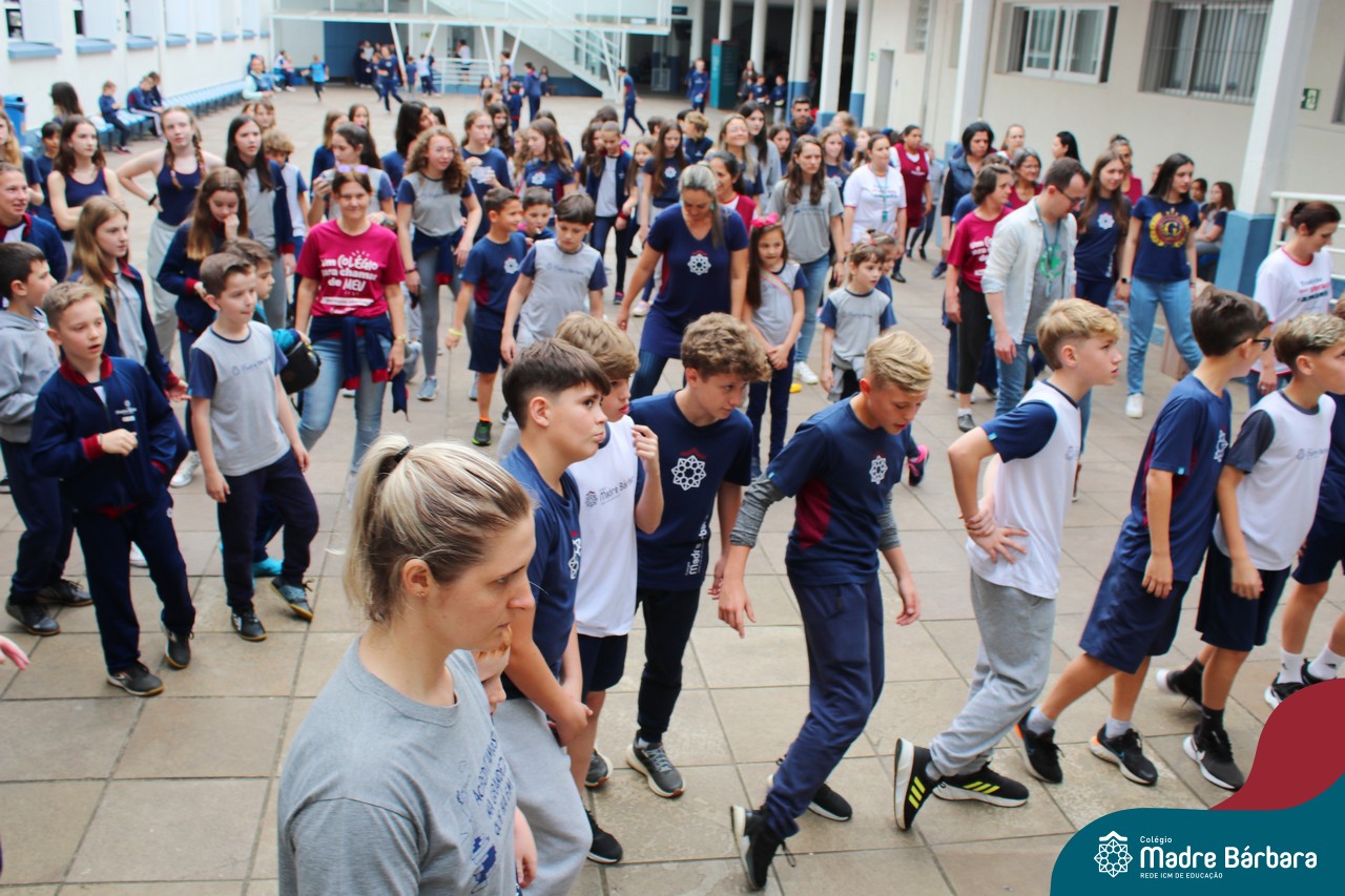 Incentivando a prática de atividades físicas, o grupo da Cipa do Colégio Madre Bárbara – Rede ICM convidou as educadoras físicas Isabel e Eduarda, para irem ao pátio fazer momentos de prática de atividades durante o recreio. A ação teve como tema: “Cuidando da saúde física” e fez parte do terceiro dia de programações da Semana Interna de Prevenção de Acidentes no Trabalho (Sipat). Estudantes e colaboradores estiveram se exercitando no pátio! Agradecemos aqueles que participaram e às profes Bel e Duda, que organizaram o momento.
