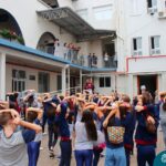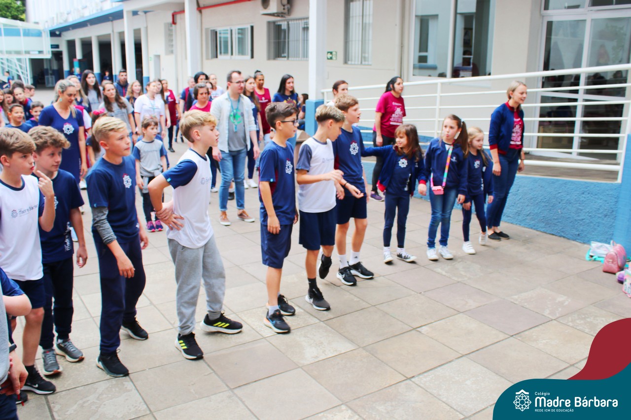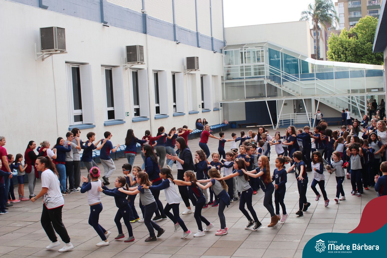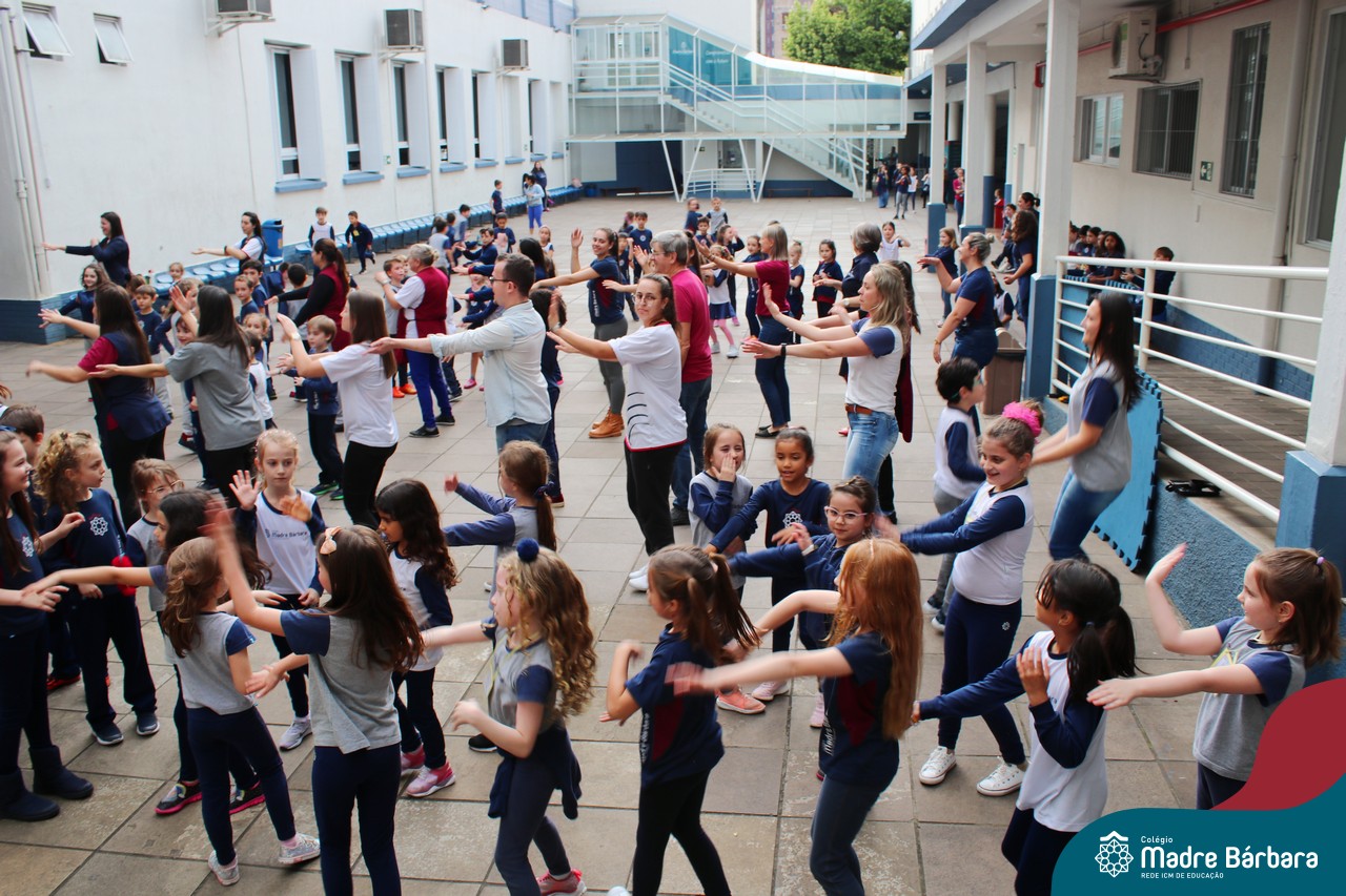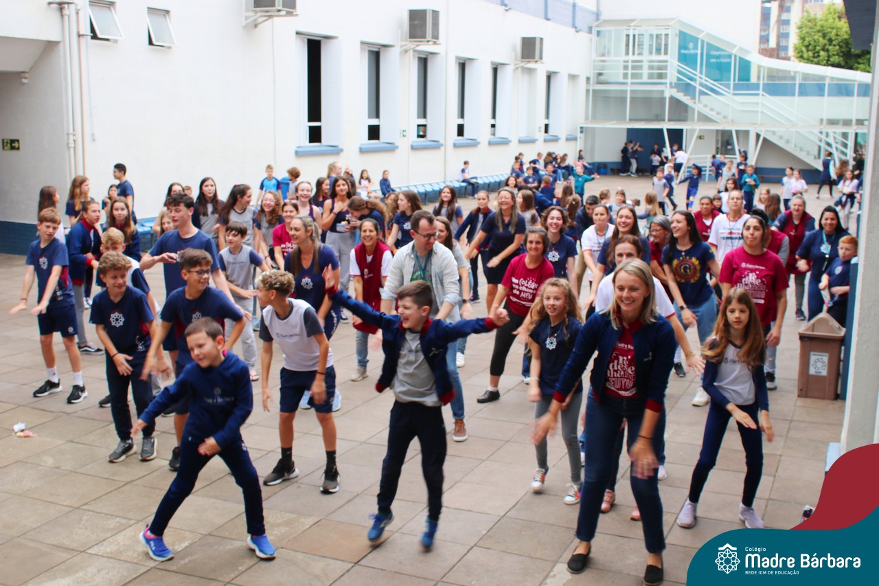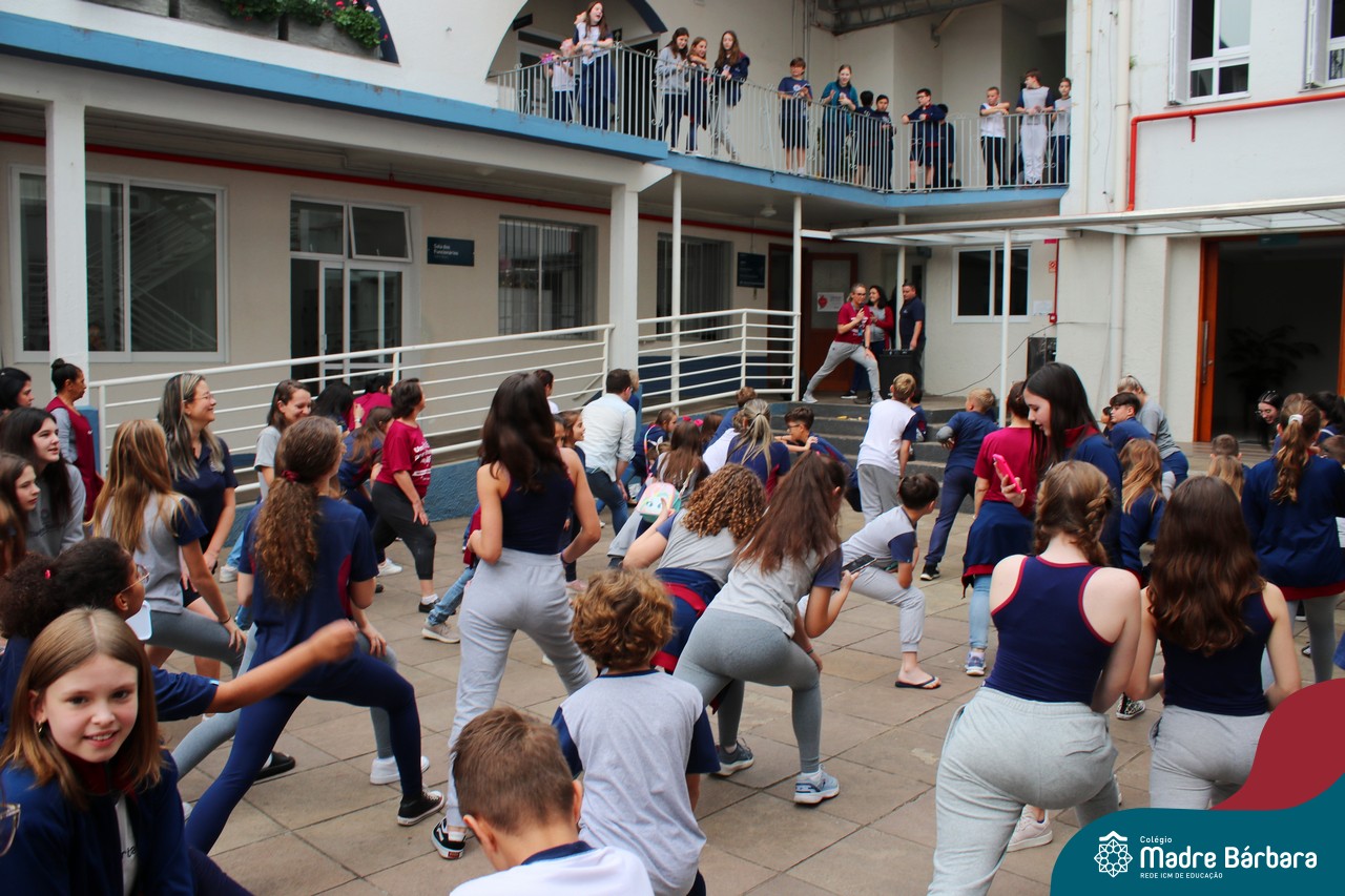 Incentivando a prática de atividades físicas, o grupo da Cipa do Colégio Madre Bárbara – Rede ICM convidou as educadoras físicas Isabel e Eduarda, para irem ao pátio fazer momentos de prática de atividades durante o recreio. A ação teve como tema: “Cuidando da saúde física” e fez parte do terceiro dia de programações da Semana Interna de Prevenção de Acidentes no Trabalho (Sipat). Estudantes e colaboradores estiveram se exercitando no pátio! Agradecemos aqueles que participaram e às profes Bel e Duda, que organizaram o momento.