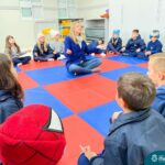 Nesta quarta-feira, dia 14/06, os estudantes da turma 22, do 2º ano do Ensino Fundamental – Anos Iniciais do Colégio Madre Bárbara – Rede ICM, juntamente com sua professora Caroline e monitora Gabriely, receberam a visita da terapeuta mestre em Reiki, Cristina Scheibel, proprietária do Espaço Terapêutico Sol e Lua. A profissional realizou um momento de meditação, propondo exercícios de respiração, equilíbrio do corpo e da mente, contribuindo no desenvolvimento da saúde emocional.
