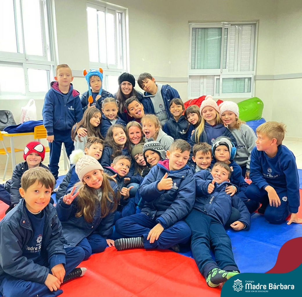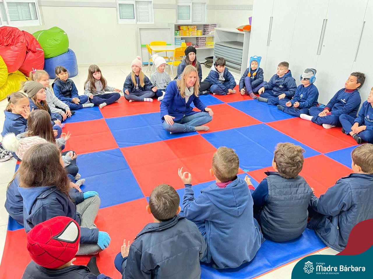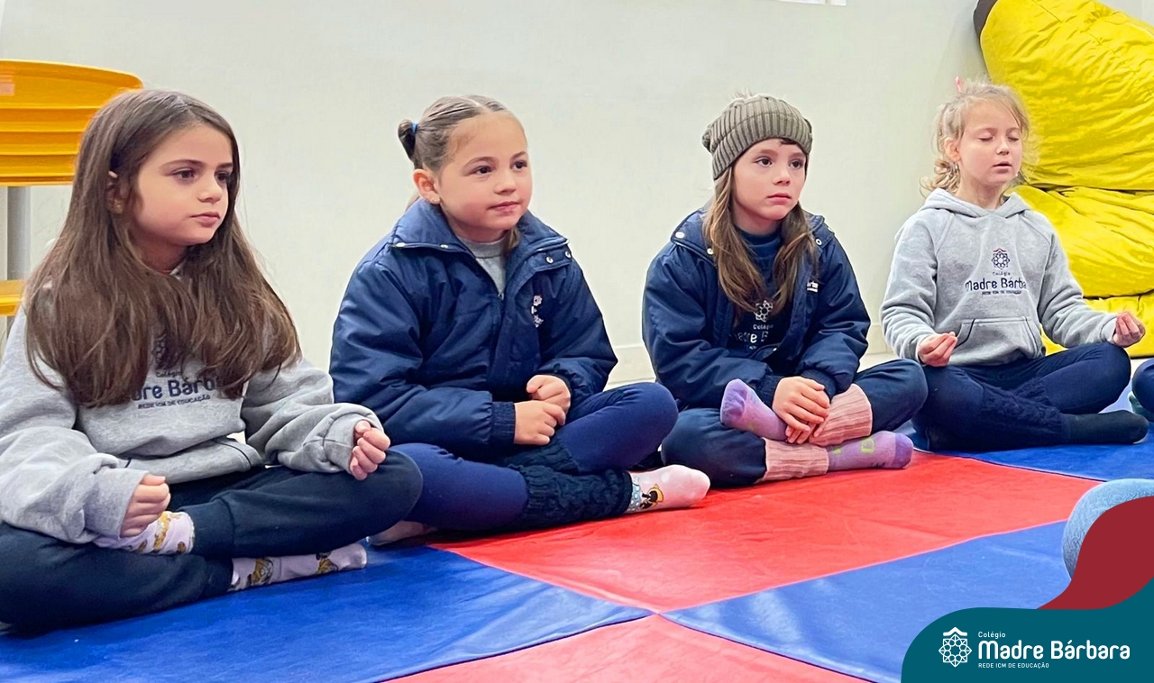Nesta quarta-feira, dia 14/06, os estudantes da turma 22, do 2º ano do Ensino Fundamental – Anos Iniciais do Colégio Madre Bárbara – Rede ICM, juntamente com sua professora Caroline e monitora Gabriely, receberam a visita da terapeuta mestre em Reiki, Cristina Scheibel, proprietária do Espaço Terapêutico Sol e Lua. A profissional realizou um momento de meditação, propondo exercícios de respiração, equilíbrio do corpo e da mente, contribuindo no desenvolvimento da saúde emocional.