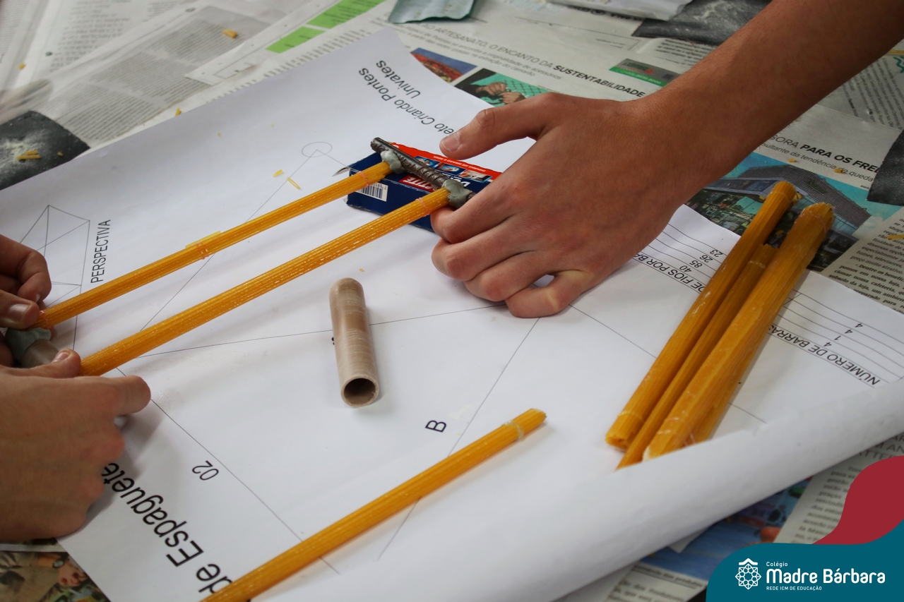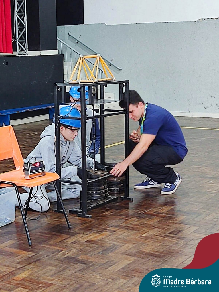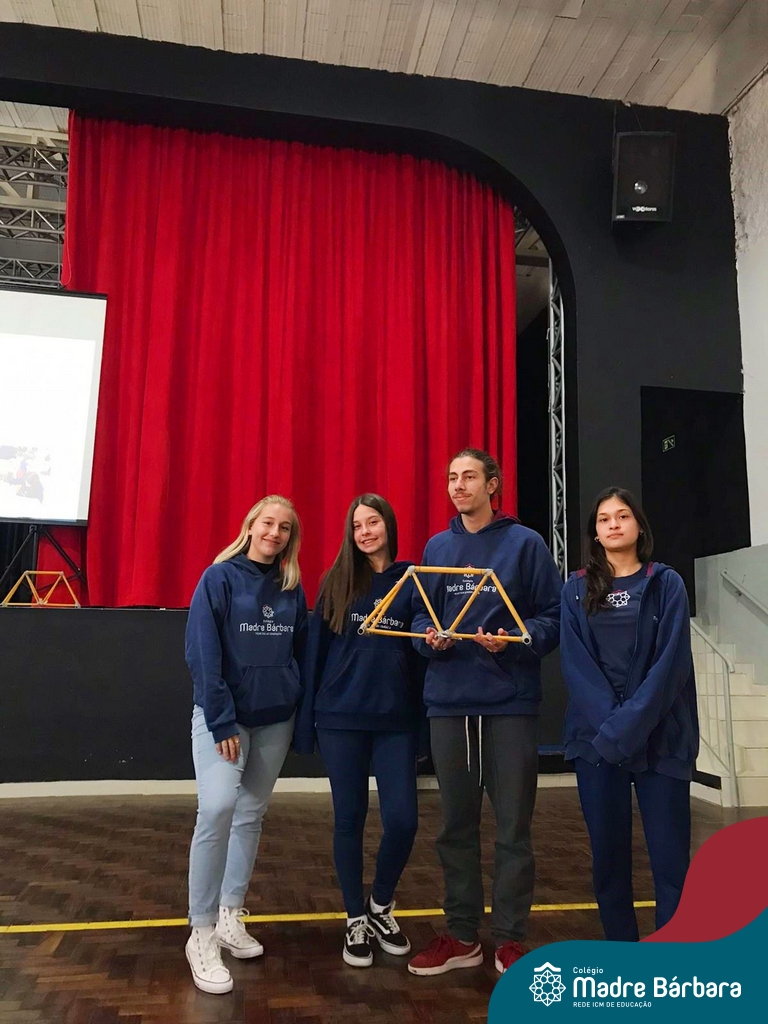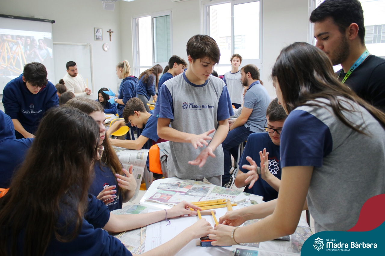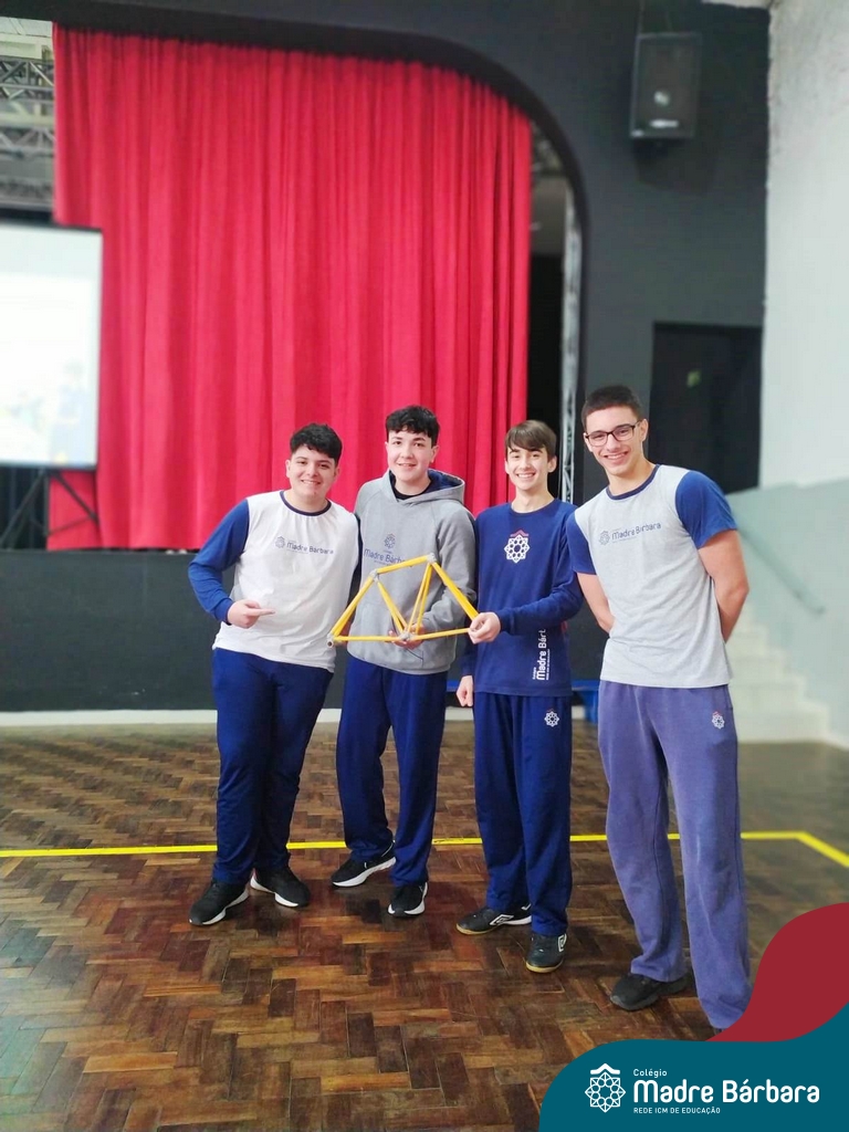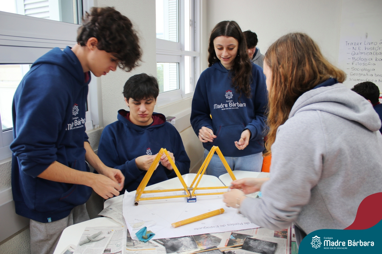 Os alunos do 1ºs anos do Ensino Médio, durante as aulas de Núcleo de Estudos de Matemática e Itinerário de Moradias: Espaço, Formas e Impactos Sociais, vivenciaram oficinas práticas de montagem de Pontes. O projeto foi ministrado pelo bolsista Afonso e pelo professor de engenharia civil da Univates, Rafael Mascolo. Os estudantes trabalharam em equipes e realizaram a montagem de um Projeto. Na segunda-feira (14.08), ocorreu o grande momento que finalizou com a competição entre os grupos para ver qual ponte suportaria mais peso. Suportando 103 kg, a ponte vencedora foi construída pelo grupo: Valentina Postal, João Hallmann, Lucas Sartori, Yasmin Kaufmann e Marcela Loeblein. Parabéns a todos os participantes! Além de uma aula descontraída e produtiva, os estudantes puderam experienciar na prática conceitos básicos e importantes da engenharia.