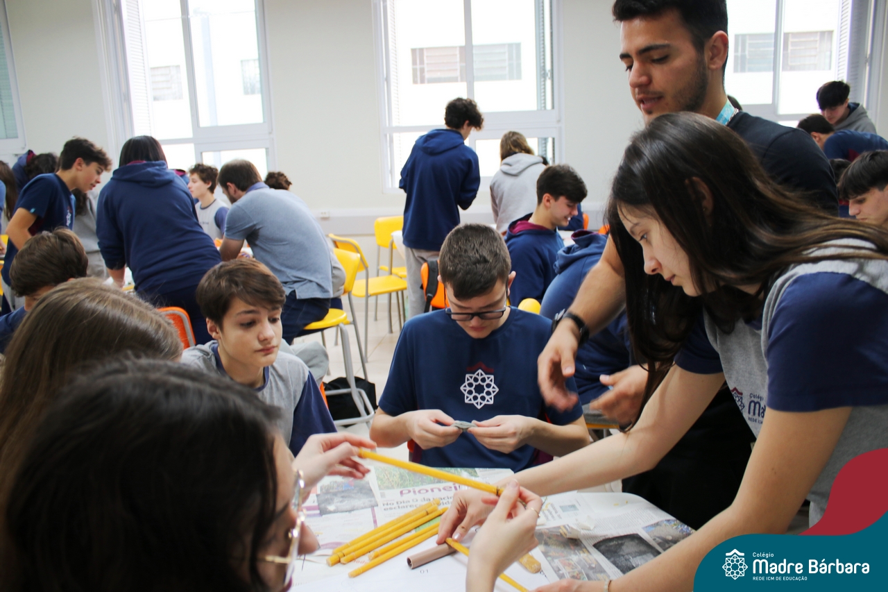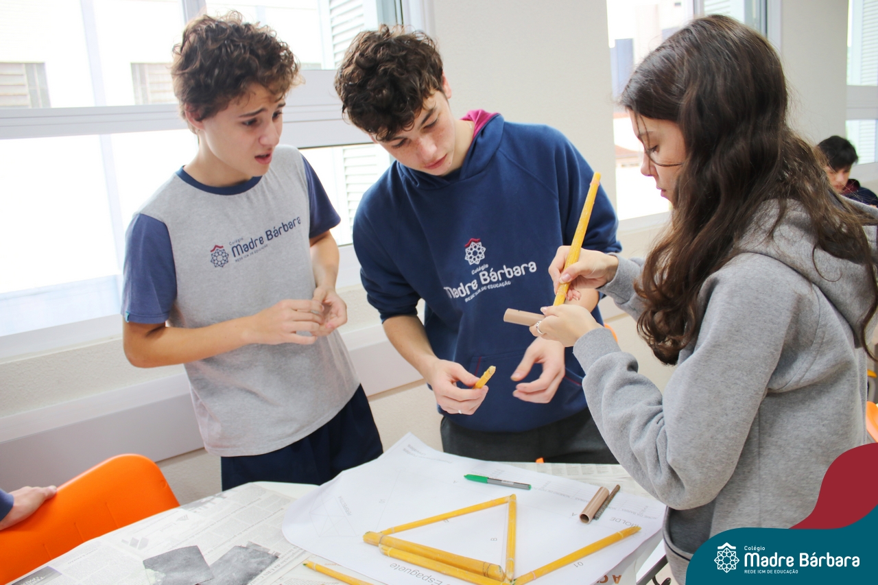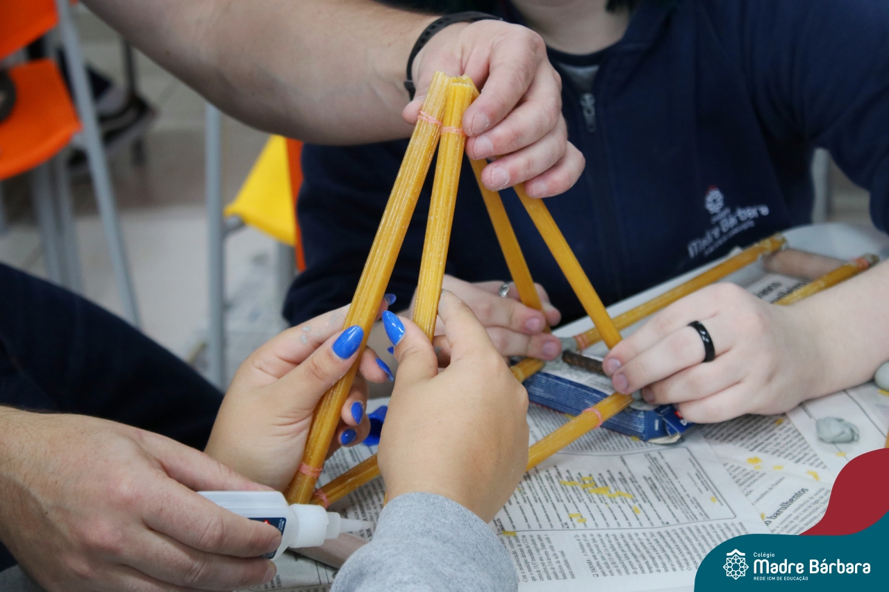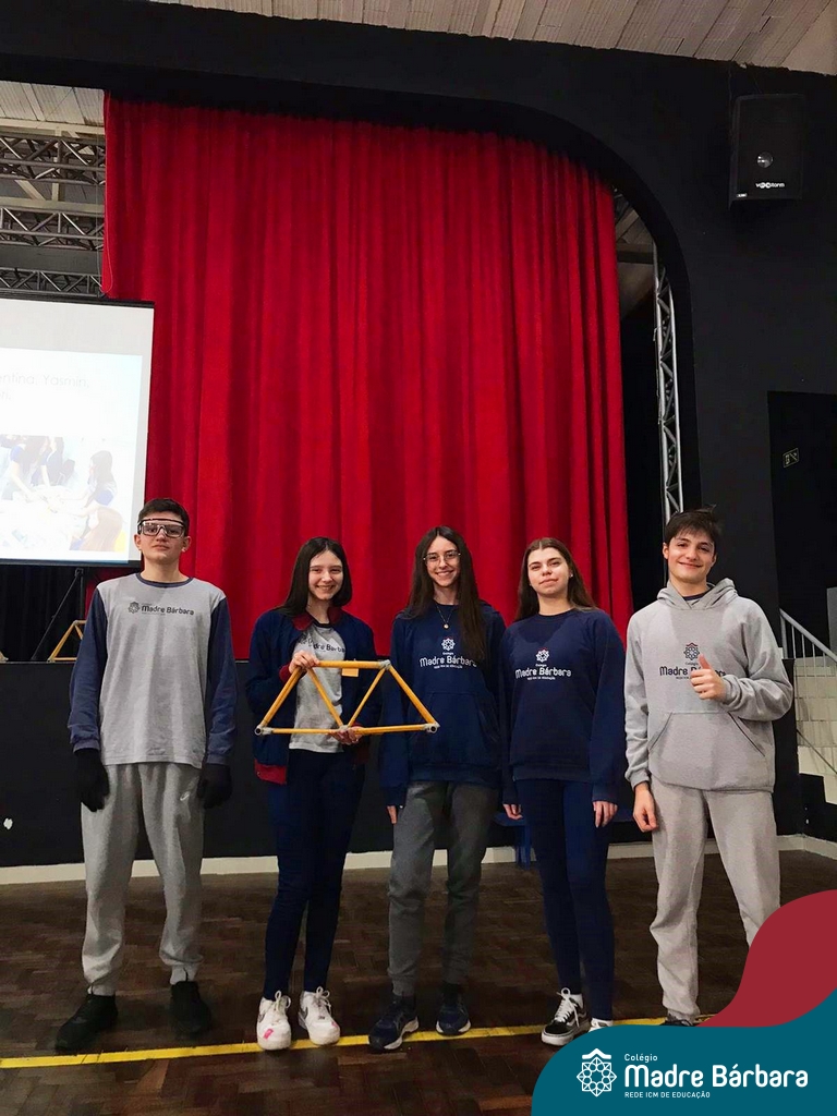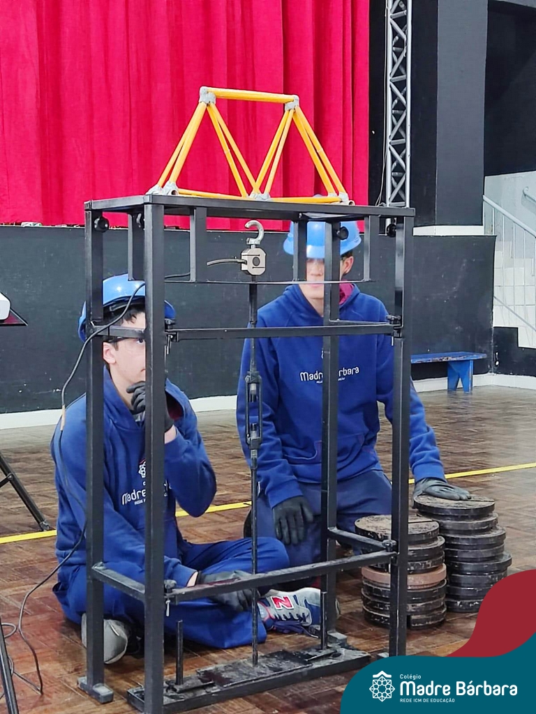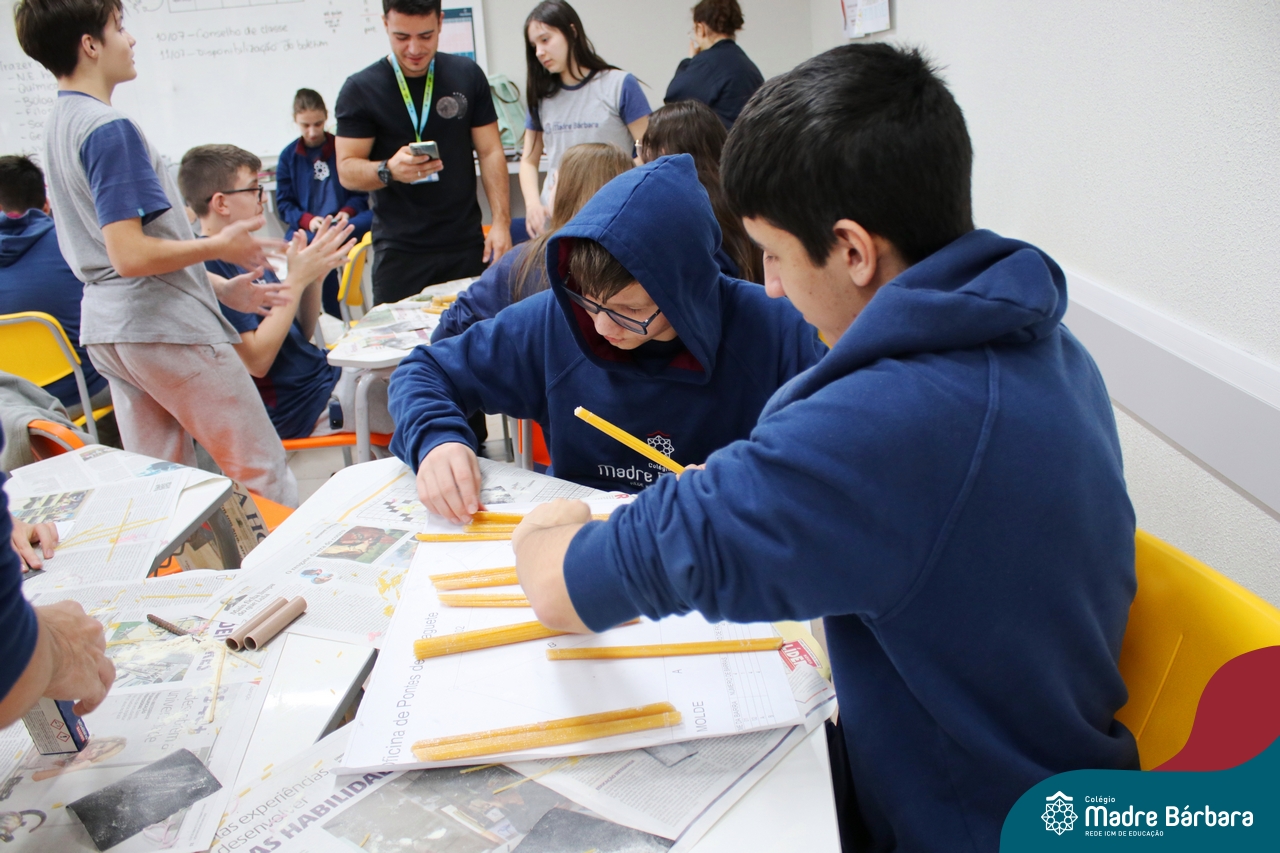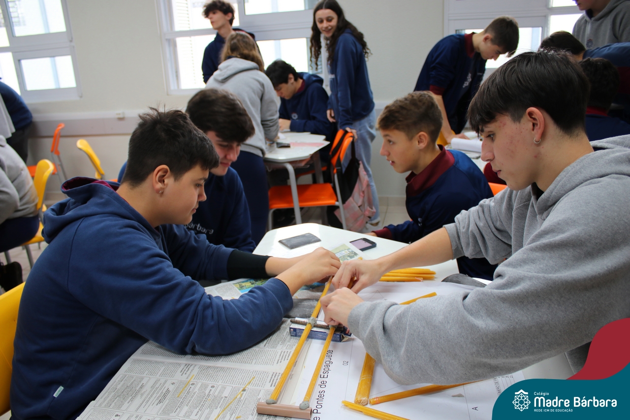 Os alunos do 1ºs anos do Ensino Médio, durante as aulas de Núcleo de Estudos de Matemática e Itinerário de Moradias: Espaço, Formas e Impactos Sociais, vivenciaram oficinas práticas de montagem de Pontes. O projeto foi ministrado pelo bolsista Afonso e pelo professor de engenharia civil da Univates, Rafael Mascolo. Os estudantes trabalharam em equipes e realizaram a montagem de um Projeto. Na segunda-feira (14.08), ocorreu o grande momento que finalizou com a competição entre os grupos para ver qual ponte suportaria mais peso. Suportando 103 kg, a ponte vencedora foi construída pelo grupo: Valentina Postal, João Hallmann, Lucas Sartori, Yasmin Kaufmann e Marcela Loeblein. Parabéns a todos os participantes! Além de uma aula descontraída e produtiva, os estudantes puderam experienciar na prática conceitos básicos e importantes da engenharia.