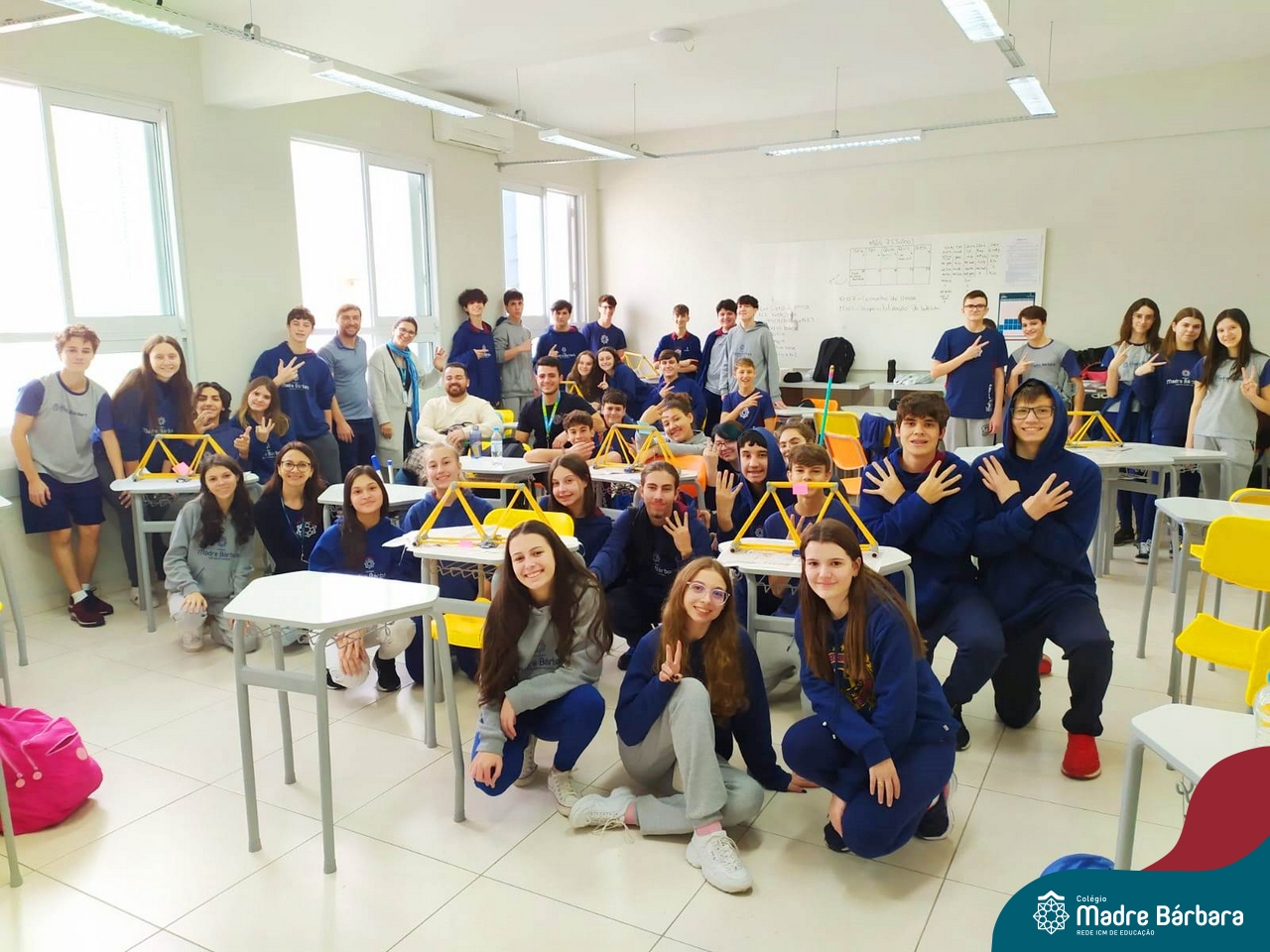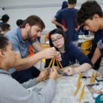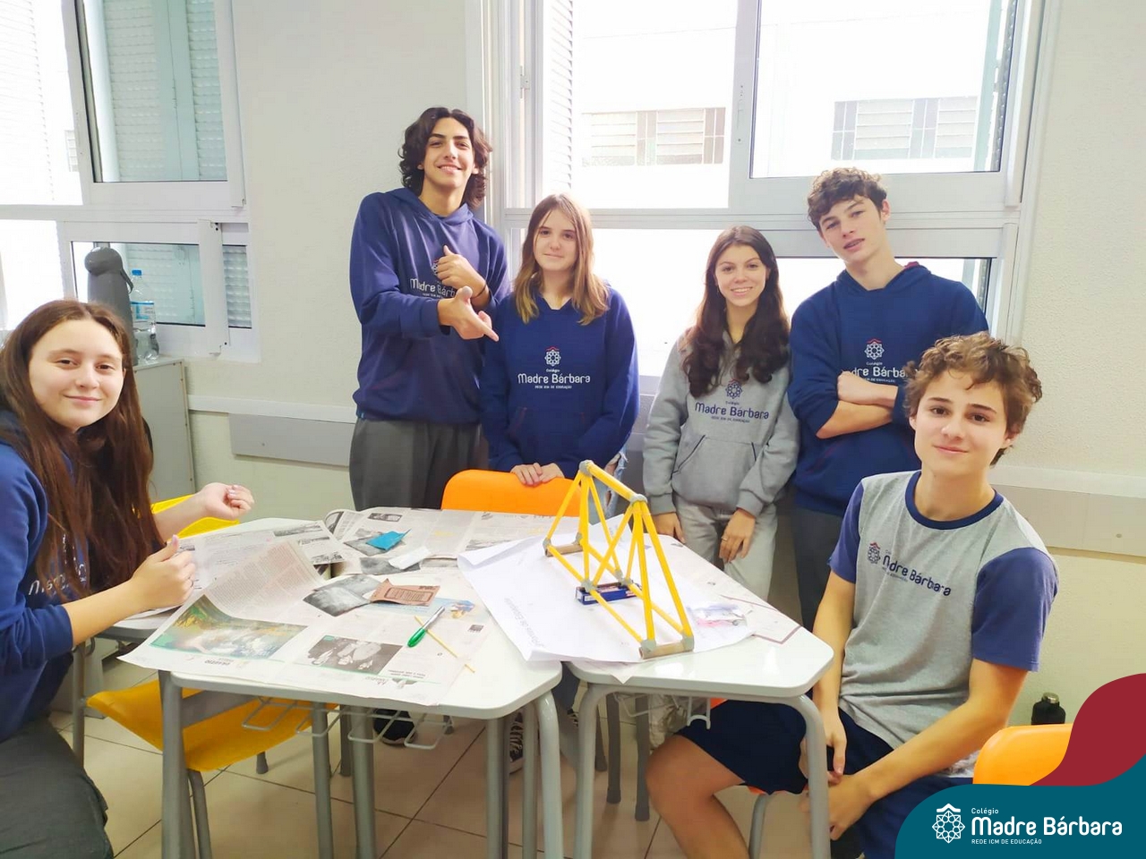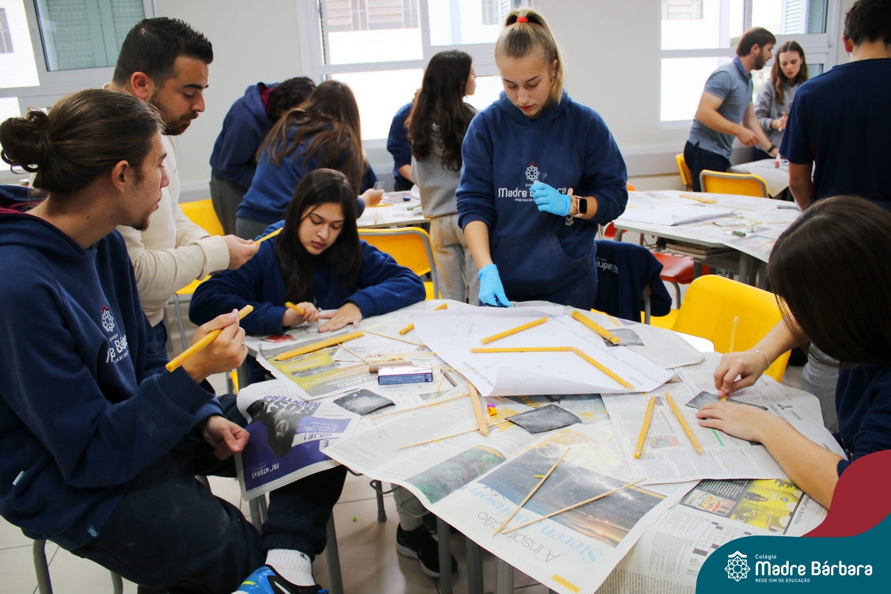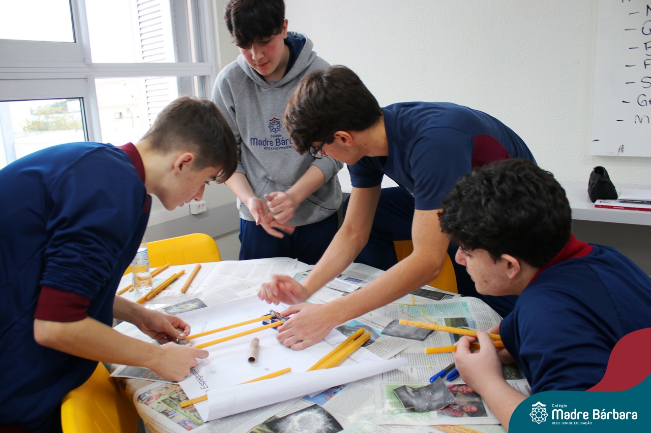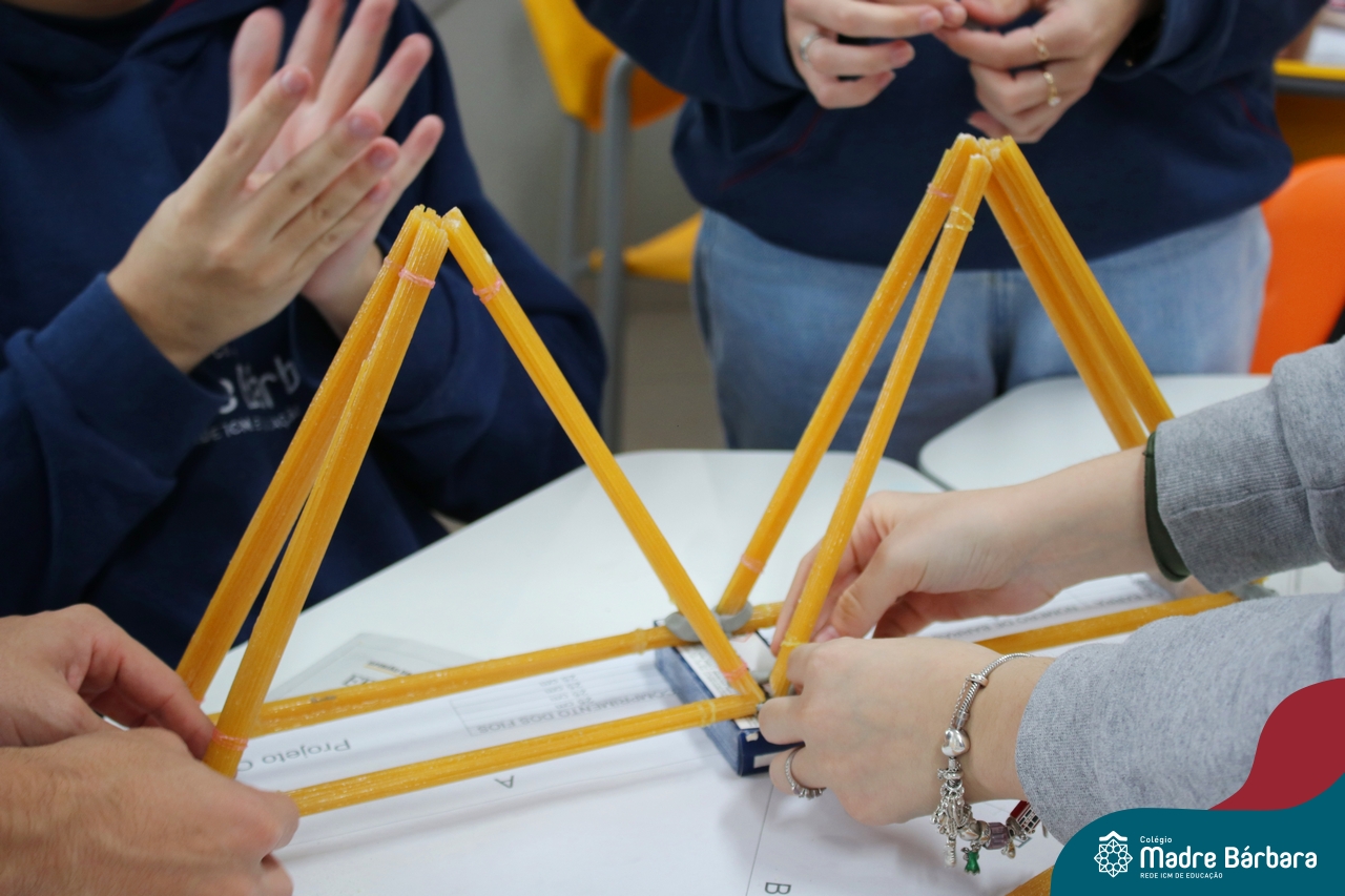 Os alunos do 1ºs anos do Ensino Médio, durante as aulas de Núcleo de Estudos de Matemática e Itinerário de Moradias: Espaço, Formas e Impactos Sociais, vivenciaram oficinas práticas de montagem de Pontes. O projeto foi ministrado pelo bolsista Afonso e pelo professor de engenharia civil da Univates, Rafael Mascolo. Os estudantes trabalharam em equipes e realizaram a montagem de um Projeto. Na segunda-feira (14.08), ocorreu o grande momento que finalizou com a competição entre os grupos para ver qual ponte suportaria mais peso. Suportando 103 kg, a ponte vencedora foi construída pelo grupo: Valentina Postal, João Hallmann, Lucas Sartori, Yasmin Kaufmann e Marcela Loeblein. Parabéns a todos os participantes! Além de uma aula descontraída e produtiva, os estudantes puderam experienciar na prática conceitos básicos e importantes da engenharia.