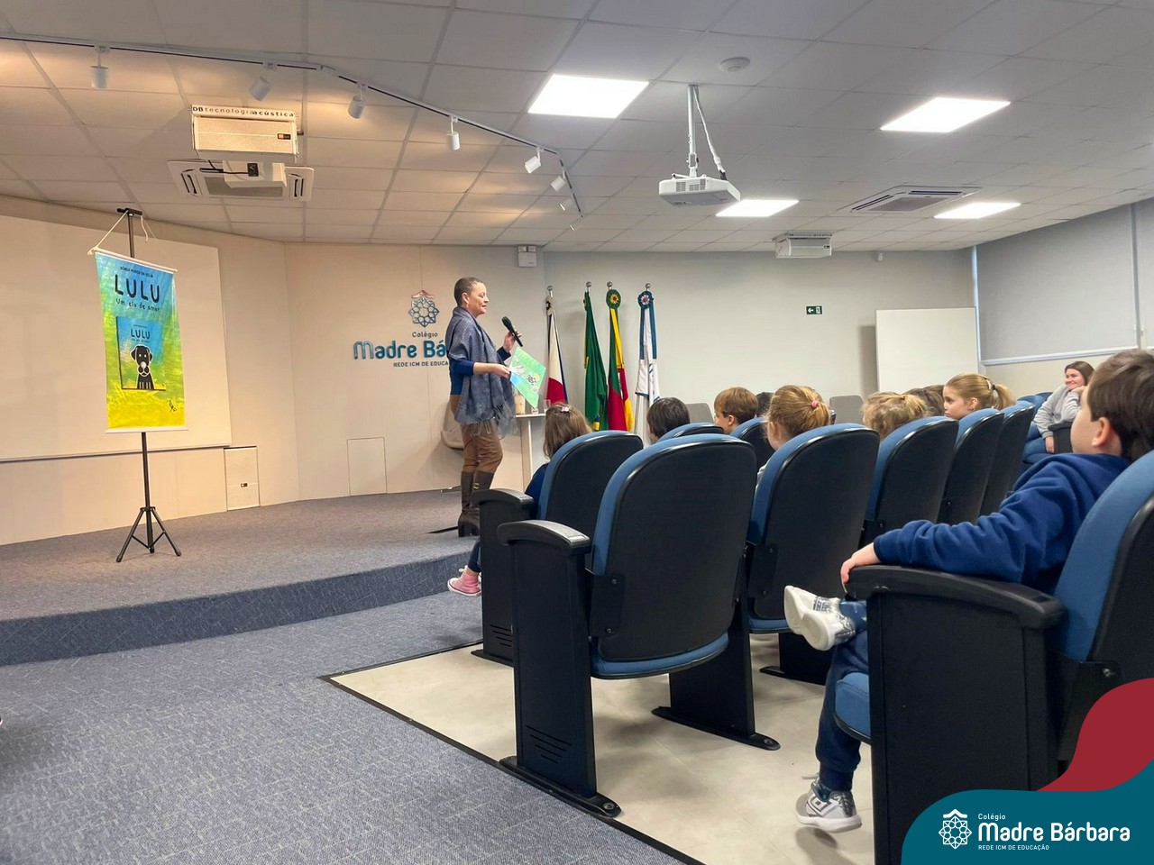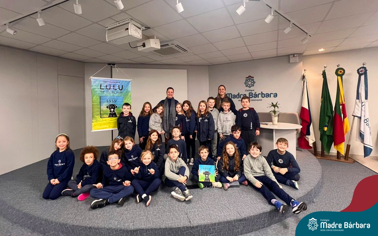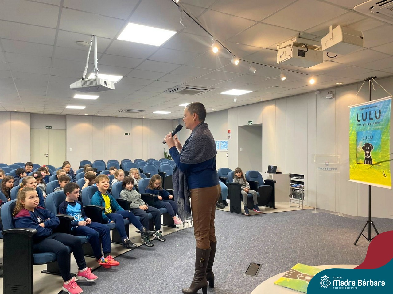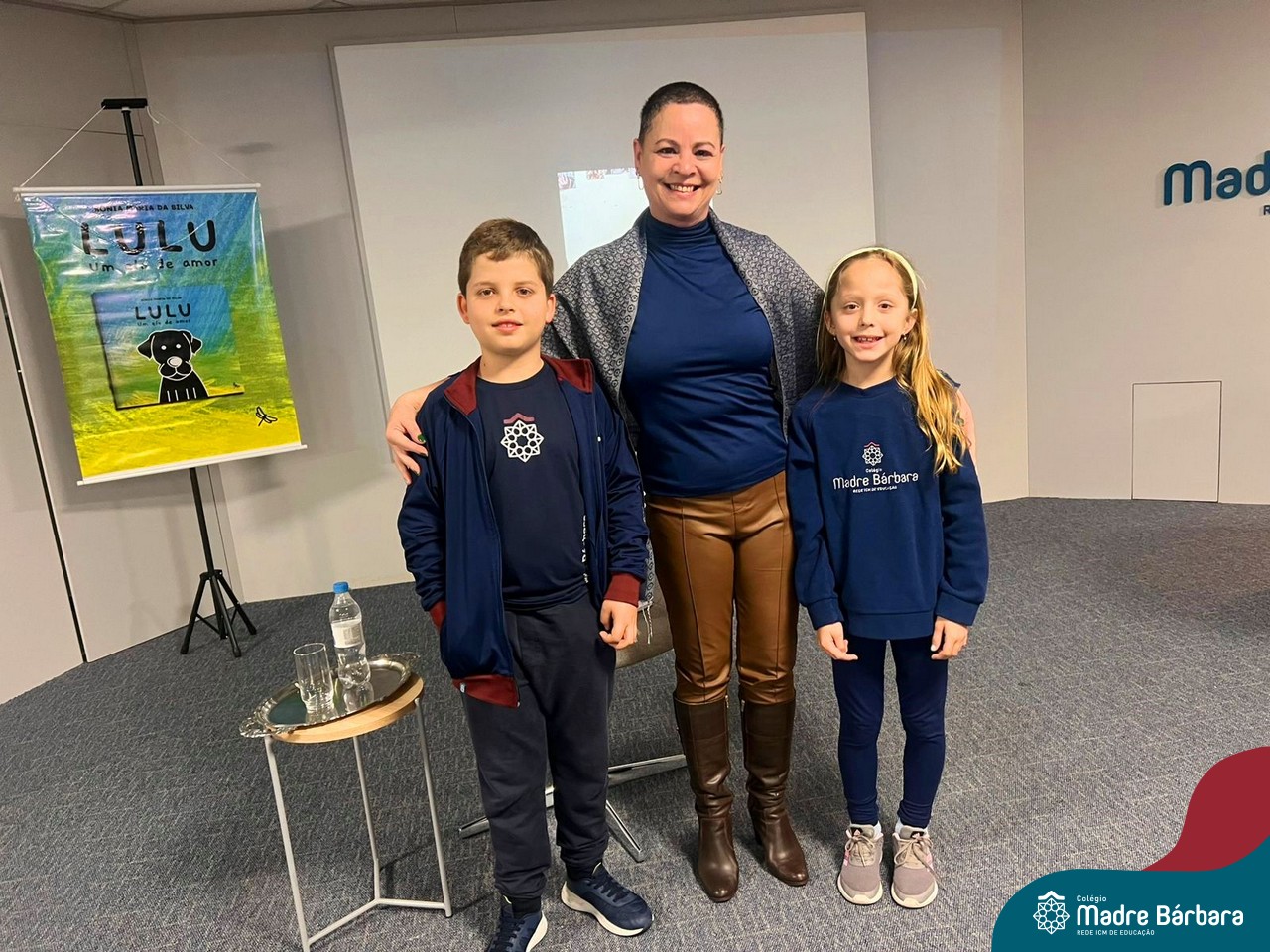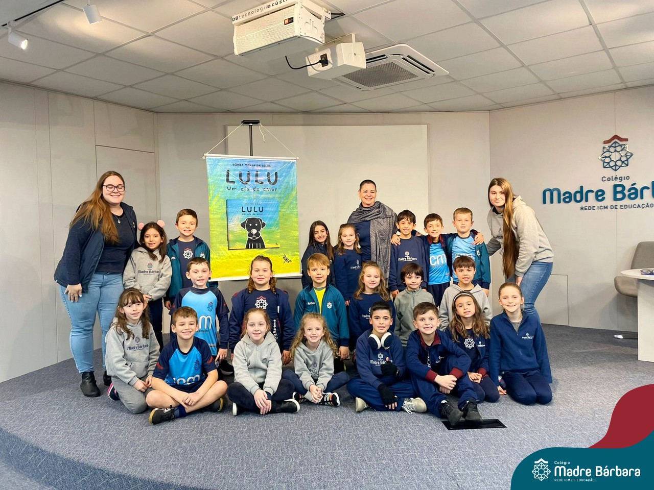 Sônia nos apresentou seu livro: “Lulu, um elo de amor”, obra que percorreu as turmas 21, 22, 23, 24 e 25, sendo explorada com carinho e dedicação pelas professoras Caroline, Mariana, Mara, Simoni e Vitória. Através das rimas e mensagens do livro, os alunos refletiram sobre temas valiosos como adoção responsável de animais, valorização da família, afetos verdadeiros e a importância de fazer o bem.