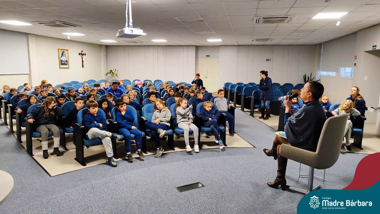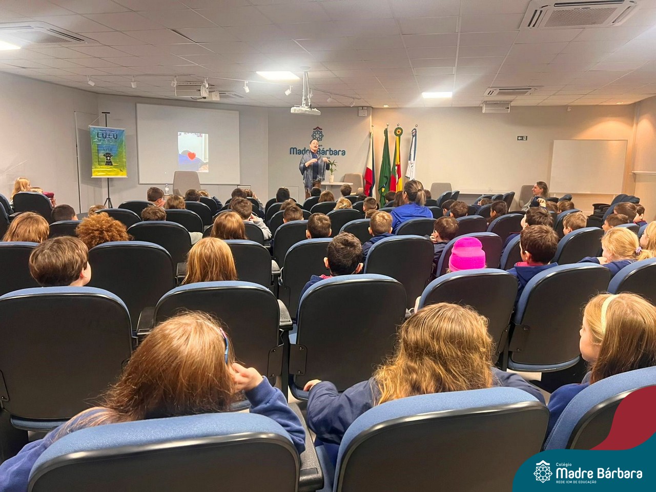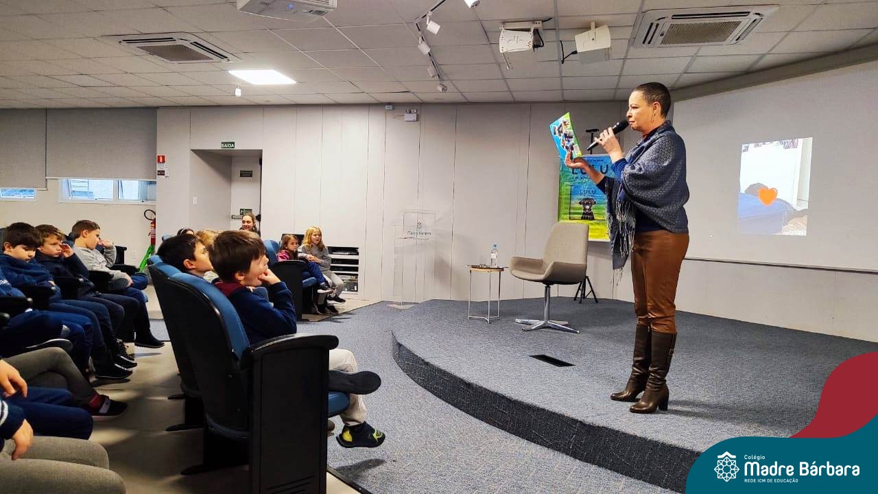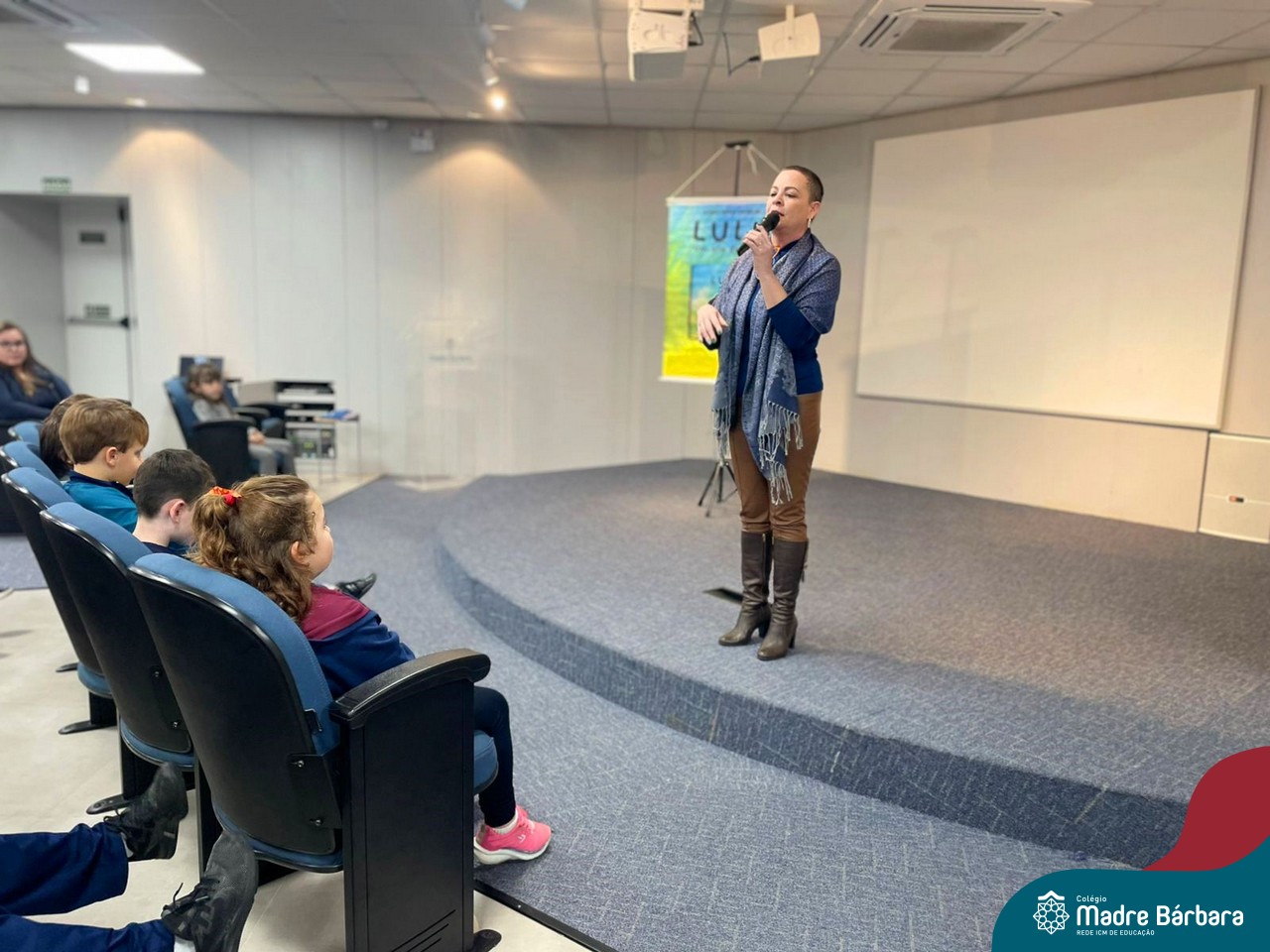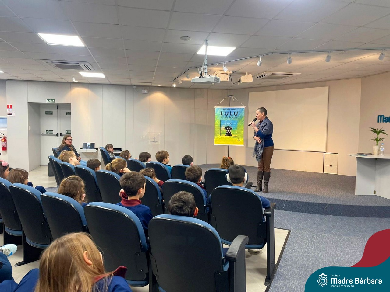 Sônia nos apresentou seu livro: “Lulu, um elo de amor”, obra que percorreu as turmas 21, 22, 23, 24 e 25, sendo explorada com carinho e dedicação pelas professoras Caroline, Mariana, Mara, Simoni e Vitória. Através das rimas e mensagens do livro, os alunos refletiram sobre temas valiosos como adoção responsável de animais, valorização da família, afetos verdadeiros e a importância de fazer o bem.