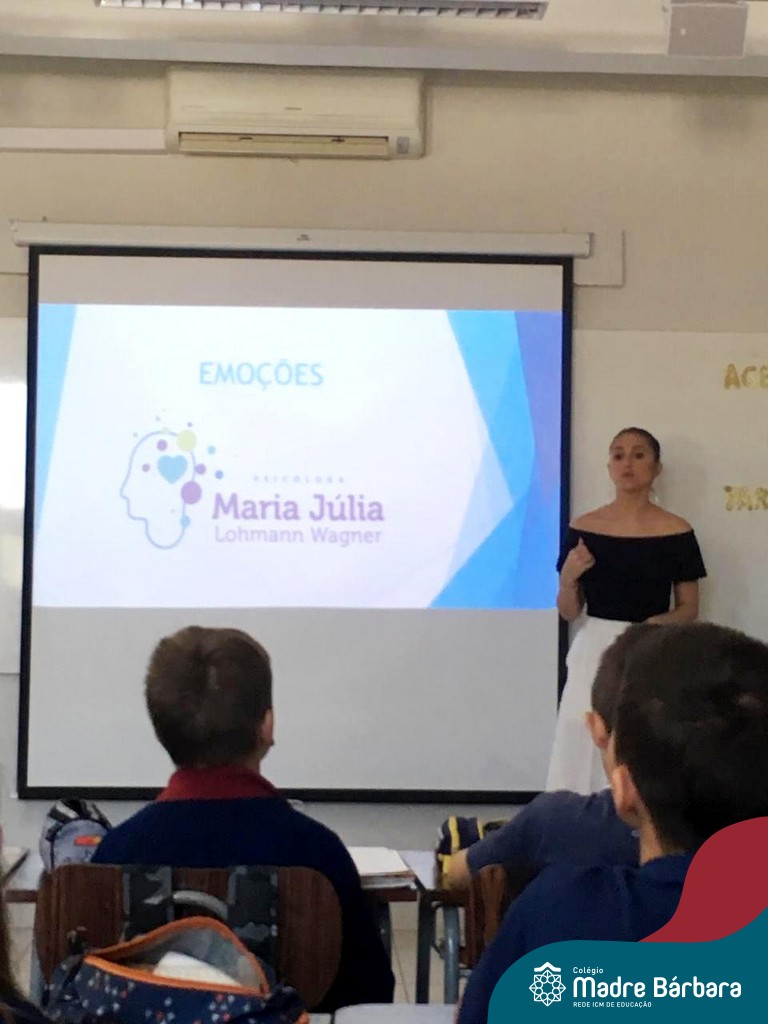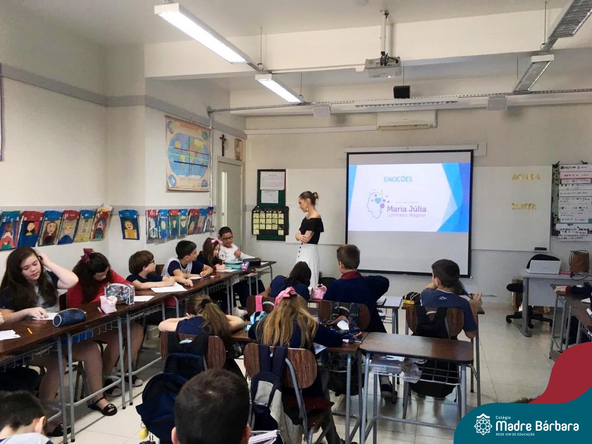 Emocionalmente falando… Considerando que a escola não é apenas o lugar onde se aprendem as operações matemáticas e o abecedário, mas também um espaço para o desenvolvimento de habilidades sociais e emocionais, a escolha da turma 51 para a Mostra Científico Pedagógica de 2019 foi trabalhar com as emoções, identificando comandos cerebrais e como as emoções se manifestam no organismo. Para iniciar a pesquisa, orientada pela professora Daniela Guizzo de Oliveira, os alunos tiveram uma conversa com a psicóloga Maria Júlia Lohmann Wagner, na manhã do dia 10 de outubro, sobre inteligência emocional. Foi um momento de muitas aprendizagens!