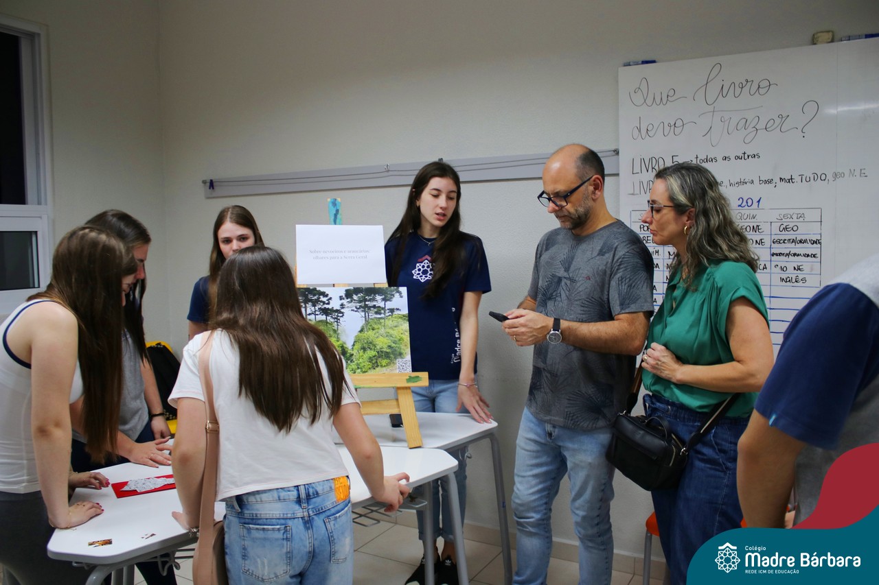 Na quarta-feira (22), a primeira noite da Mostra Pedagógica os estudantes dos primeiros e segundos anos do Novo Ensino Médio do Colégio realizaram a exposição dos Trabalhos Semestrais das áreas de Biologia e Geografia, disciplinas ministradas pelos professores Ângela Lenz e Lucas Schneider. Cada série realizou, durante o semestre, uma viagem de estudos para uma localidade: os primeiros anos, realizaram estudos nos municípios de Torres e Osório. Já os segundos anos realizaram seus estudos sobre Cambará do Sul ou alguma localidade do Vale do Taquari. Sob a orientação dos professores, os estudantes, organizados em grupos, criaram um site a partir da plataforma Google, explanando e descrevendo as localidades. Também foram desafiados e criar um poema que expressasse os sentimentos vividos pela saída de campo e uma fotografia que retratasse um momento único vivenciado. Intitulados de acordo com os locais visitados, os projetos “Entre sinestesias e fotografias: olhares para o Litoral Norte”, “Sobre nevoeiros e araucárias: olhada para a Serra Geral” e “Sobre as interfaces da natureza: olhares para o Vale do Taquari” foram finalizados ontem, com um festival de declamação dos poemas, de exposição das fotografias e dos Sites dos estudantes. Já os estudantes das turmas de 9ºs anos compartilharam experiências e relatos da viagem de estudos de imersão no Museu de Ciência e Tecnologia da PUC-RS em Porto Alegre. Os estudantes executaram experimentos envolvendo conceitos relacionados à física, matemática e química. A proposta é coordenada pelos professores Aliar Jung, Eduardo Fuchs e Silvana Emer.