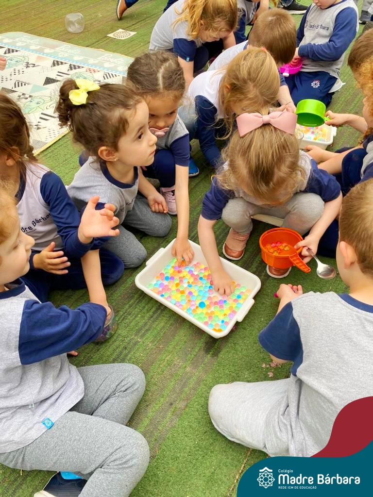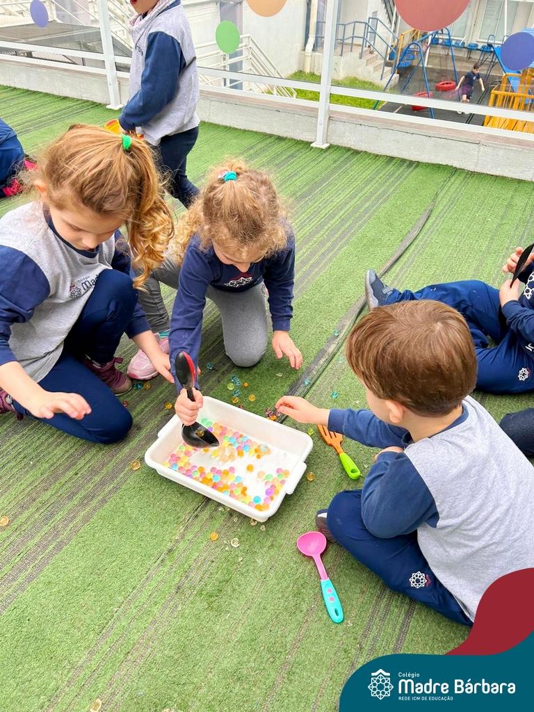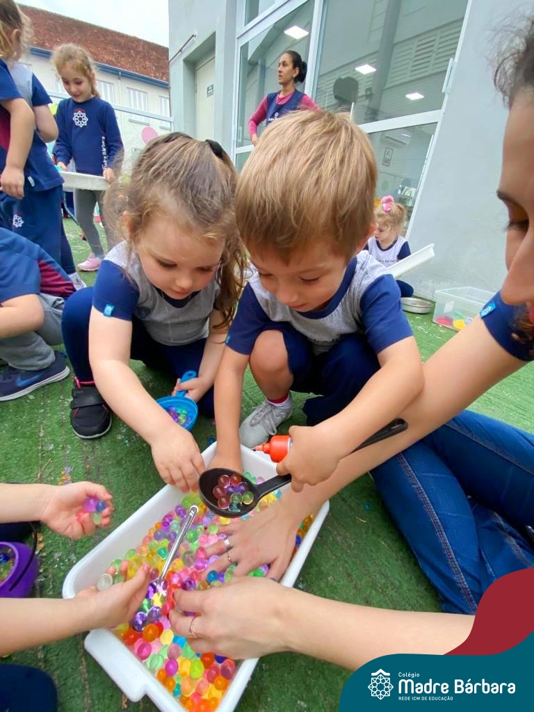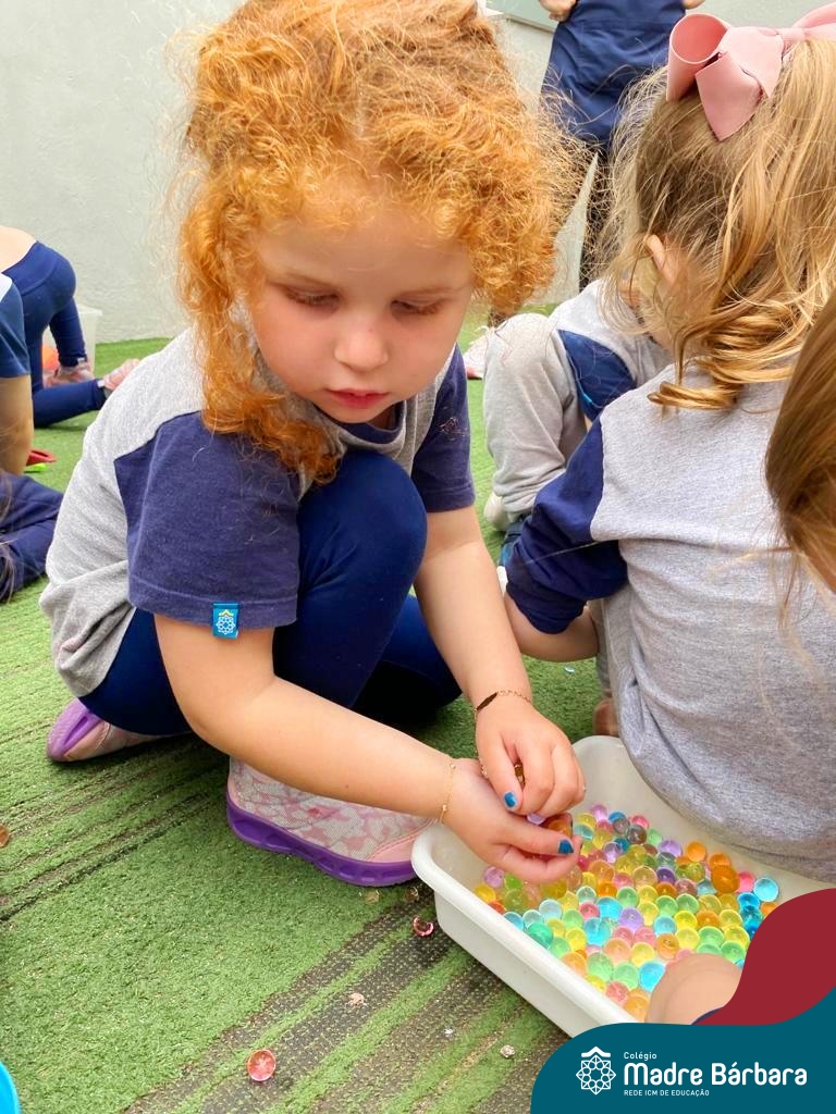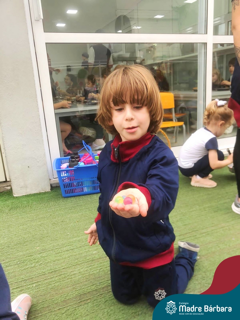 Foi ao som de música instrumental que as crianças dos Níveis 3 aproveitaram a linda tarde de terça-feira (03.10) para brincar com bolinhas de gel. Essa atividade teve como objetivo trabalhar a coordenação motora, lateralidade, raciocínio lógico. Além disso, ao explorar sensações frias, geladas e lisas as crianças tiveram a oportunidade de expandir o conhecimento sobre o mundo ao seu redor. Essa experiência foi divertida e enriquecedora, onde a música e a exploração sensorial se uniram para tornar a tarde de muito aprendizado e muita diversão!