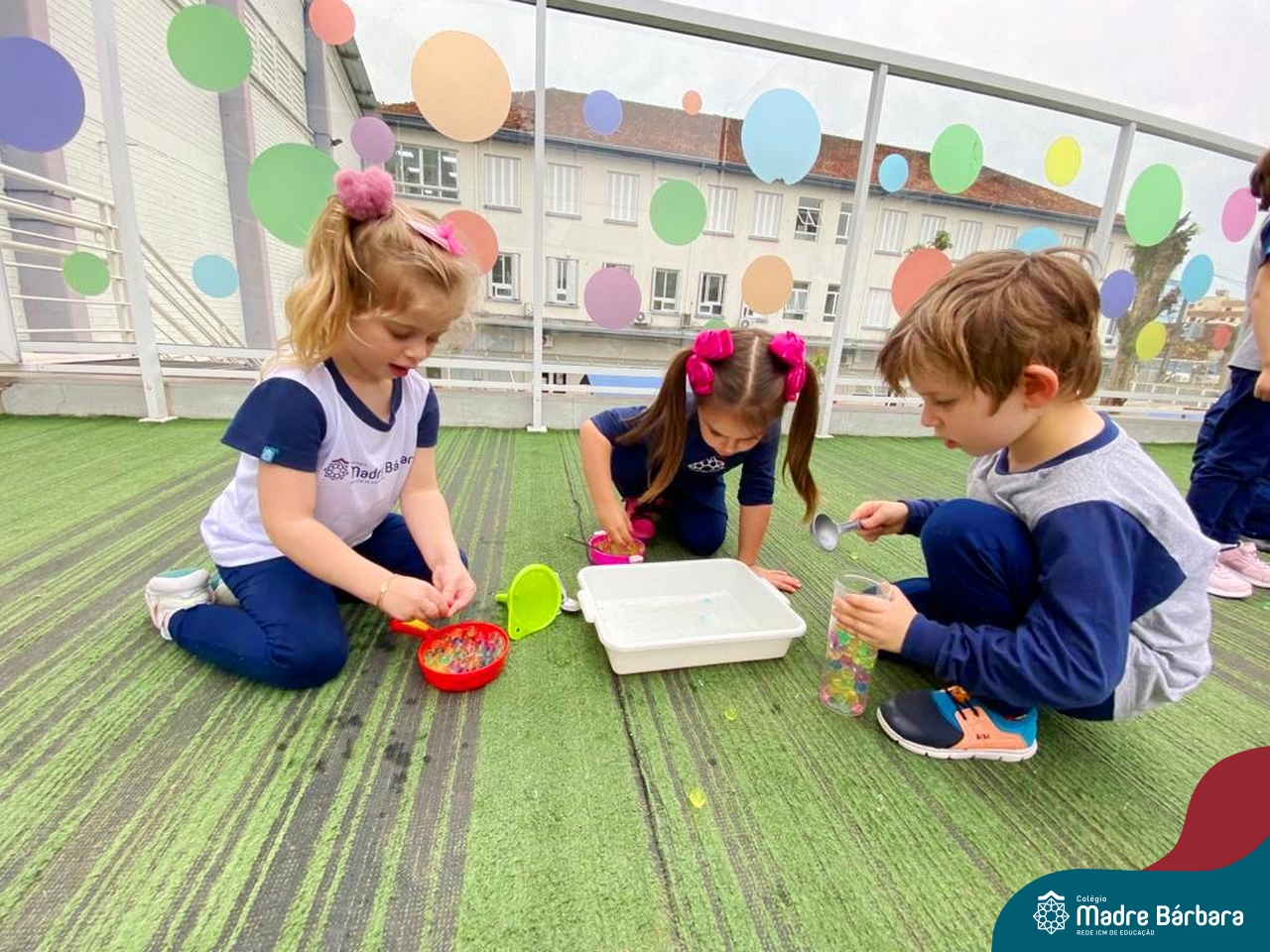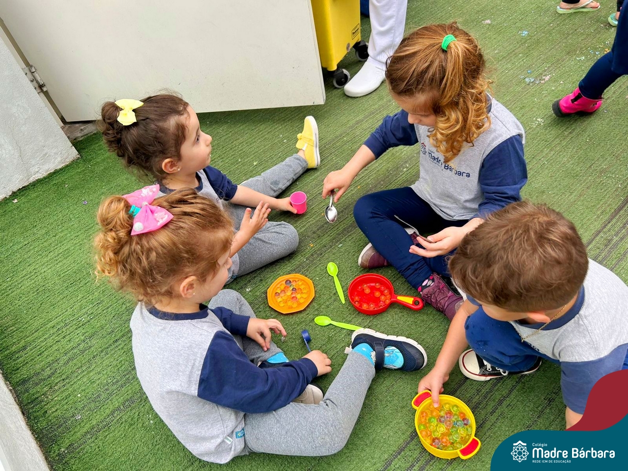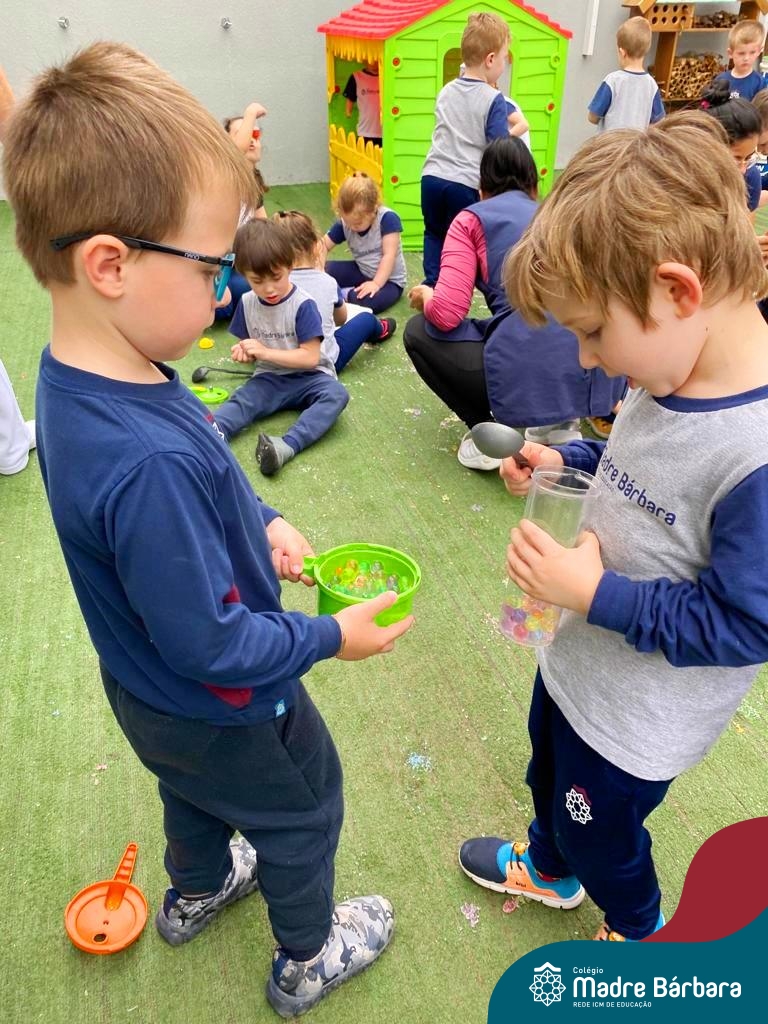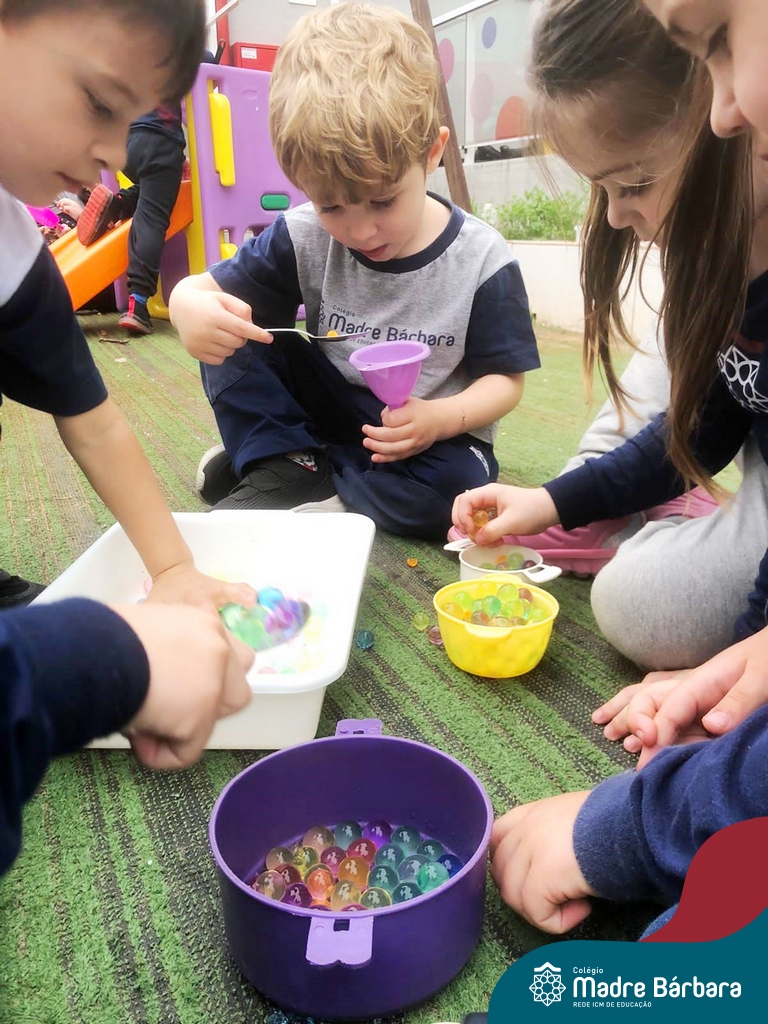 Foi ao som de música instrumental que as crianças dos Níveis 3 aproveitaram a linda tarde de terça-feira (03.10) para brincar com bolinhas de gel. Essa atividade teve como objetivo trabalhar a coordenação motora, lateralidade, raciocínio lógico. Além disso, ao explorar sensações frias, geladas e lisas as crianças tiveram a oportunidade de expandir o conhecimento sobre o mundo ao seu redor. Essa experiência foi divertida e enriquecedora, onde a música e a exploração sensorial se uniram para tornar a tarde de muito aprendizado e muita diversão!