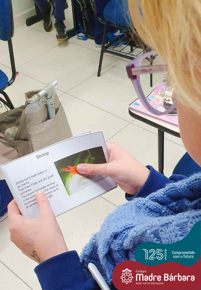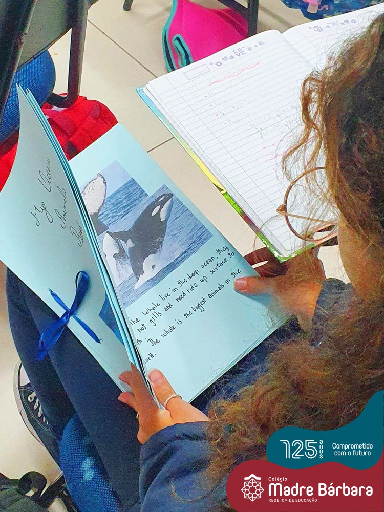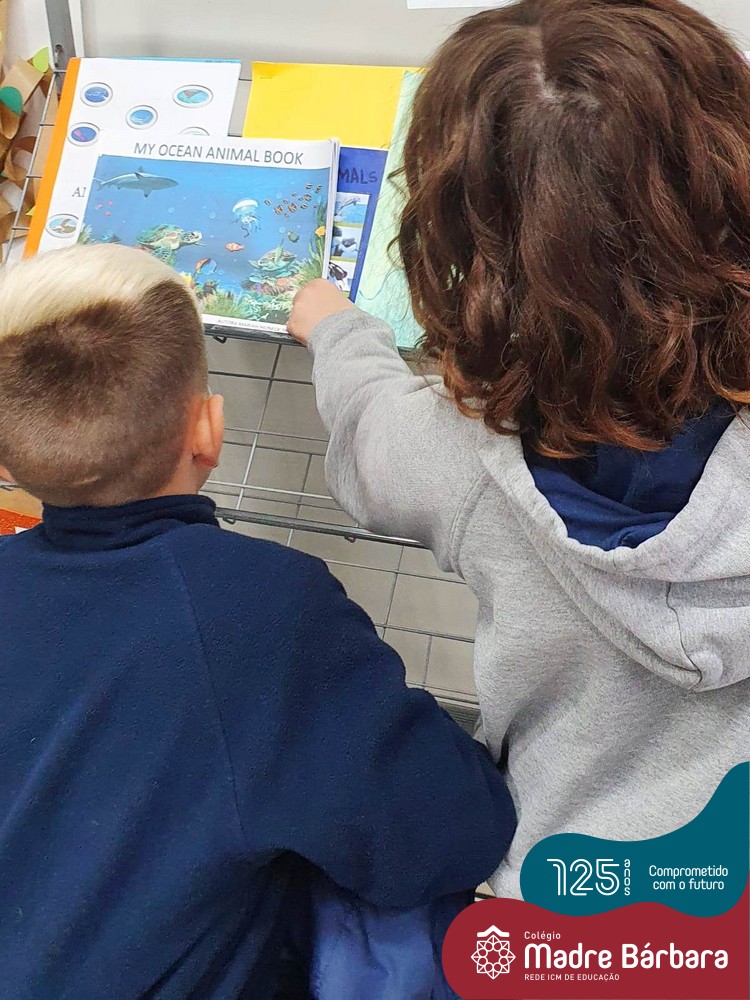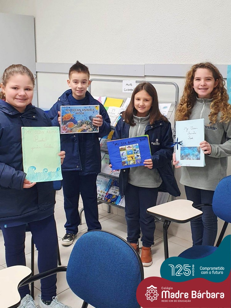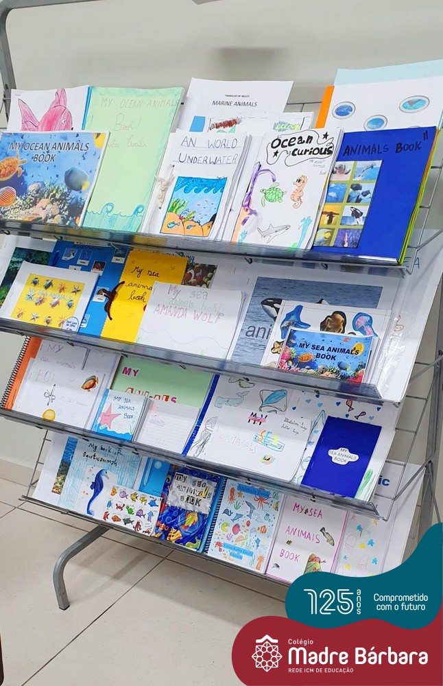 As turmas dos 4°s anos finalizaram os seus estudos sobre animais marinhos com a produção de livros sobre o assunto “My Sea Animals Book” – Livro Meus Animais Marinhos! Os trabalhos dos estudantes foram expostos na sala da Teacher Cléa Camacho, para a visualização de todos.