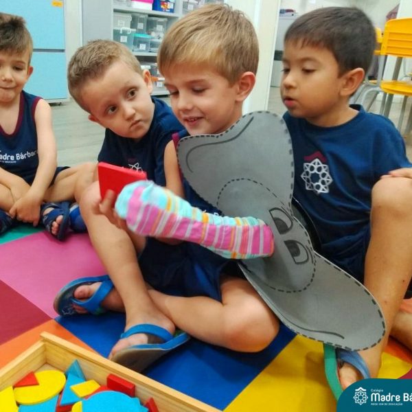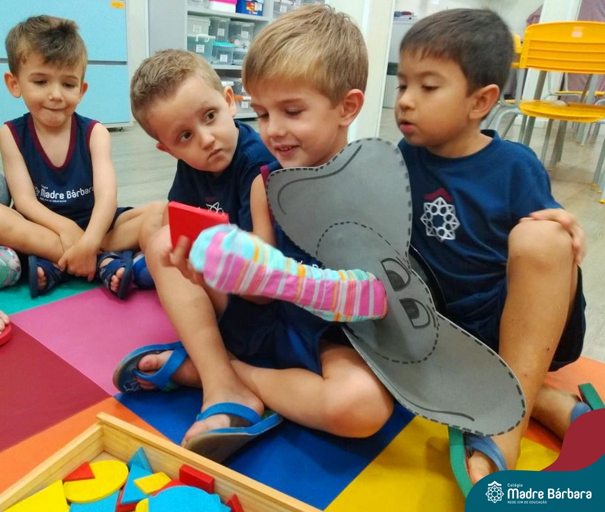 O Nível 4C, juntamente com as professoras Fabiele e Bruna, trabalhou o projeto de acolhida “Nenhum de nós é tão bom quanto todos nós juntos!” a partir da história “Elmer – O elefante xadrez” de David McKee. Com esta história, foram proporcionados momentos de reflexão sobre a importância da tolerância e respeito às diferenças. E também, foram oportunizados diversos momentos lúdicos com dinâmicas e brincadeiras de integração, bem como, com atividades pedagógicas.