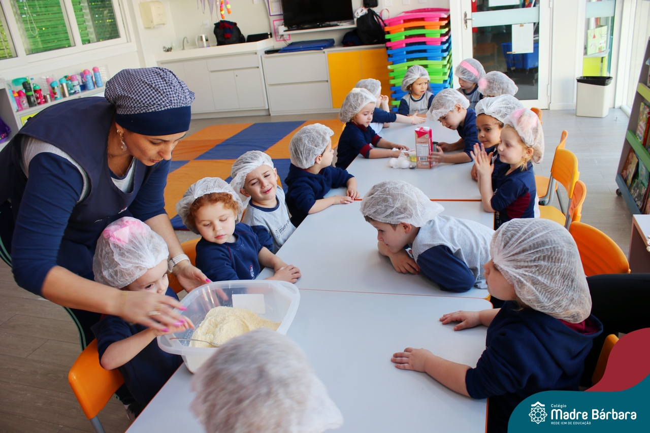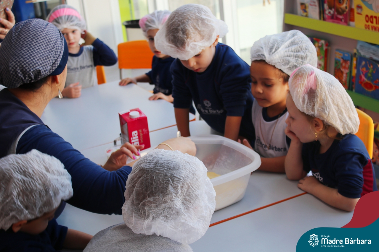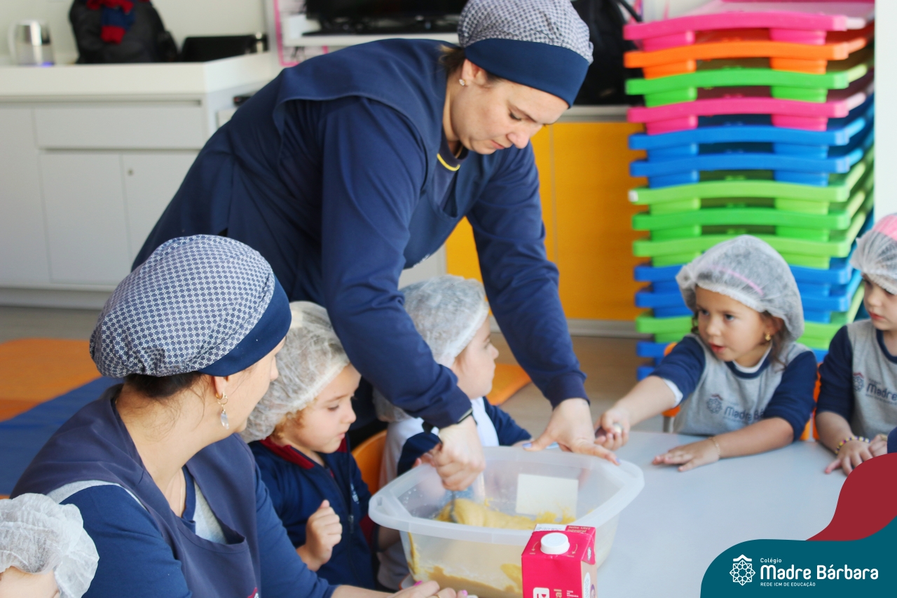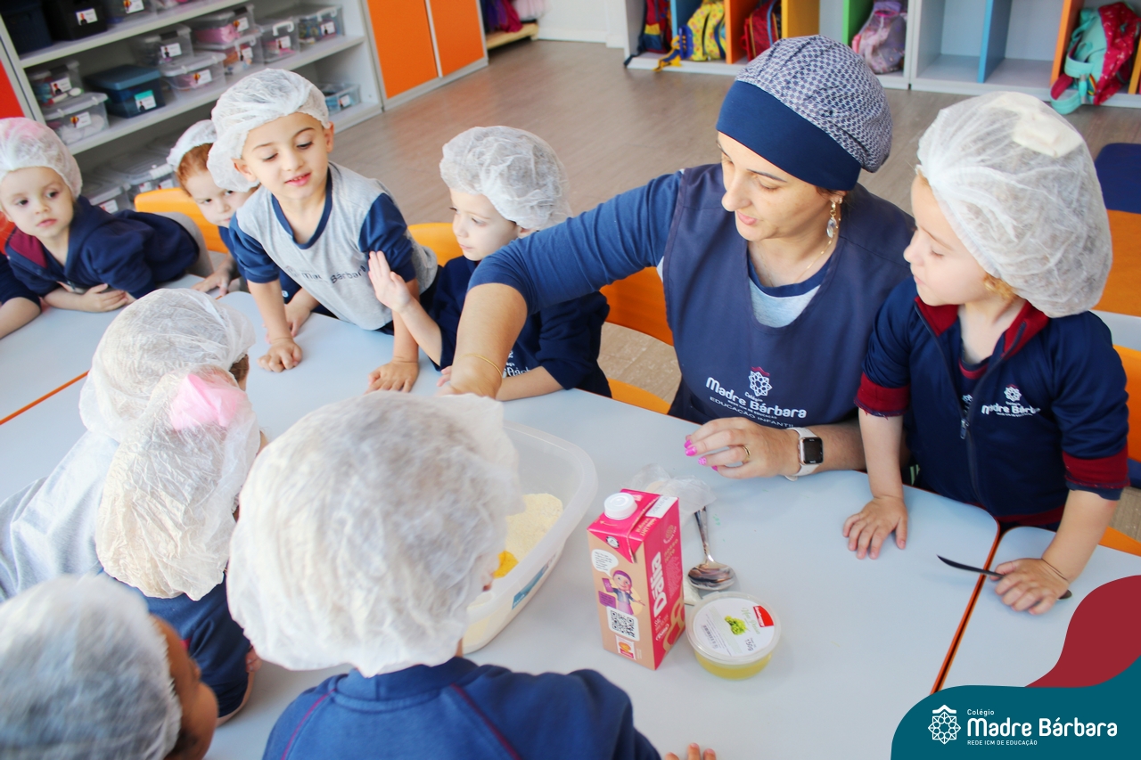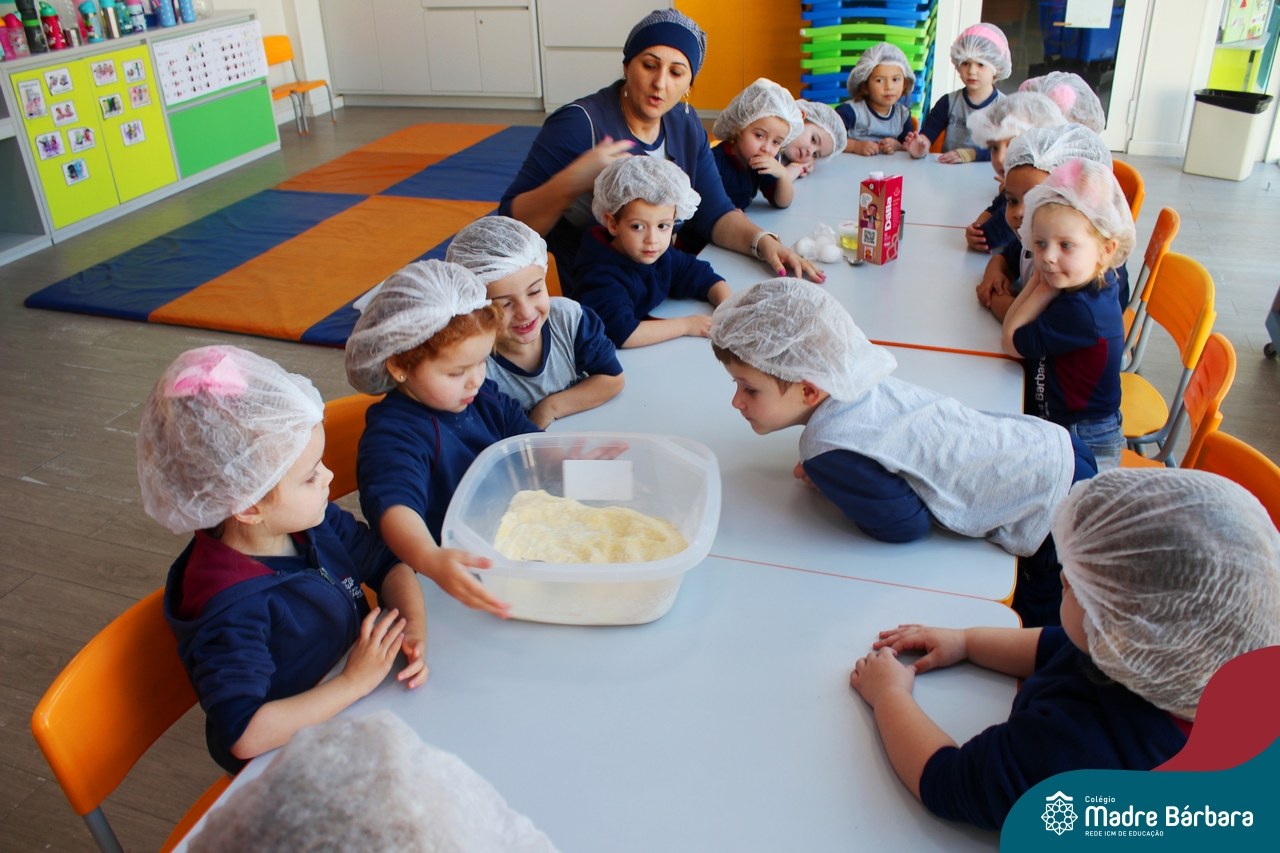 A turma do Nível 3B realizou um momento de culinária, fazendo um delicioso bolo de milho. Agregando ao projeto de arte e sensações, as crianças puderam explorar grãos, sentindo a textura, espessura, entre outras sensações. Eles colocaram a mão na massa! O bolo de milho também é uma comida típica das Festas Juninas, lembrando que no dia 10.06 será realizado o tradicional Arraiá do CMB. Venham todos participar!