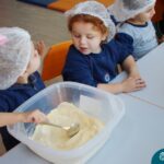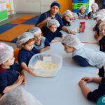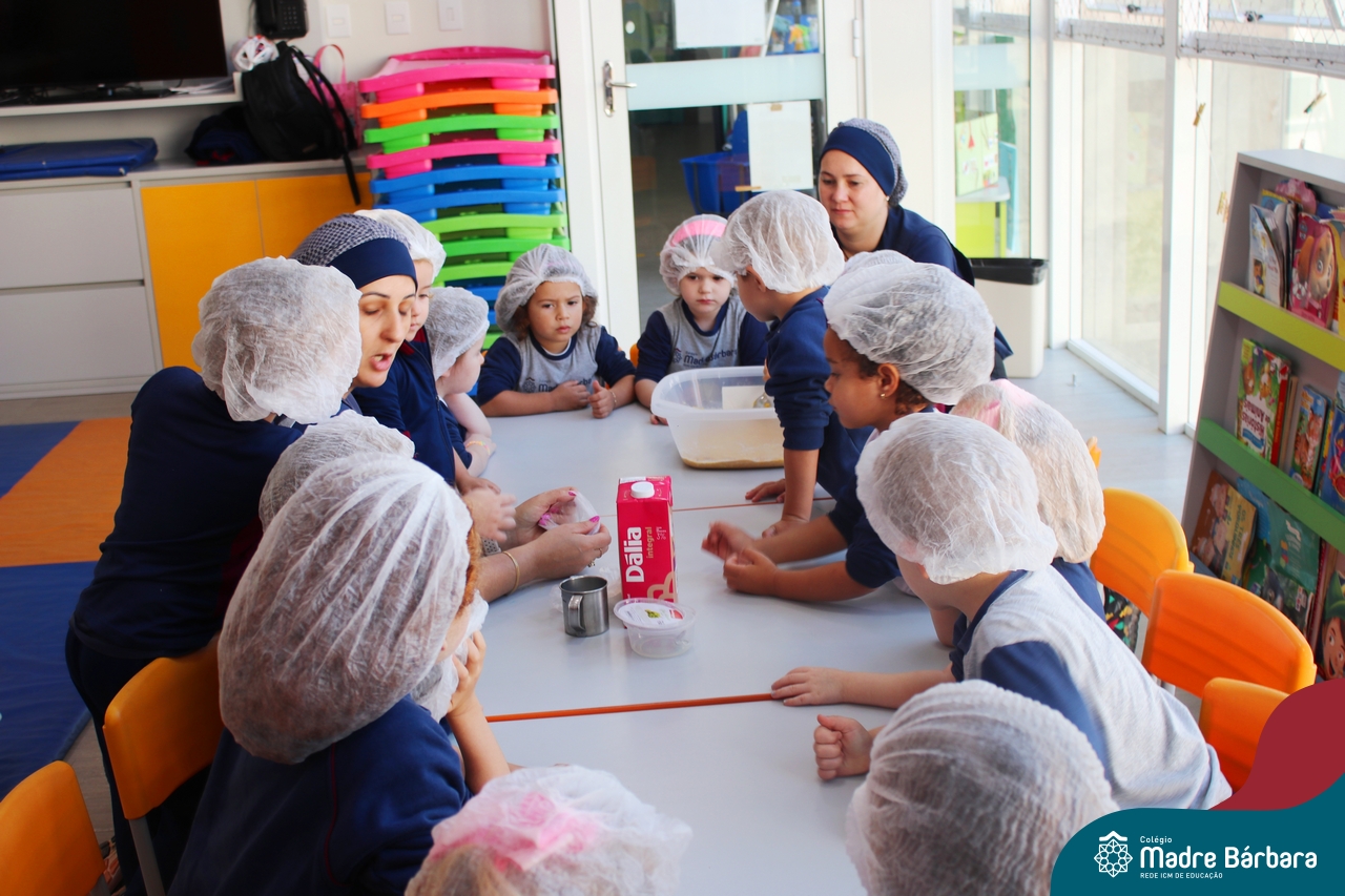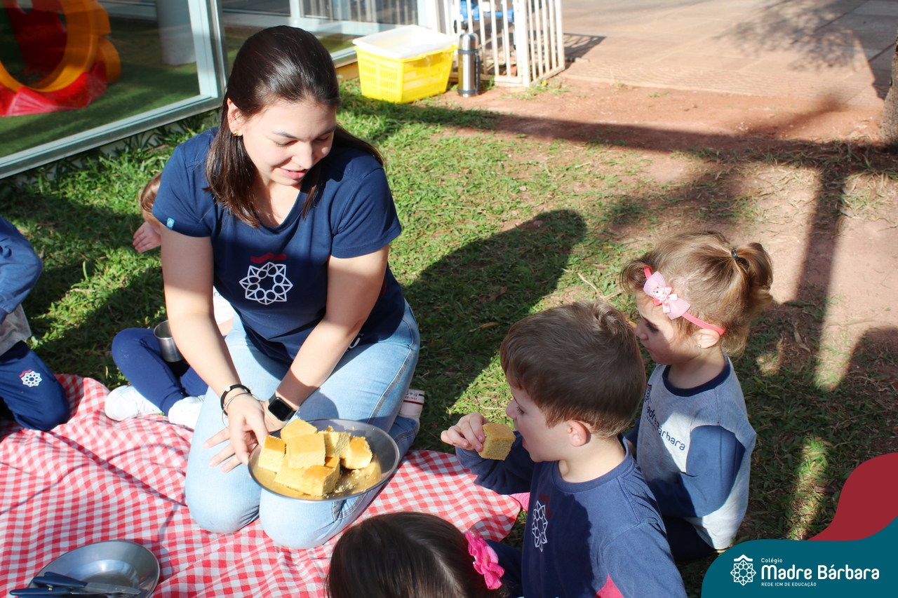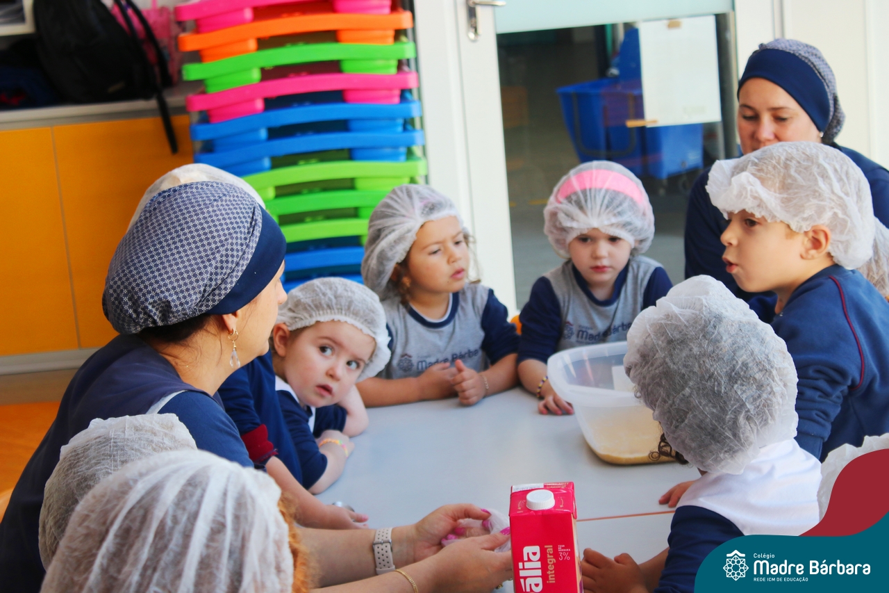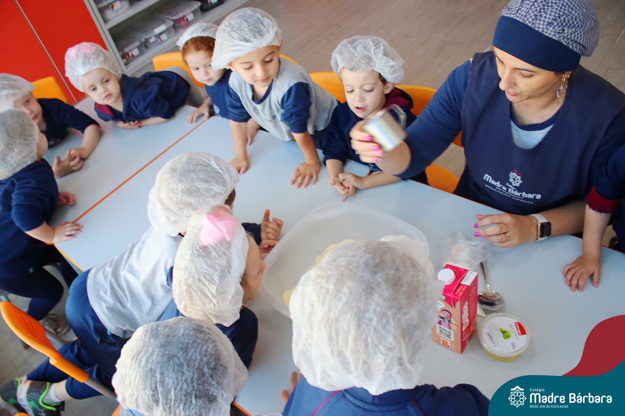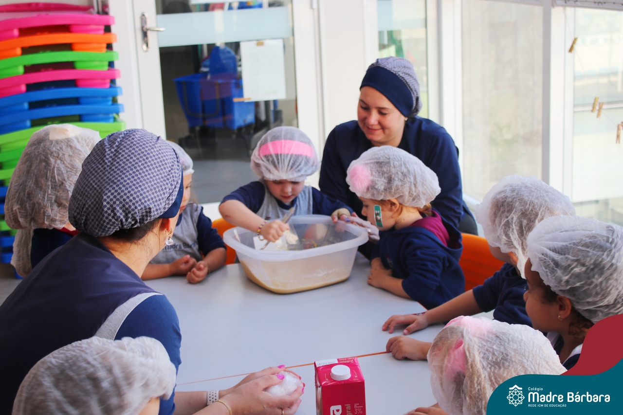 A turma do Nível 3B realizou um momento de culinária, fazendo um delicioso bolo de milho. Agregando ao projeto de arte e sensações, as crianças puderam explorar grãos, sentindo a textura, espessura, entre outras sensações. Eles colocaram a mão na massa! O bolo de milho também é uma comida típica das Festas Juninas, lembrando que no dia 10.06 será realizado o tradicional Arraiá do CMB. Venham todos participar!