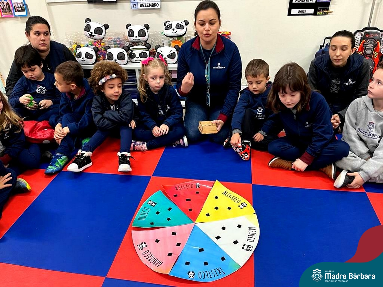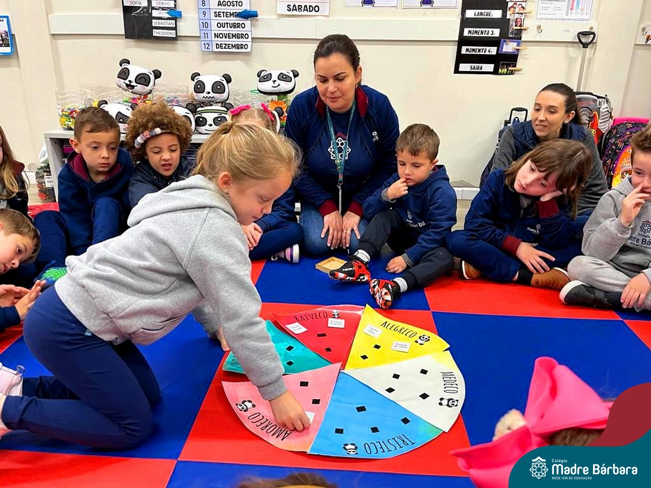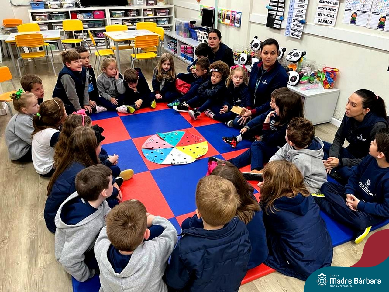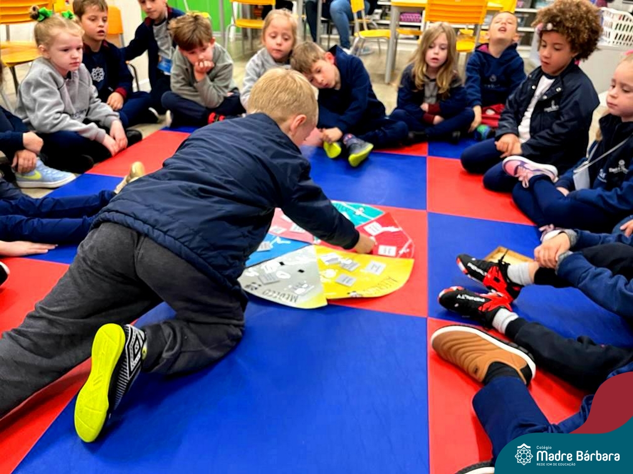 Na manhã desta quarta-feira (26.09), a orientadora educacional, Anice Nunes, realizou uma oficina de educação socioemocional na turma do N5A, com a professora Julie Reinheimer. A orientadora explorou uma atividade interativa, com a Turma dos Amorecos, intitulada pelas crianças de “Roleta das Emoções”. Foi trabalhada a identificação e as consequências de cada emoção, relacionando as emoções aos comportamentos e reações que cada um sente. Juntos, todos interagiram na dinâmica, com belíssimas reflexões e aprendizados. A atividade contempla uma das ações no projeto “Conhecendo as Emoções”, desenvolvido na turma pela educadora Julie.