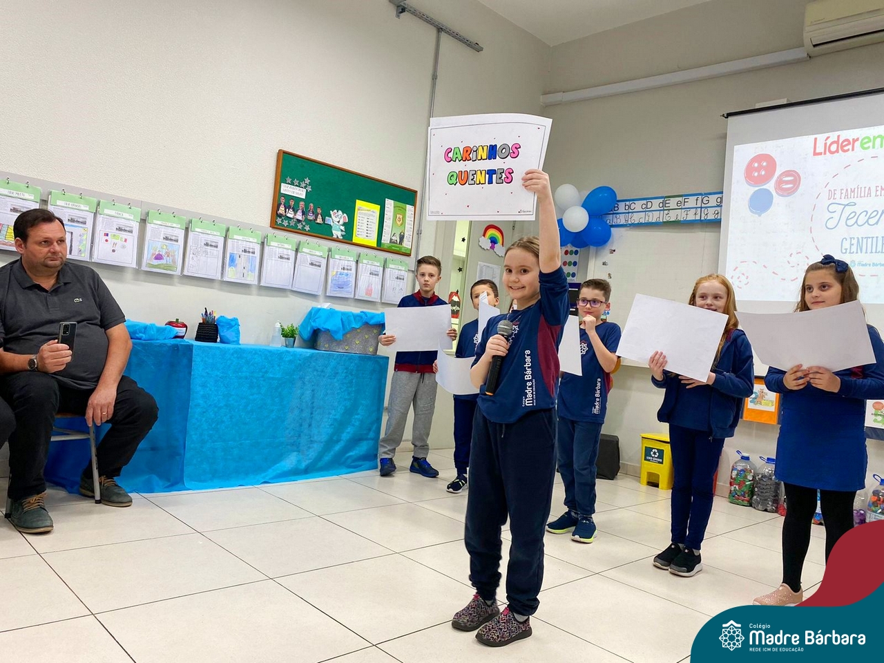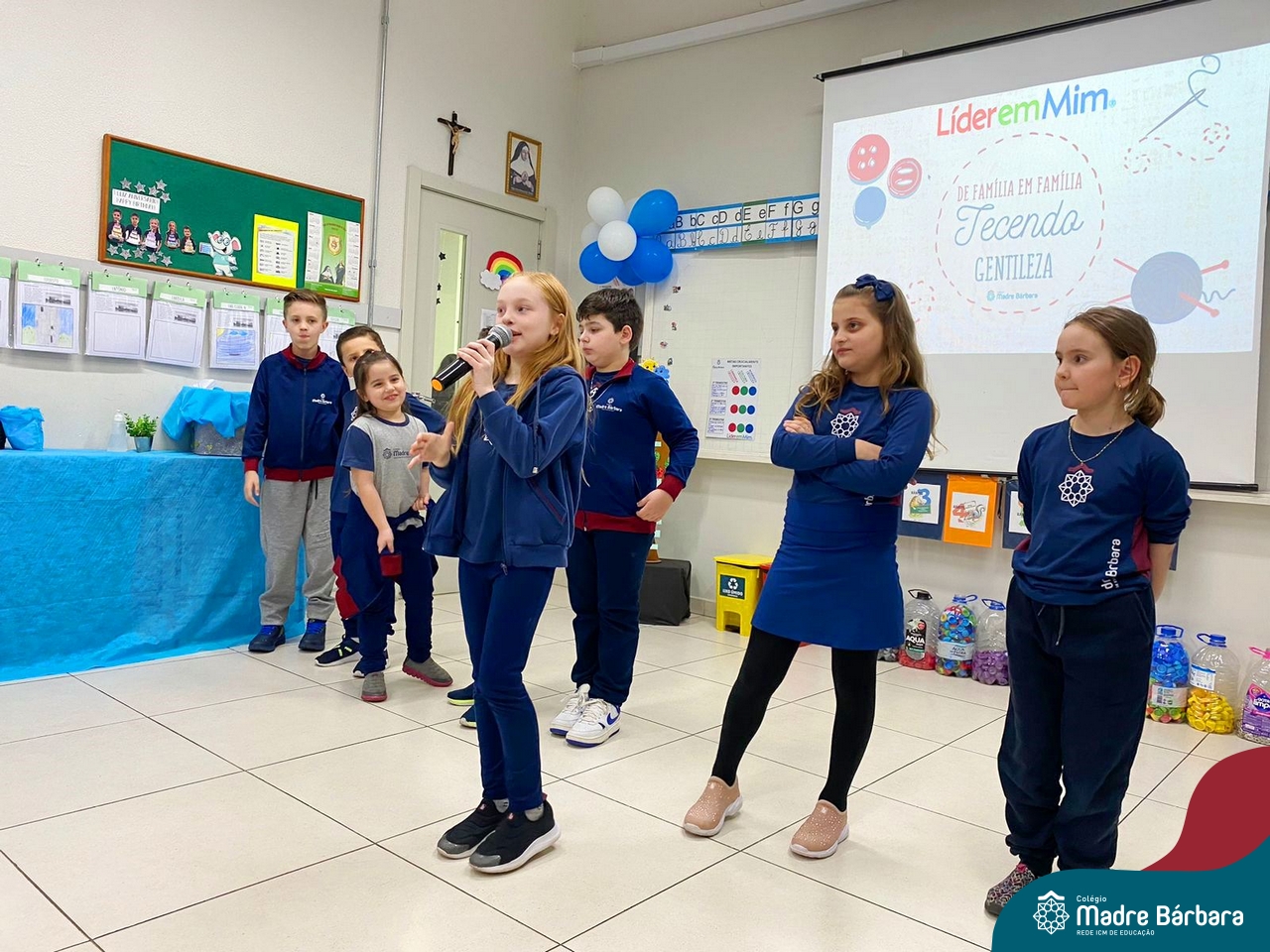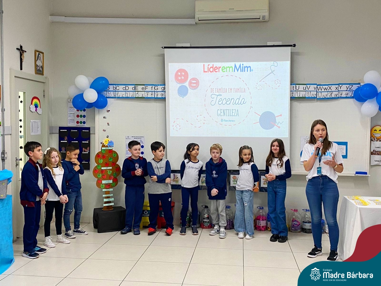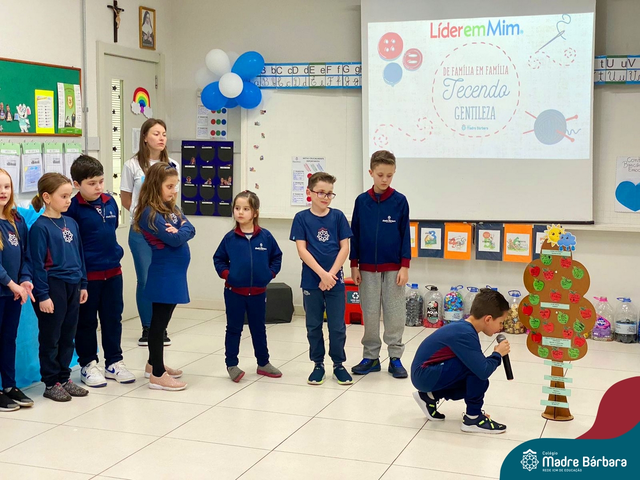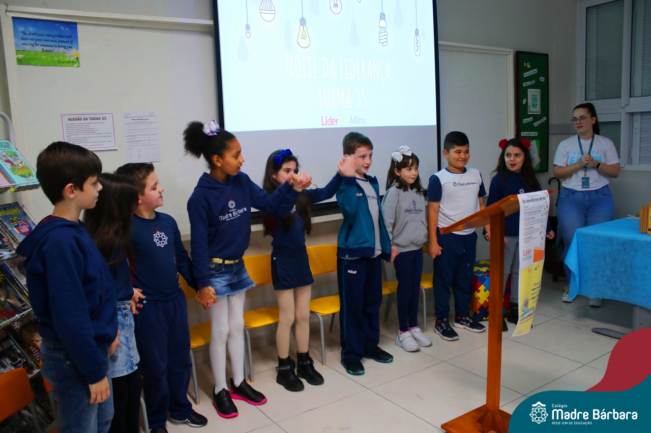 Nos dias 17, 19 e 23 de outubro, ocorreu a Noite da Liderança do Ensino Fundamental – Anos Iniciais, evento apresentado pelos próprios estudantes, inspirados nos 7 hábitos que norteiam o programa “O Líder em Mim”, implantado no Madre Bárbara – em 2017. Foi um modelo educacional que enfatiza a cultura da autonomia por meio de um eficaz processo de mudança comportamental. A Noite da Liderança, é um evento destinado a apresentar o programa e suas atividades, coordenado pelos próprios alunos, mostrando que “O Líder em Mim”, desperta nas crianças um dos principais objetivos do programa, a autonomia.