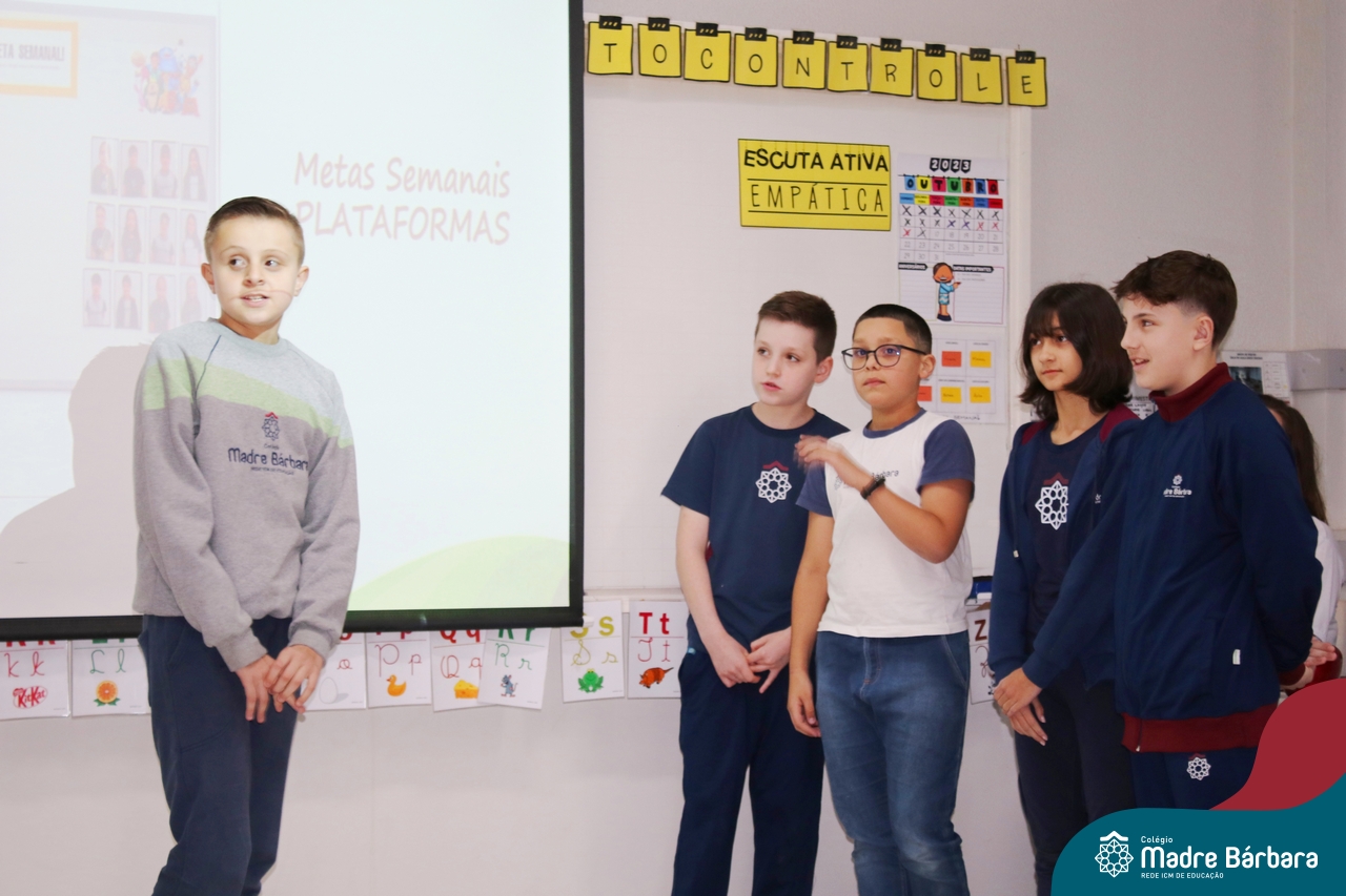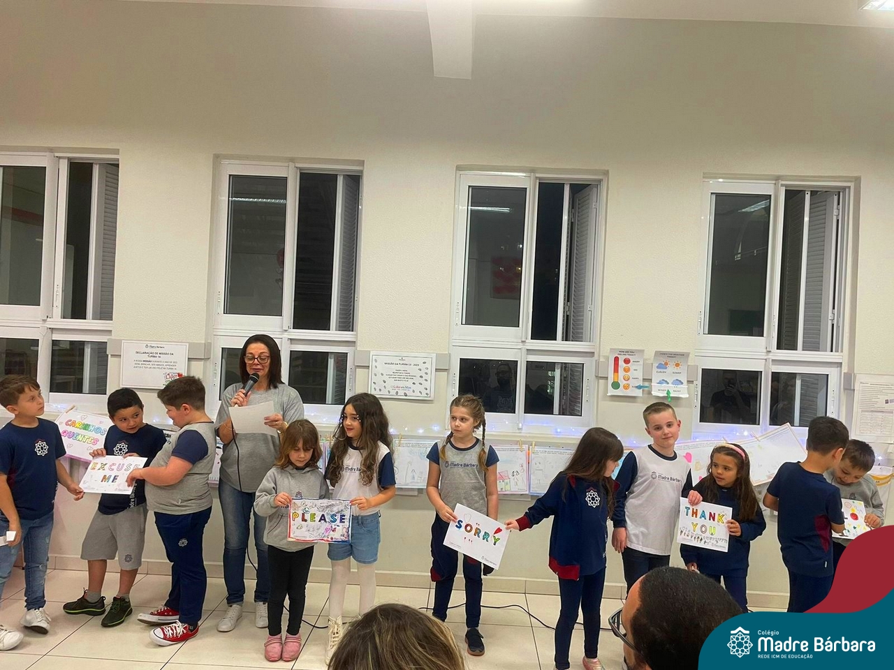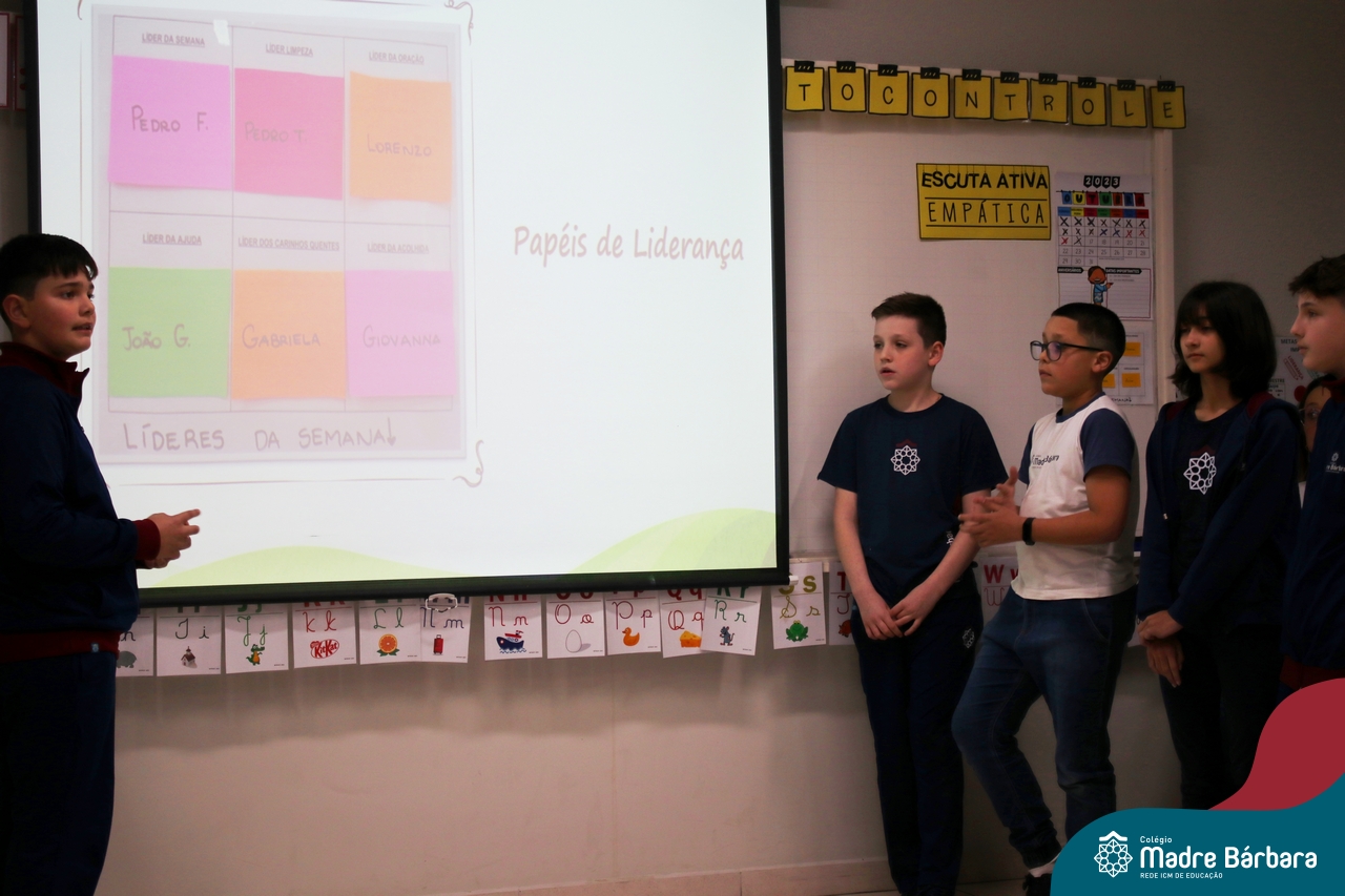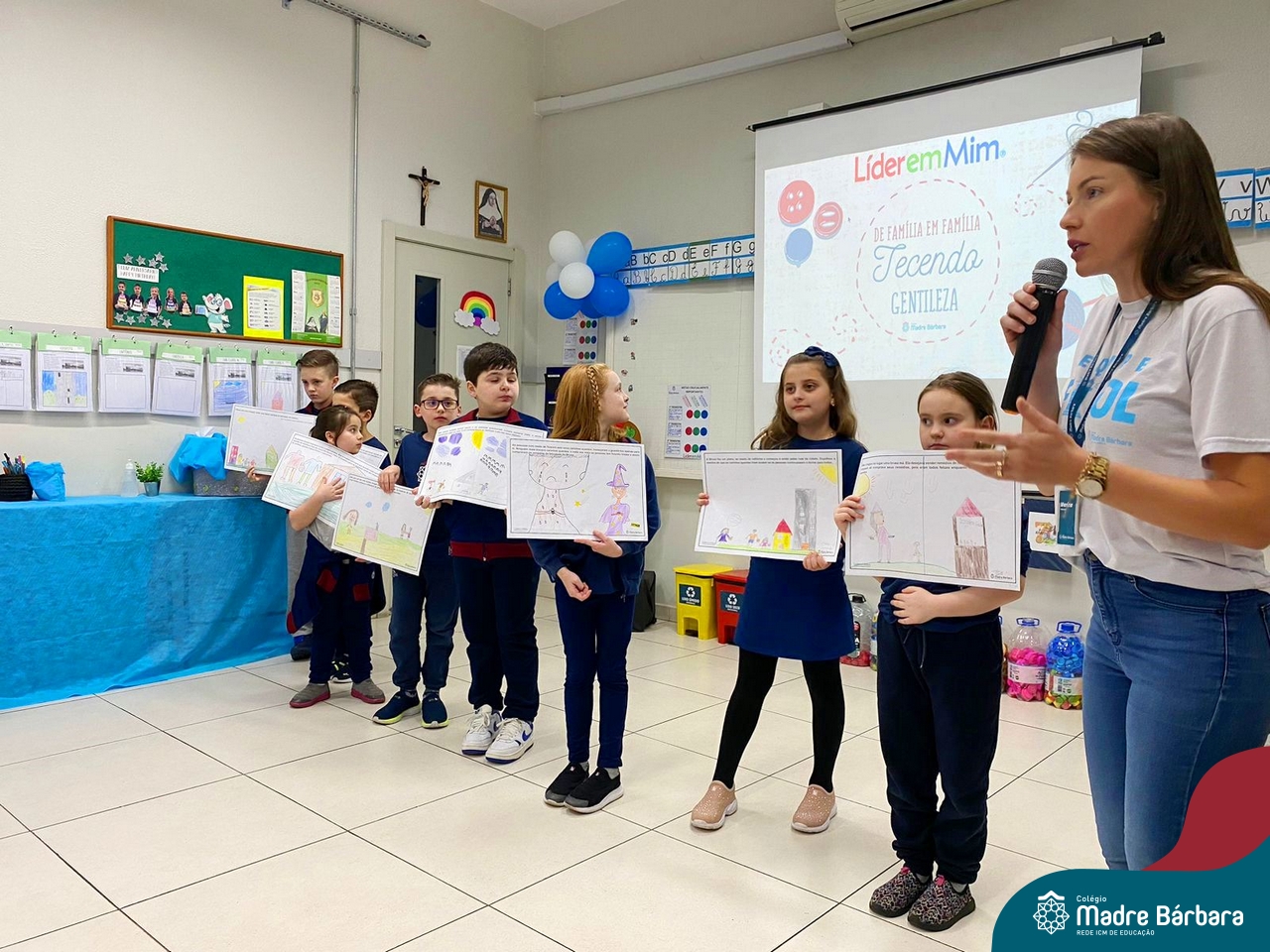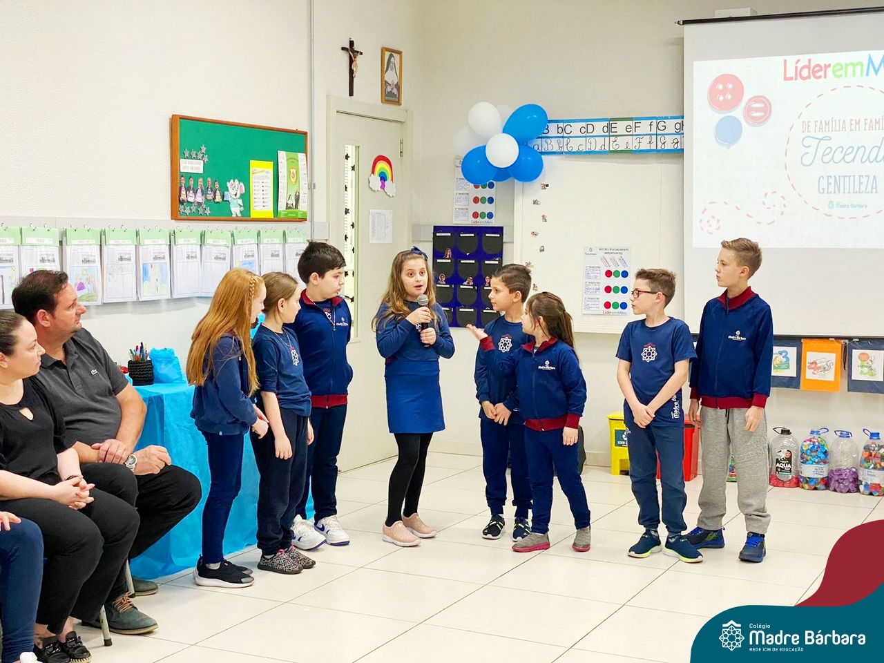 Nos dias 17, 19 e 23 de outubro, ocorreu a Noite da Liderança do Ensino Fundamental – Anos Iniciais, evento apresentado pelos próprios estudantes, inspirados nos 7 hábitos que norteiam o programa “O Líder em Mim”, implantado no Madre Bárbara – em 2017. Foi um modelo educacional que enfatiza a cultura da autonomia por meio de um eficaz processo de mudança comportamental. A Noite da Liderança, é um evento destinado a apresentar o programa e suas atividades, coordenado pelos próprios alunos, mostrando que “O Líder em Mim”, desperta nas crianças um dos principais objetivos do programa, a autonomia.