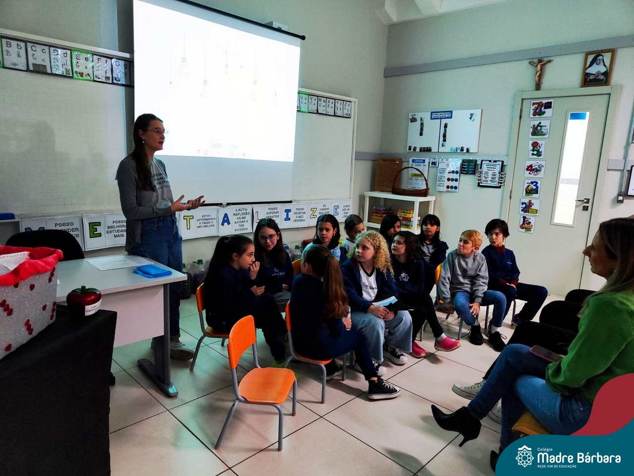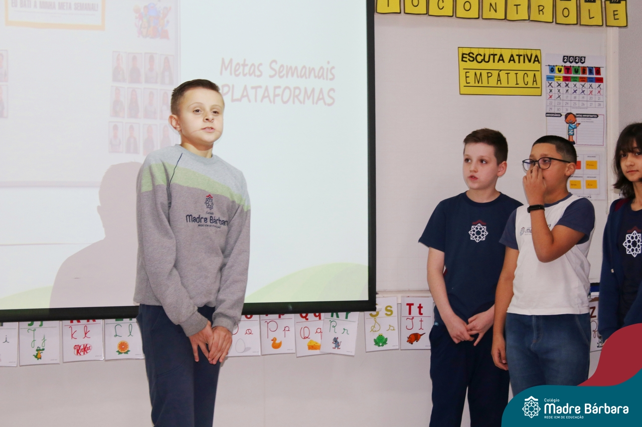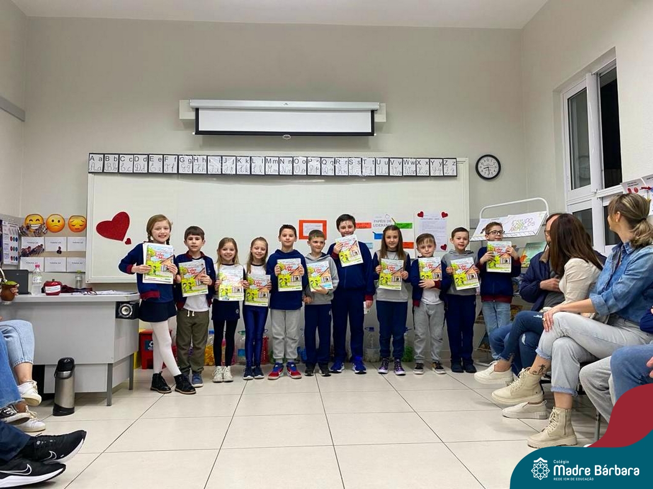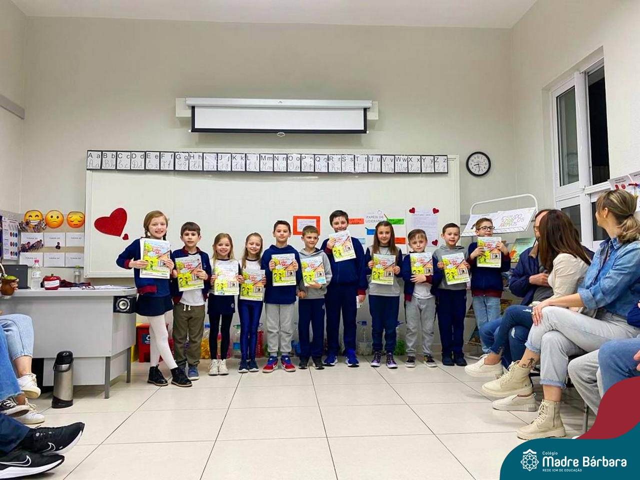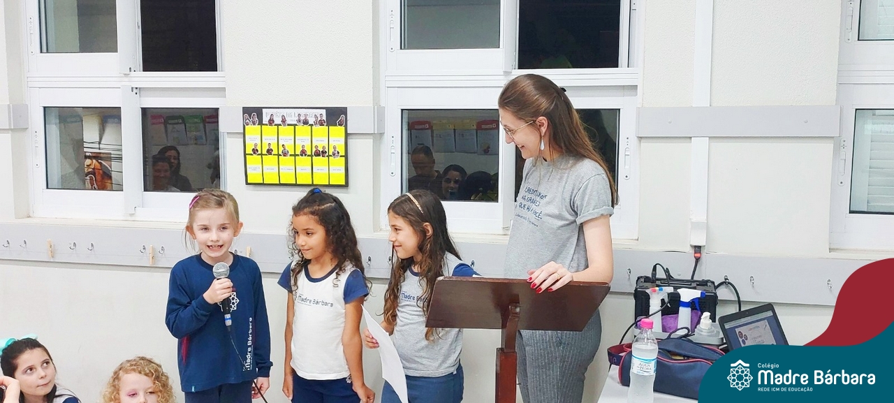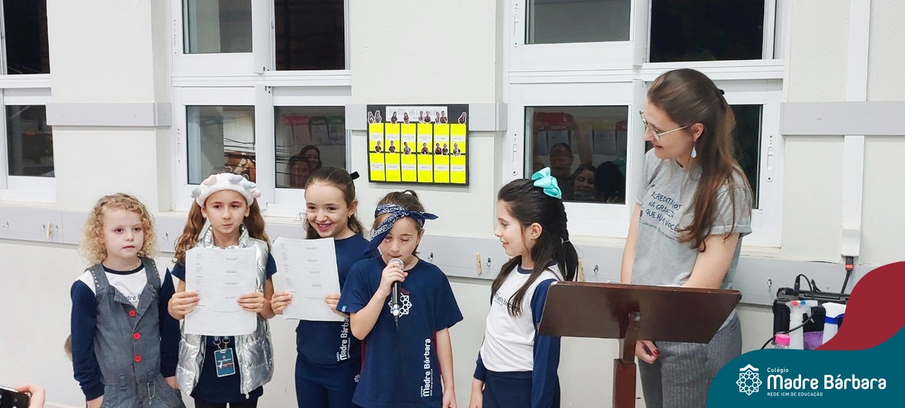 Nos dias 17, 19 e 23 de outubro, ocorreu a Noite da Liderança do Ensino Fundamental – Anos Iniciais, evento apresentado pelos próprios estudantes, inspirados nos 7 hábitos que norteiam o programa “O Líder em Mim”, implantado no Madre Bárbara – em 2017. Foi um modelo educacional que enfatiza a cultura da autonomia por meio de um eficaz processo de mudança comportamental. A Noite da Liderança, é um evento destinado a apresentar o programa e suas atividades, coordenado pelos próprios alunos, mostrando que “O Líder em Mim”, desperta nas crianças um dos principais objetivos do programa, a autonomia.