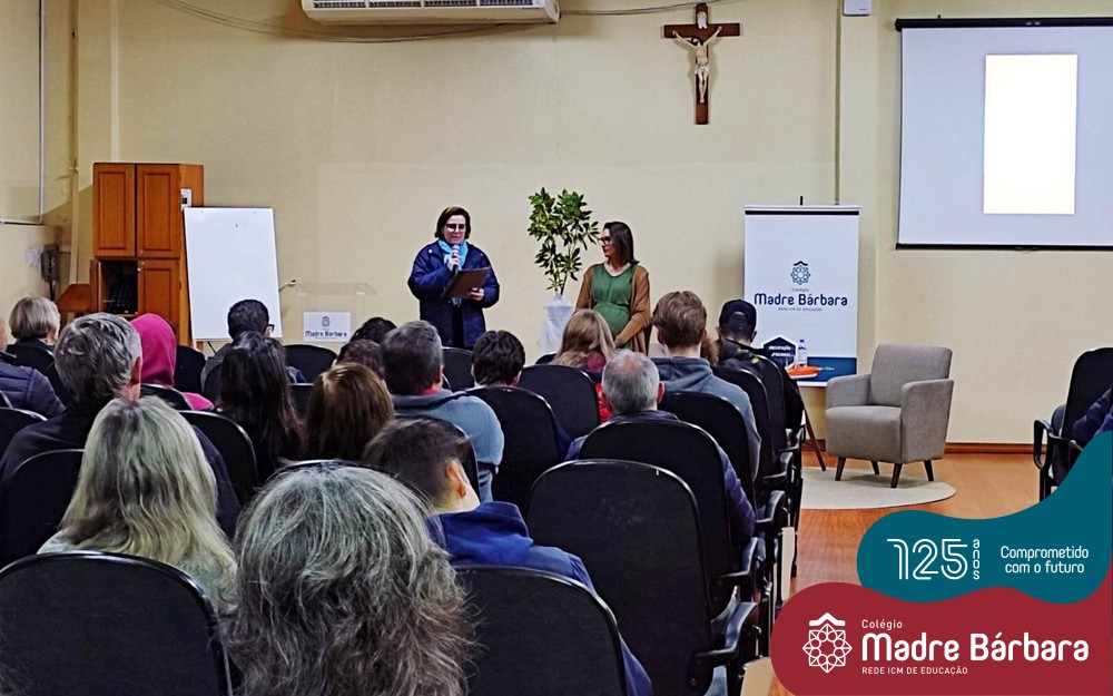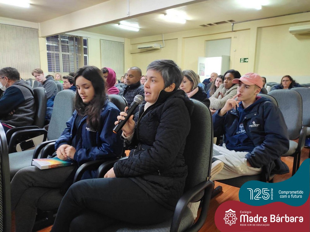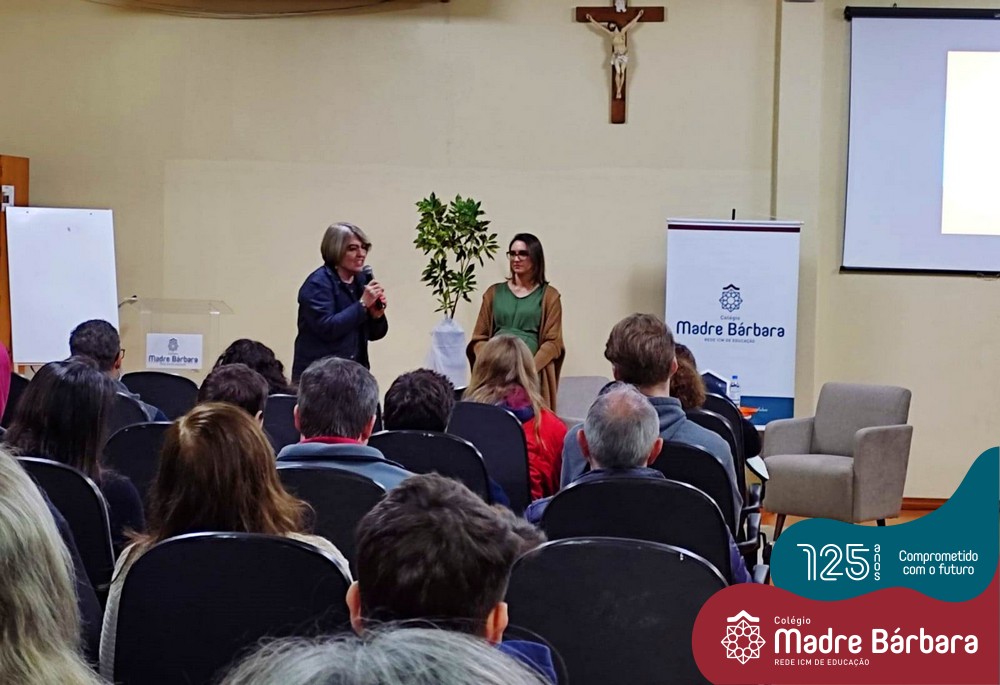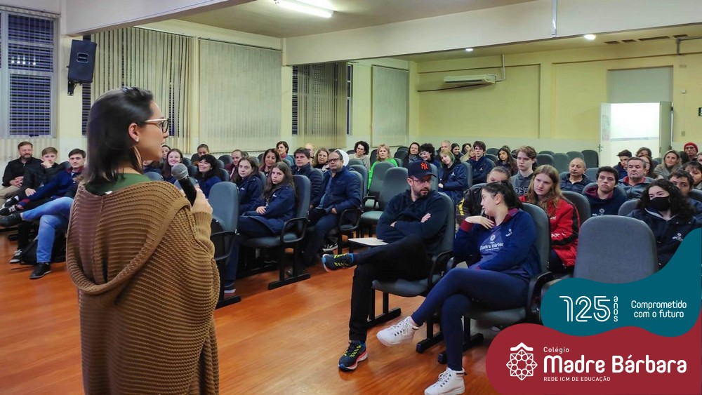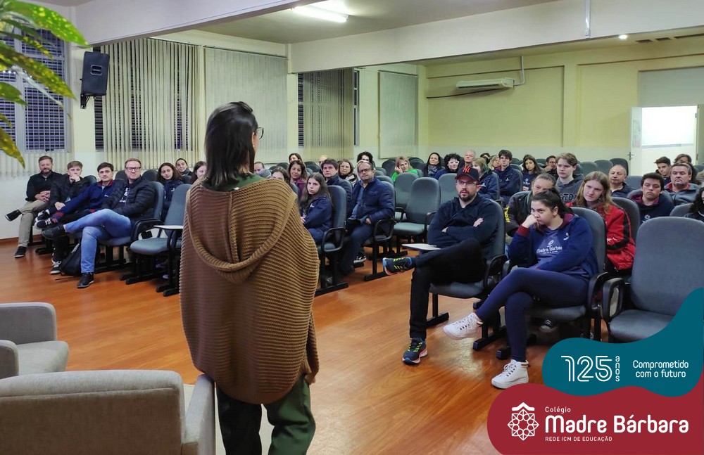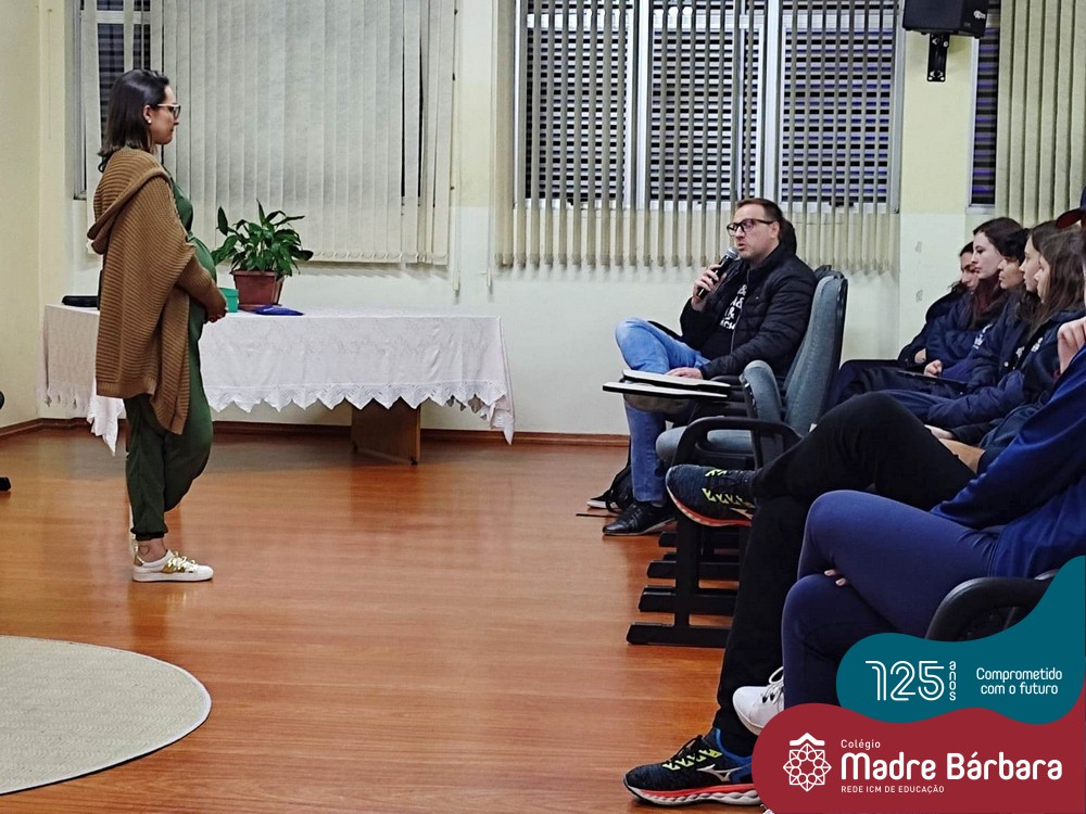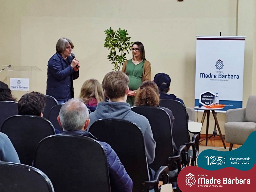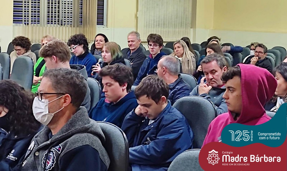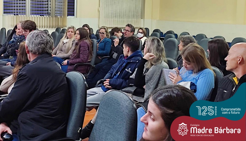 Na noite dessa segunda-feira (30.05) ocorreu um bate-papo entre pais e filhos do 3º ano  do Ensino Médio com a temática “Escolher me faz pensar” com a intermediação da psicóloga Maria Júlia Wagner, com a parceria da BIMachine. A profissional refletiu com o grupo sobre o processo de escolha profissional no entendimento de que faz parte de um projeto que implica pensar o futuro, construir um cenário de realizações de interesses e desejos. Um processo, onde o autoconhecimento se faz necessário, pois o ponto principal é escolher aquilo que te faz feliz. Foi uma noite de algumas trocas e interações importantes para os jovens e famílias.