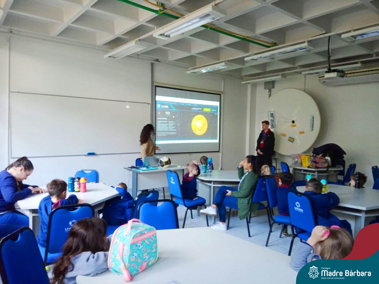 Na manhã de quarta feira (30.05), o Turno Extracurricular, Níveis 4 e 5, juntamente com os Anos Iniciais realizaram uma visita até o Planetário da Univates, onde além de incríveis trocas de conhecimentos, vivenciaram lindas experiências com cometas, estrelas e planetas no lindo universo.