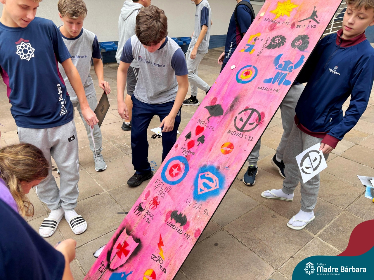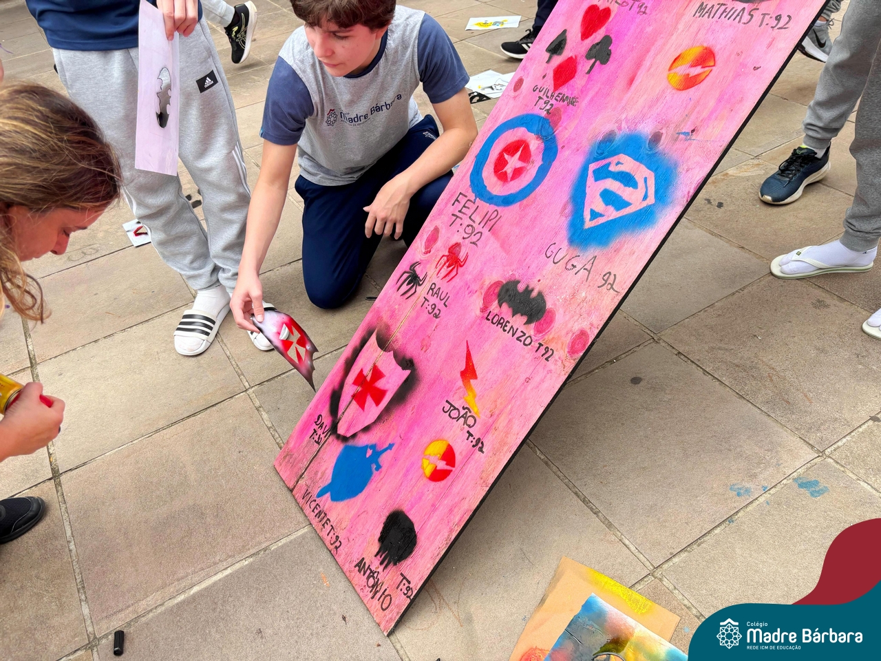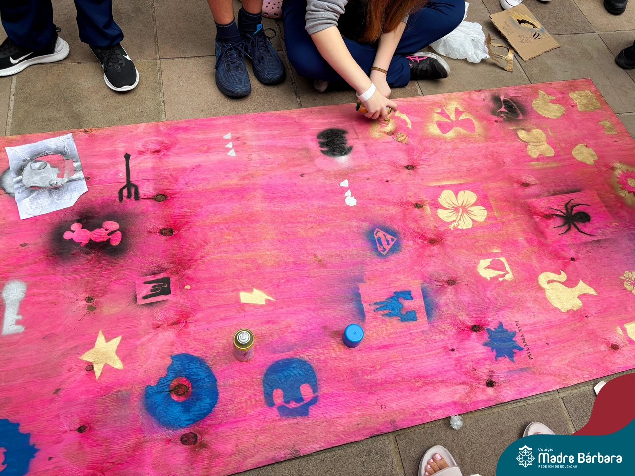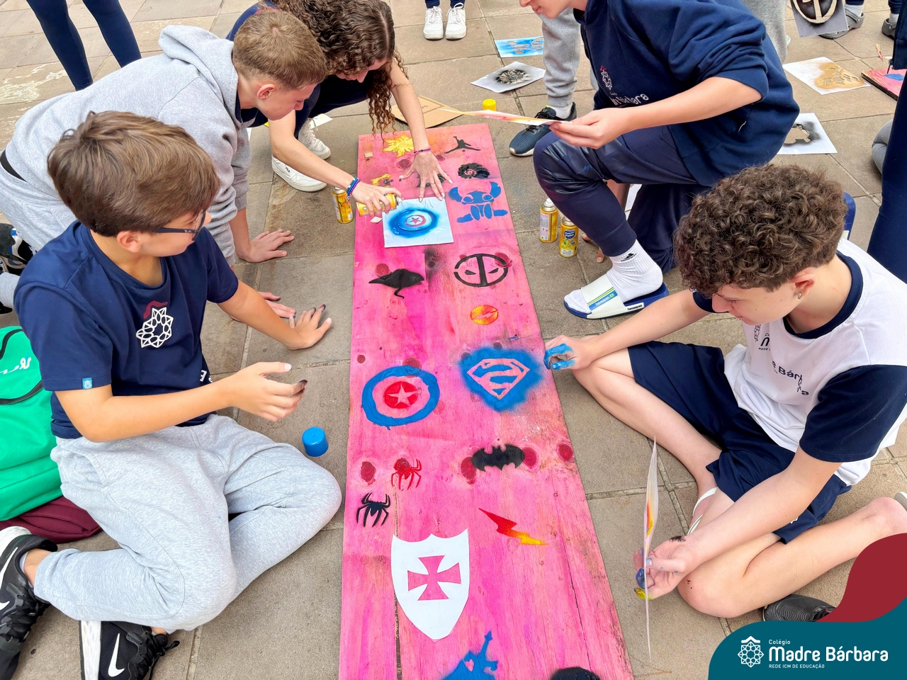 Nesta quinta-feira (10.04) os estudantes das turmas 91 e 92 se transformou em uma equipe de artistas urbanos, usando a técnica estêncil para criar obras de arte incríveis. Cada um escolheu uma imagem que queria representar, desde animais até super-heróis, e criou um estêncil. Com spray pintaram por cima do estêncil e as imagens apareceram como se fossem pintadas por artistas profissionais. Foi incrível ver como a técnica estêncil pode ser usada para criar obras de arte tão diferentes e criativas.