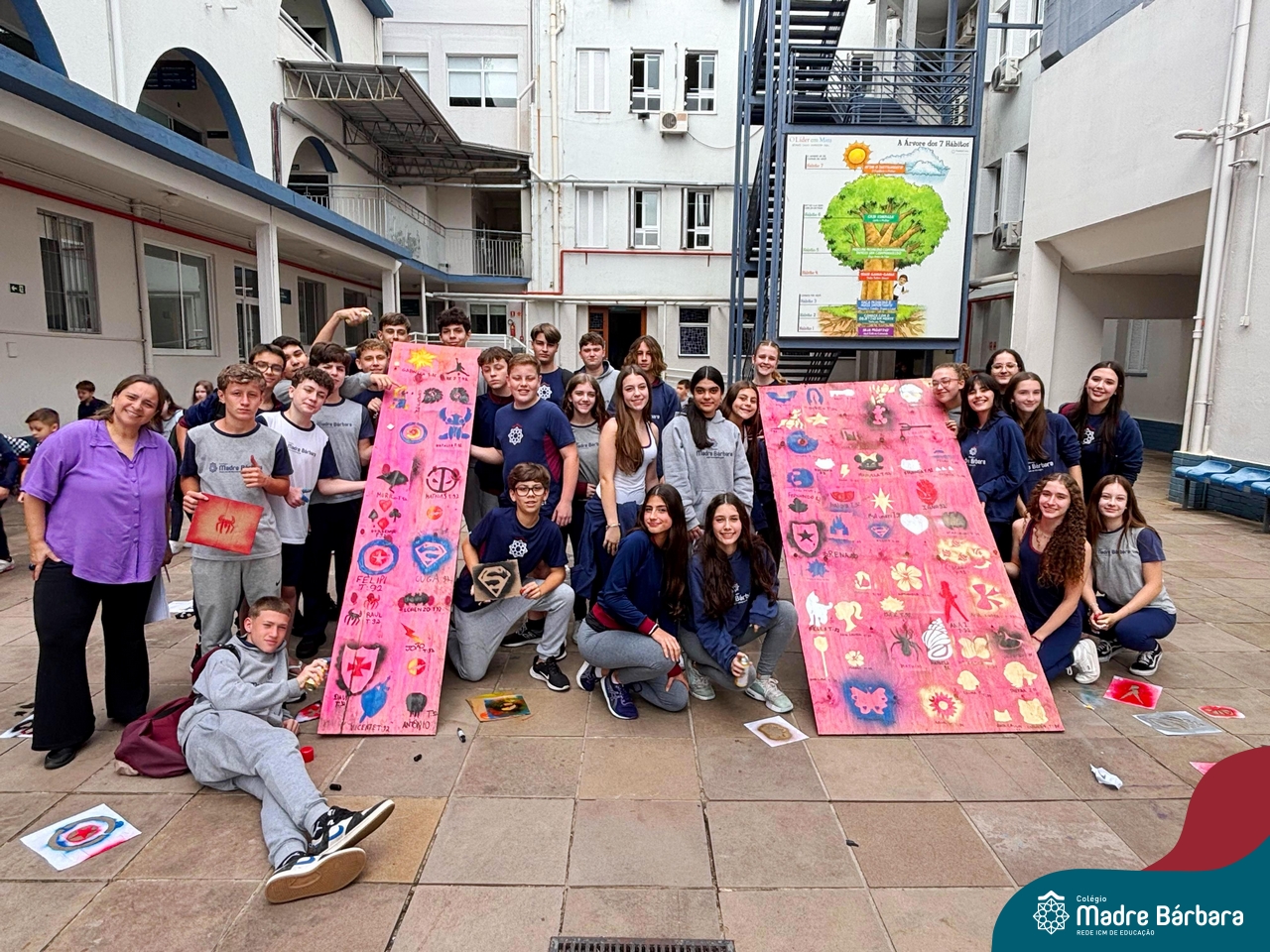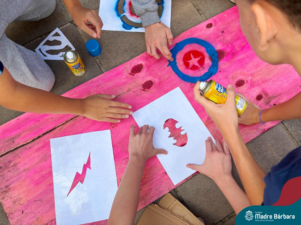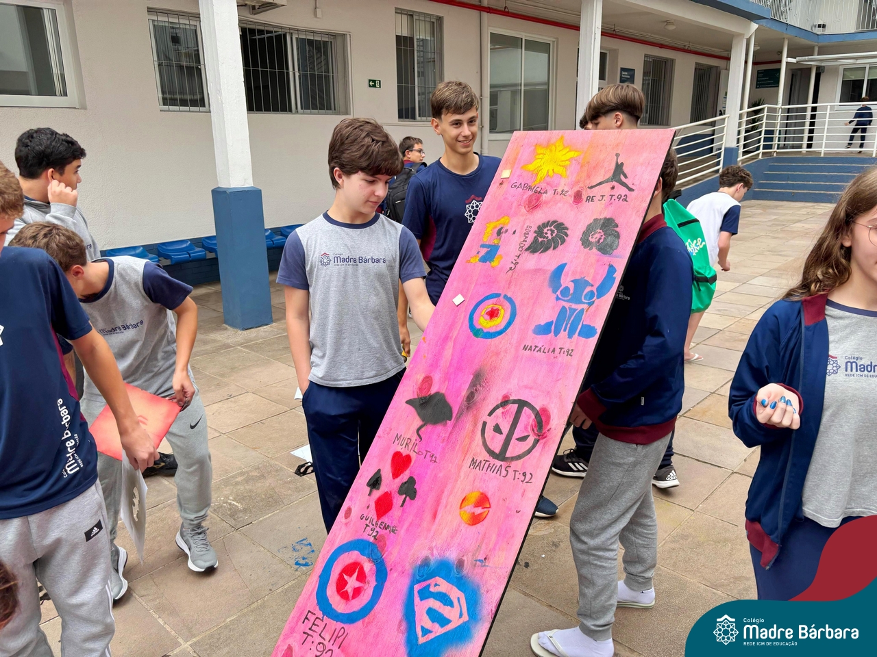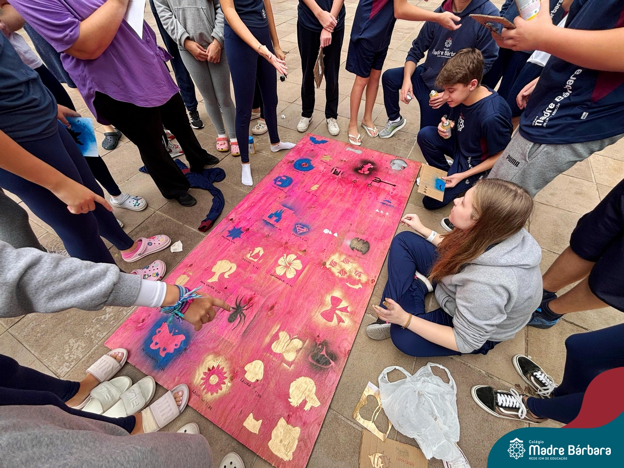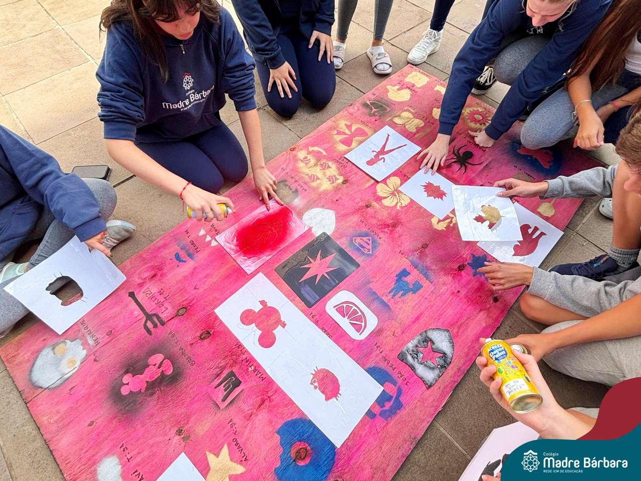 Nesta quinta-feira (10.04) os estudantes das turmas 91 e 92 se transformou em uma equipe de artistas urbanos, usando a técnica estêncil para criar obras de arte incríveis. Cada um escolheu uma imagem que queria representar, desde animais até super-heróis, e criou um estêncil. Com spray pintaram por cima do estêncil e as imagens apareceram como se fossem pintadas por artistas profissionais. Foi incrível ver como a técnica estêncil pode ser usada para criar obras de arte tão diferentes e criativas.