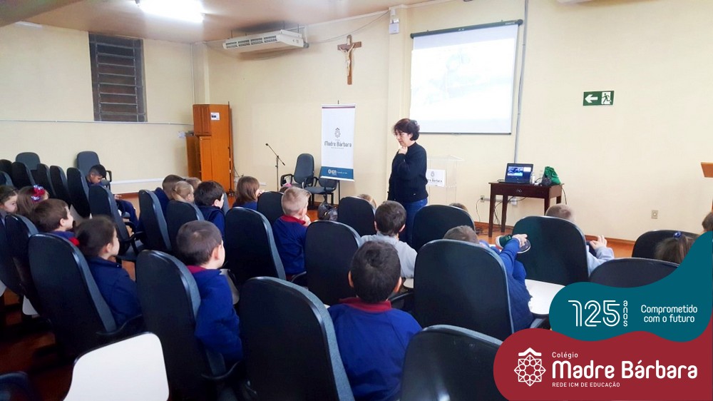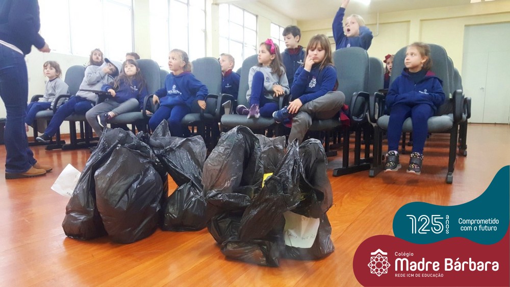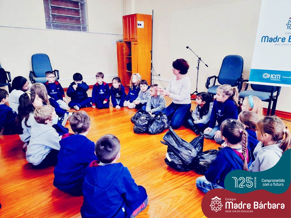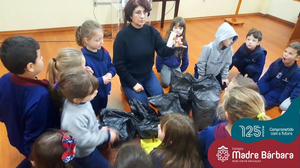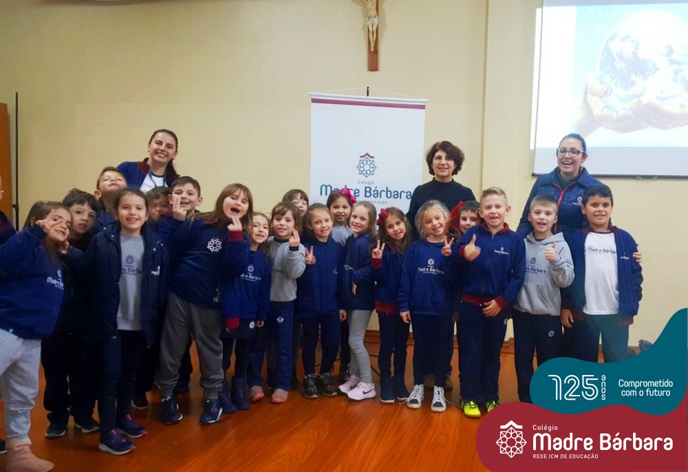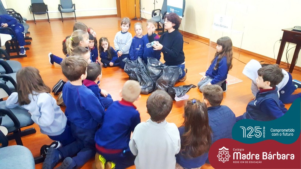 Na última sexta-feira dia 08.07, as turmas dos Primeiros Anos do Colégio Madre Bárbara – Rede ICM receberam uma visita muito especial da professora Elisete Maria de Freitas para uma palestra sobre “O Meio Ambiente e sustentabilidade”. A temática está sendo estudada e explorada pelas turmas 11, 12, 13, 14 e 15 para o projeto do Mostra Científico-Pedagógica. Nesse dia a palestrante abordou de uma forma muito interessante as questões dos resíduos: separação correta, redução, reciclagem e reaproveitamento para que as crianças de forma consciente possam melhorar suas atitudes e colocar em prática os ensinamentos recebidos. As crianças puderam também analisar os lixos produzidos em uma semana por cada turma, fazendo uma reflexão sobre as nossas ações. Foi um dia de muito aprendizado e reflexão, um agradecimento especial a professora Elisete que faz a diferença no nosso planeta divulgando e ajudando a melhorar o mundo.