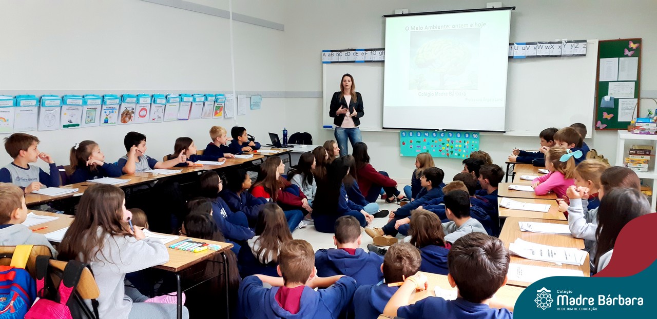 Na quarta-feira, 23.10, a turma 21 aprendeu sobre a relação entre o meio ambiente ontem e hoje com a professora de ciências biológicas Ângela Schorr Lenz que, com muito dinamismo, envolveu os alunos em uma incrível aula sobre as modificações do tempo sob a natureza a 50 anos atrás e o atual ano de 2019, fazendo links e reflexões sobre: as nossas atitudes com o meio ambiente, se estamos reduzindo, reutilizando, reciclando, economizando a água, atentos à erosão, ao desmatamento, aos poluentes que cada vez mais afetam a camada de ozônio, as notícias sobre o vazamento de petróleo no Nordeste, maus trato aos animais e por fim como está o ambiente no meu corpo, onde todos refletiram se estão dormindo o suficiente, se alimentando corretamente e fazendo exercícios físicos.