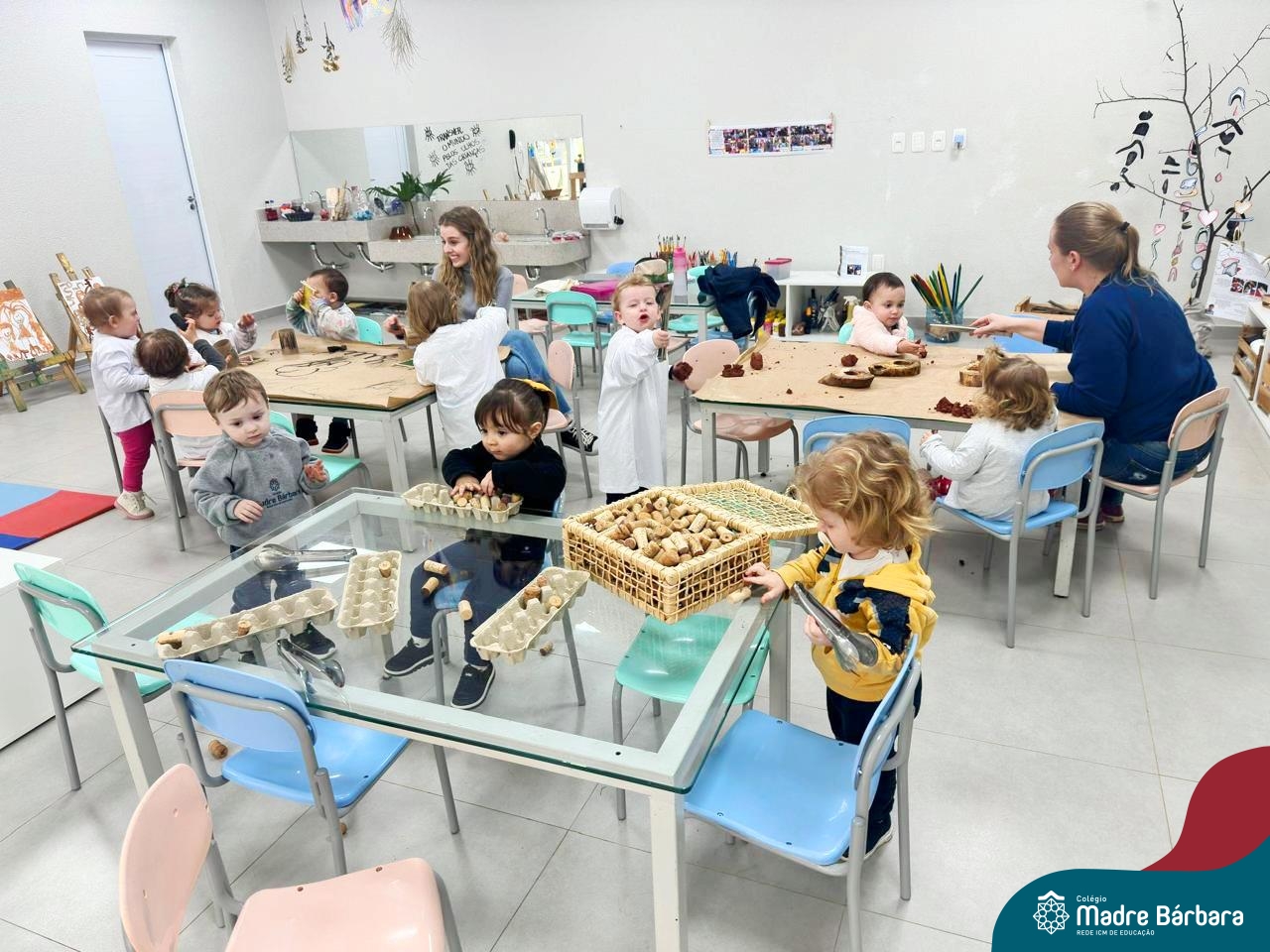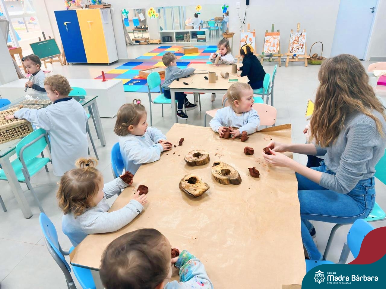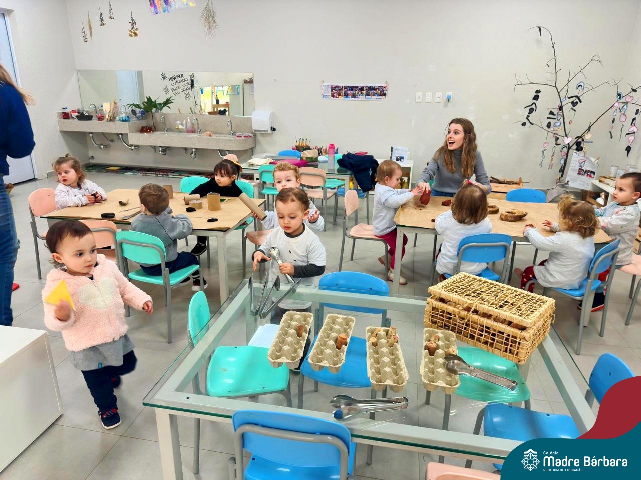As crianças do Nível 1D (tarde) juntamente com as professoras Joana e Luana e a Atelierista Camila, participaram de um momento lindo na tarde de quinta-feira (29.08). Visitaram o Ateliê para vivenciar “as estações de explorações”, uma proposta dentro do Projeto “O mundo para explorar, criar e sentir”. Através dessa vivência foi possível desenvolver muitas habilidades como a coordenação (pegar, soltar, modelar) criatividade, envolvimento, socialização e imaginação.