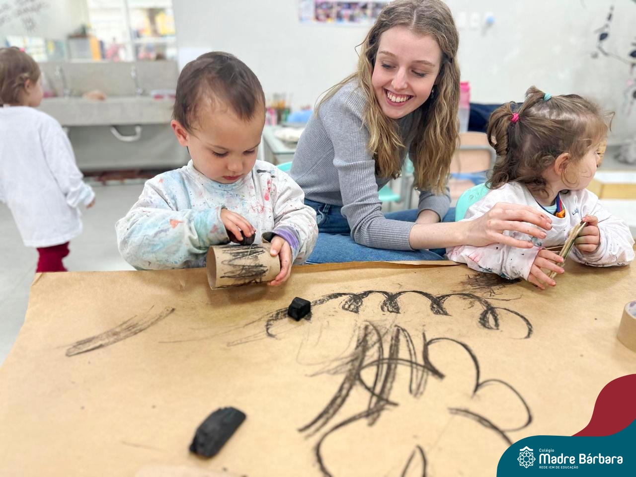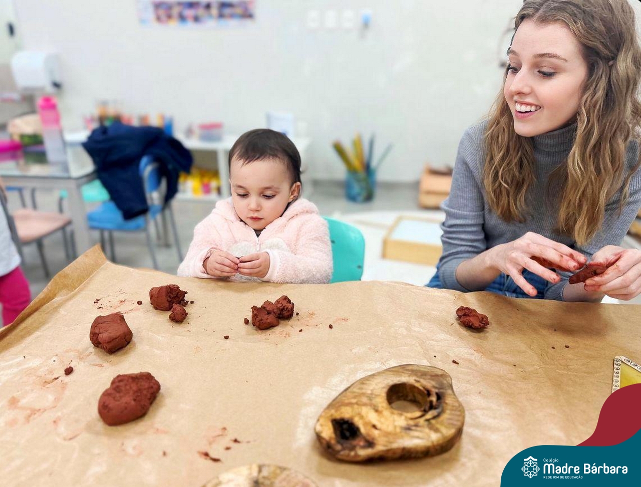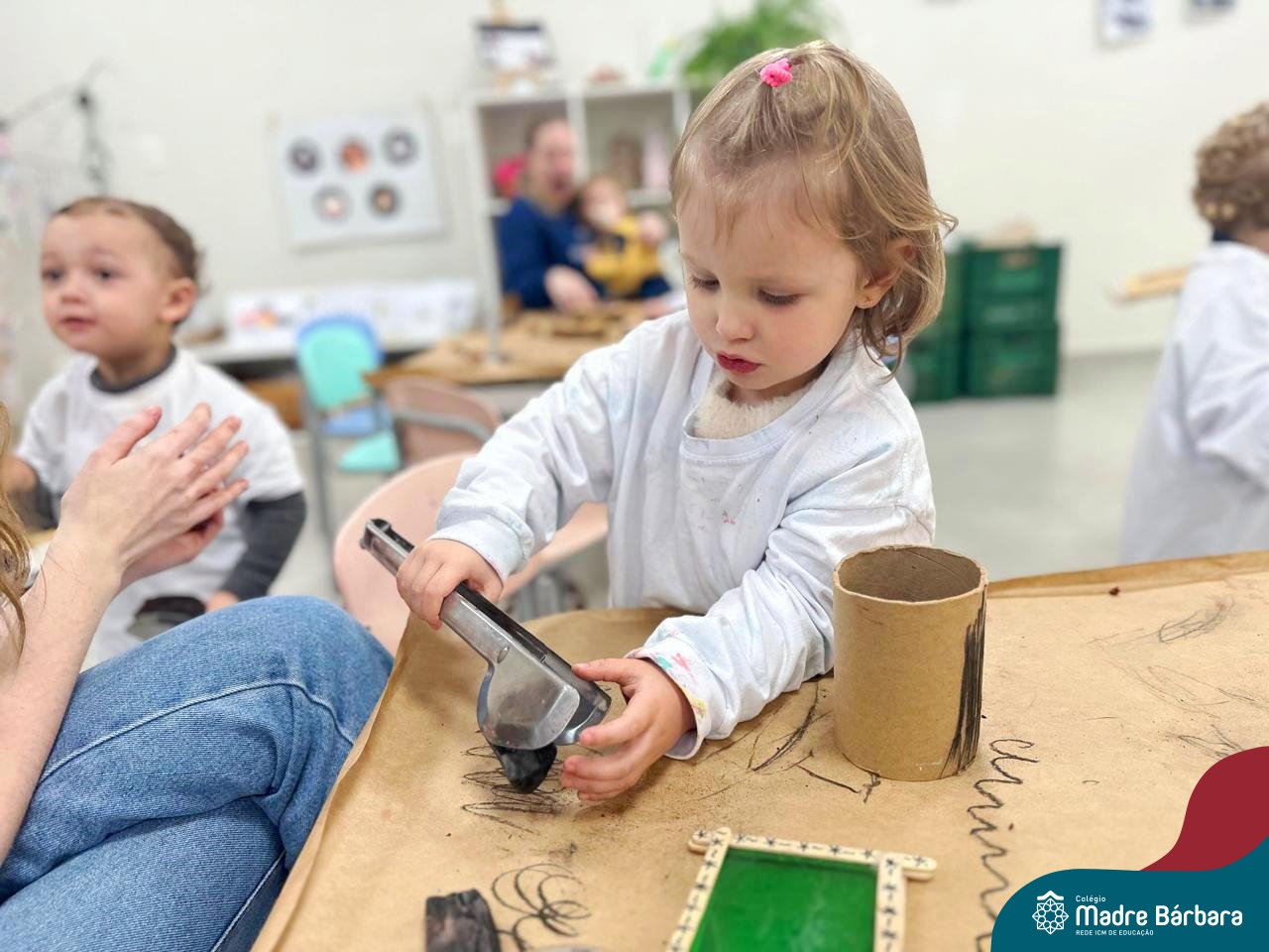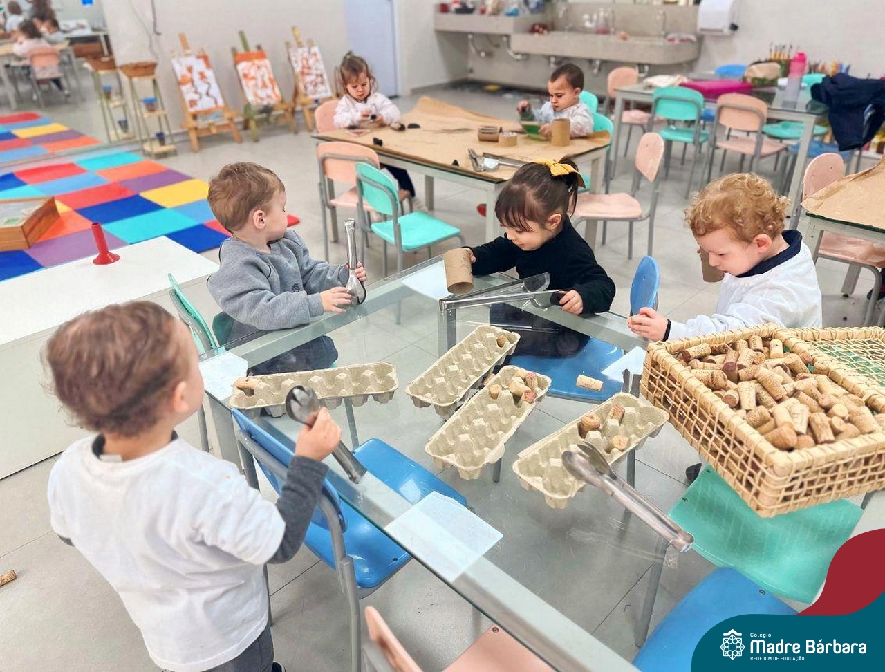 As crianças do Nível 1D (tarde) juntamente com as professoras Joana e Luana e a Atelierista Camila, participaram de um momento lindo na tarde de quinta-feira (29.08). Visitaram o Ateliê para vivenciar “as estações de explorações”, uma proposta dentro do Projeto “O mundo para explorar, criar e sentir”. Através dessa vivência foi possível desenvolver muitas habilidades como a coordenação (pegar, soltar, modelar) criatividade, envolvimento, socialização e imaginação.