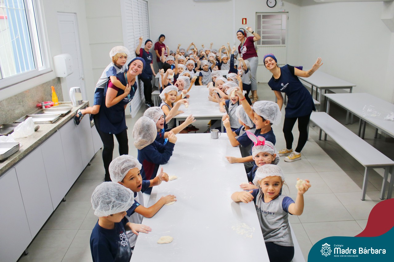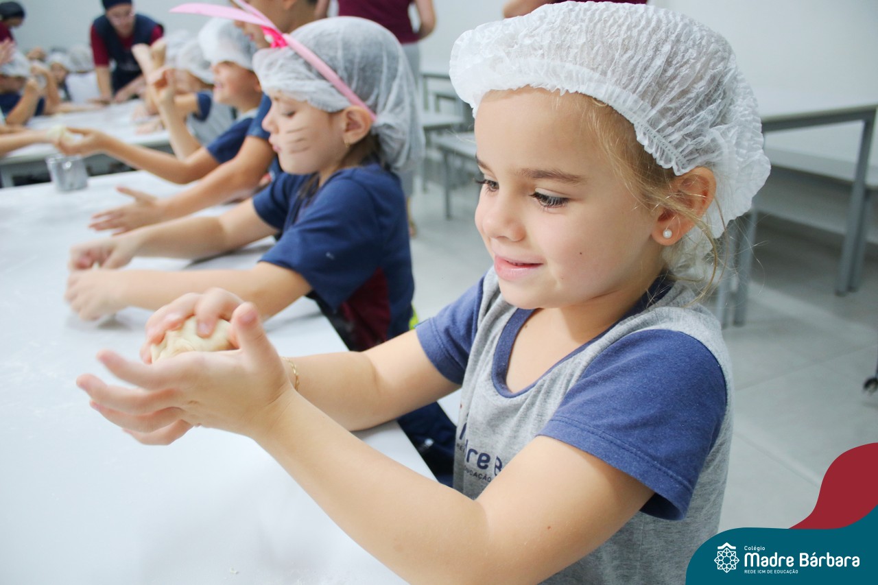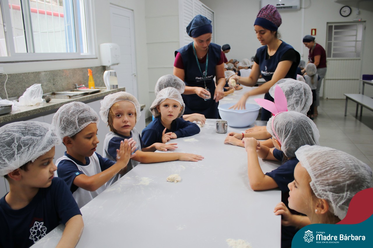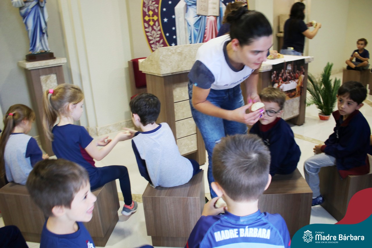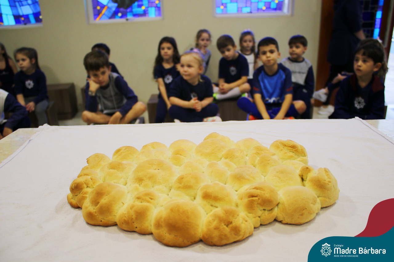 As turmas do nível 5 durante a semana de preparação para a Páscoa, fizeram um momento de culinária. Juntamente com suas professoras produziram um delicioso pão para ser partilhado entre as crianças. Quando o pão ficou pronto foi feita a partilha, um momento de muitas trocas e reflexões.