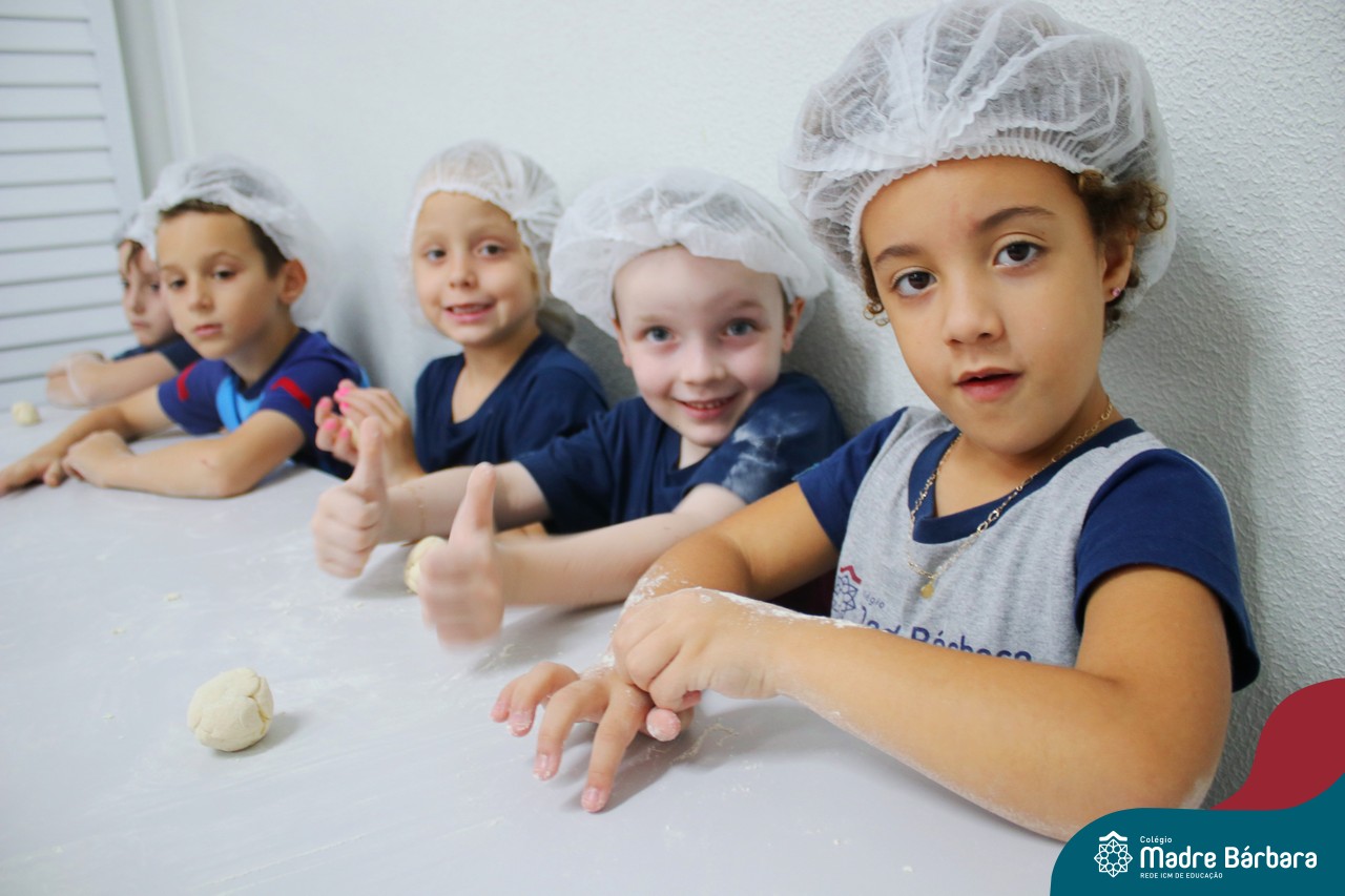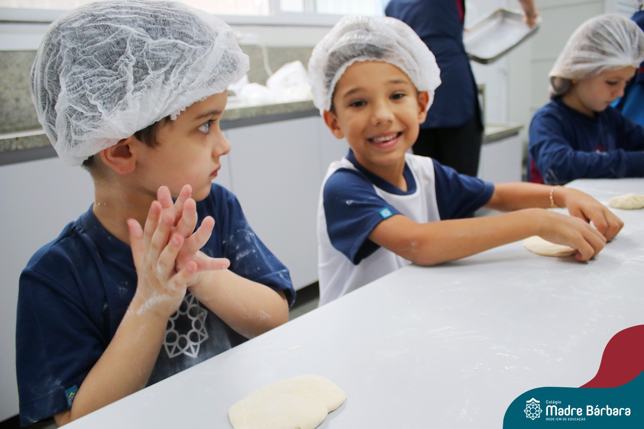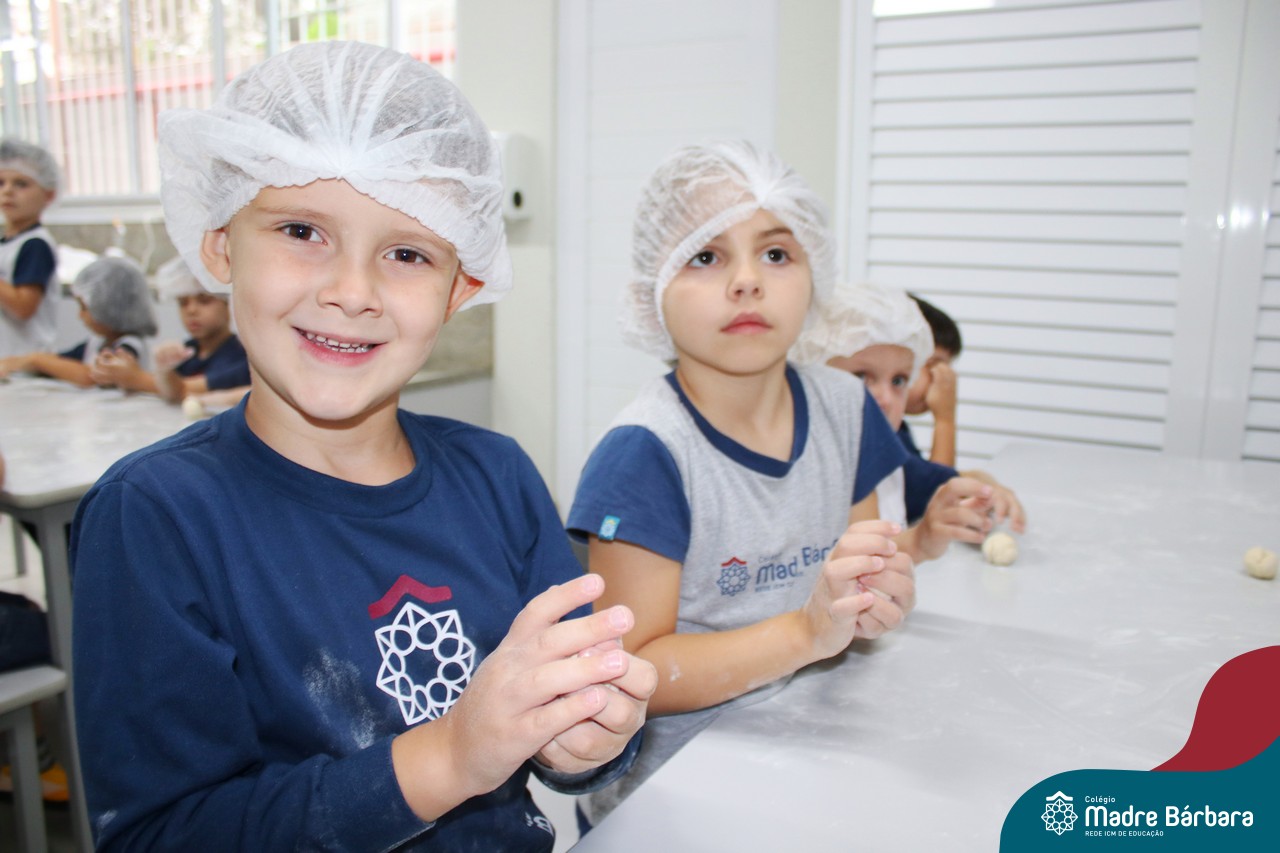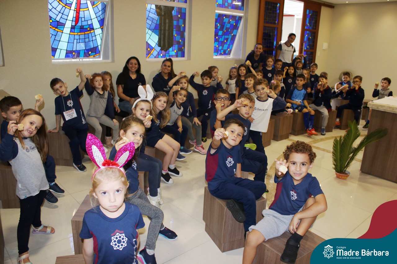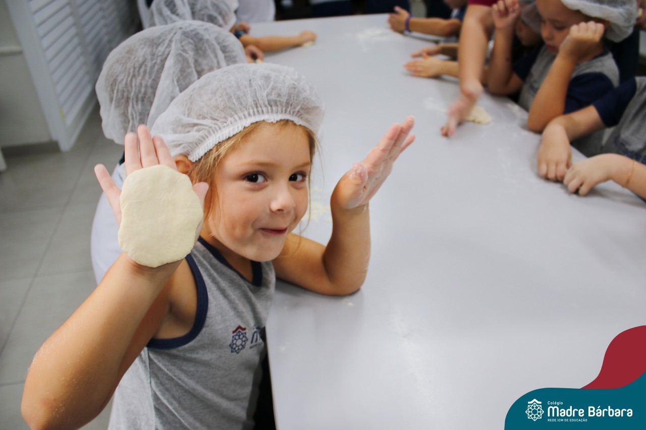 As turmas do nível 5 durante a semana de preparação para a Páscoa, fizeram um momento de culinária. Juntamente com suas professoras produziram um delicioso pão para ser partilhado entre as crianças. Quando o pão ficou pronto foi feita a partilha, um momento de muitas trocas e reflexões.