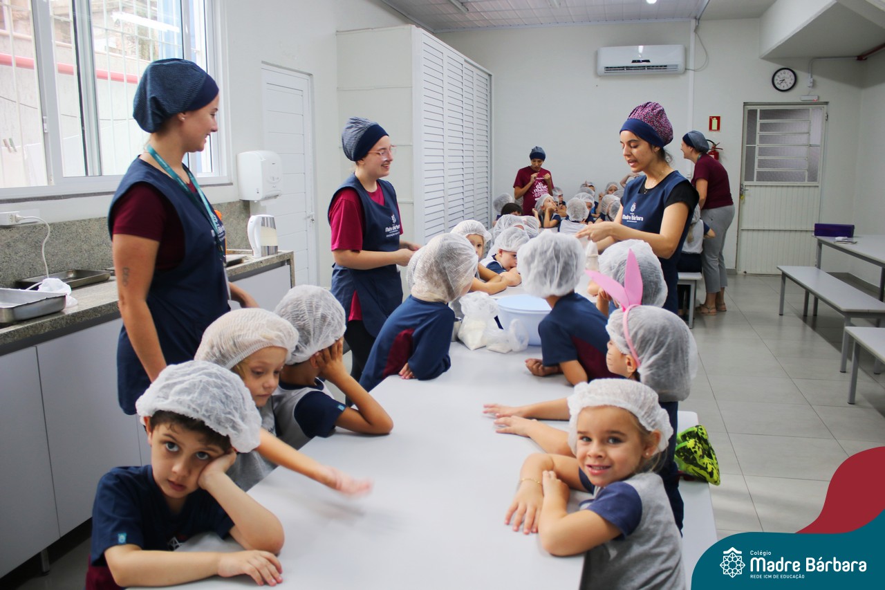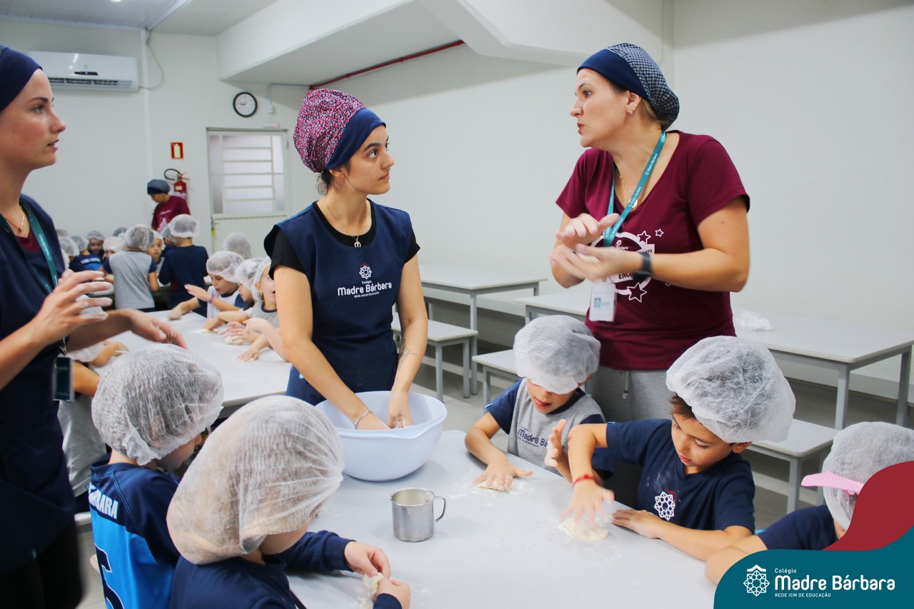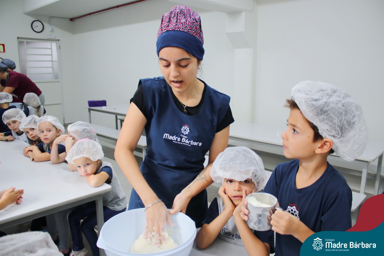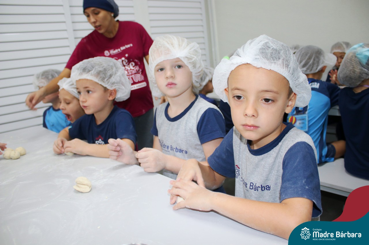 As turmas do nível 5 durante a semana de preparação para a Páscoa, fizeram um momento de culinária. Juntamente com suas professoras produziram um delicioso pão para ser partilhado entre as crianças. Quando o pão ficou pronto foi feita a partilha, um momento de muitas trocas e reflexões.