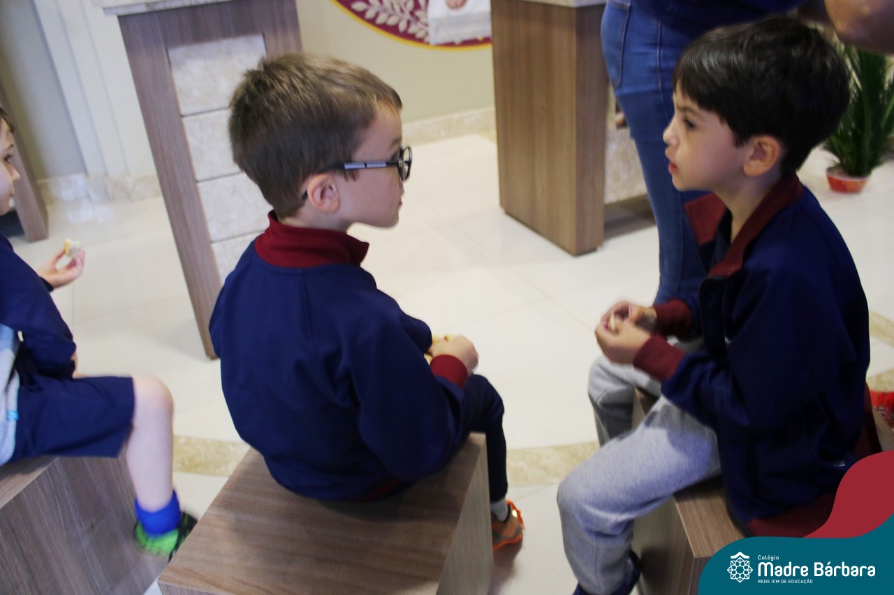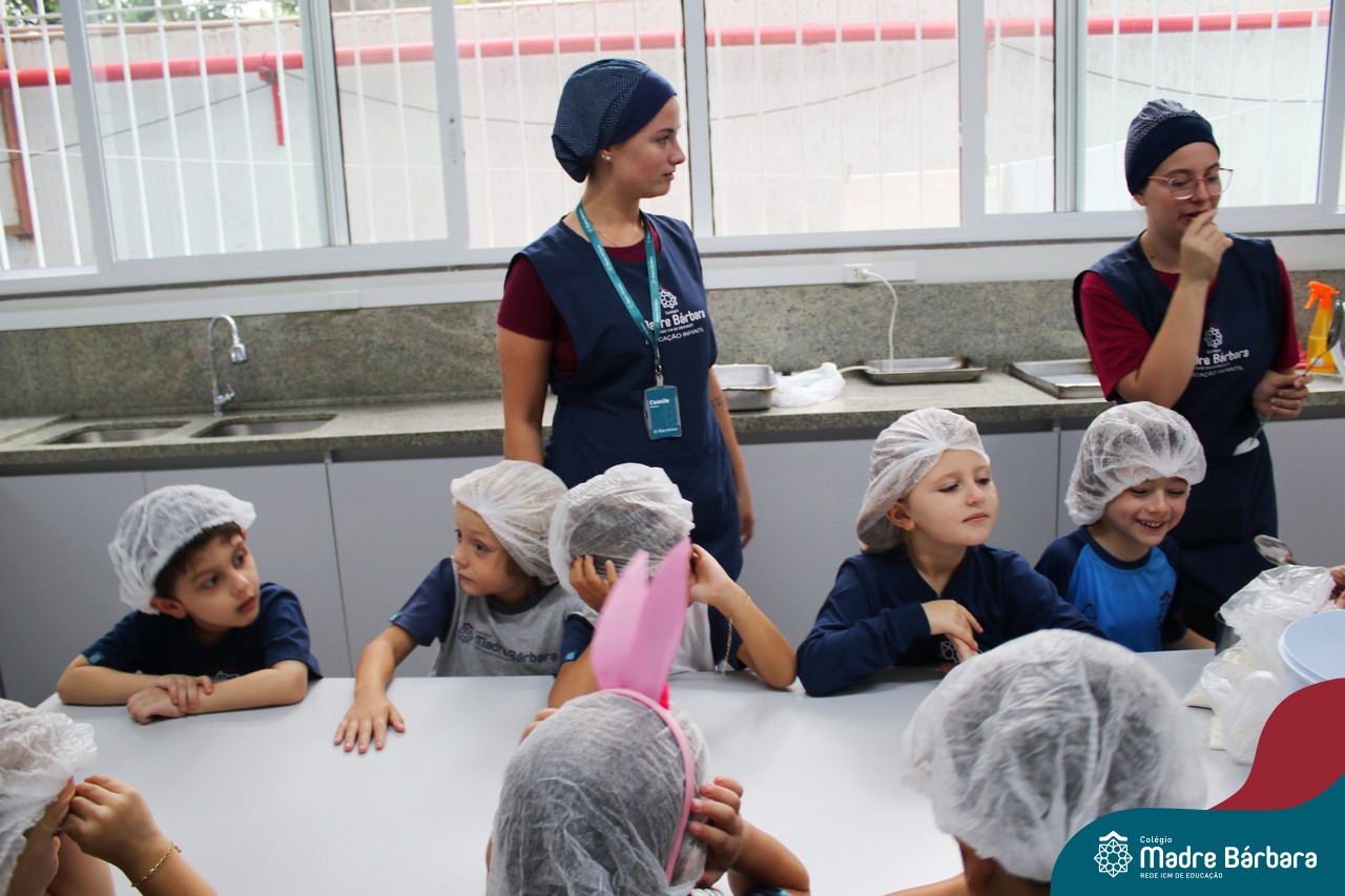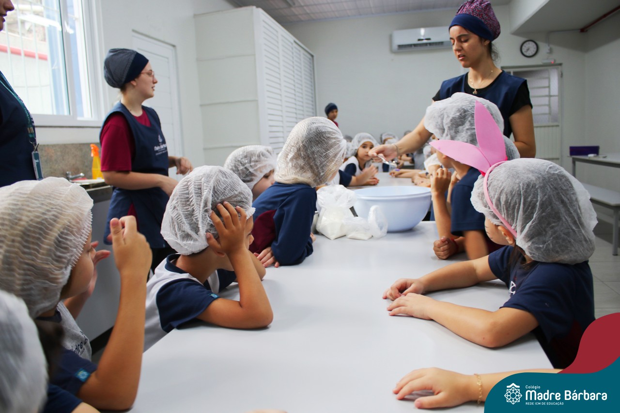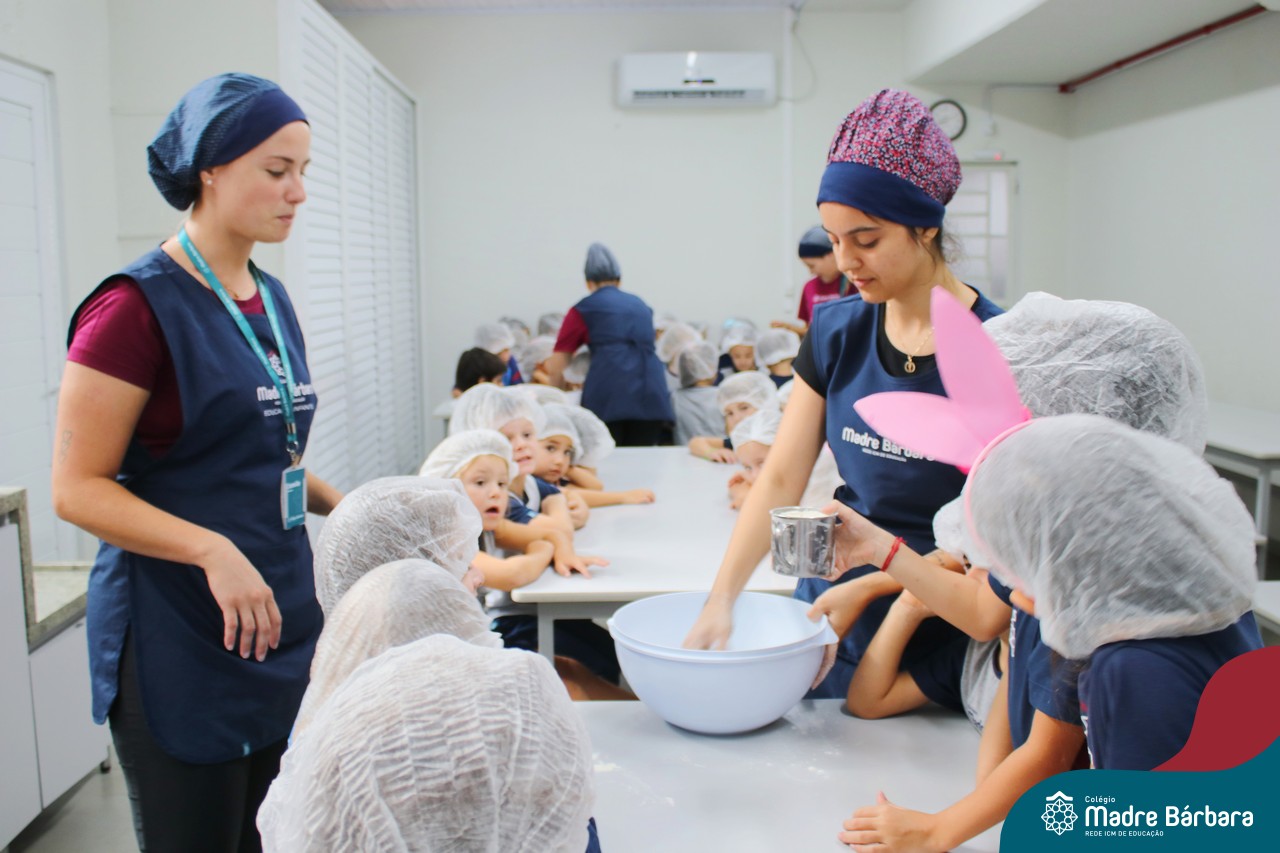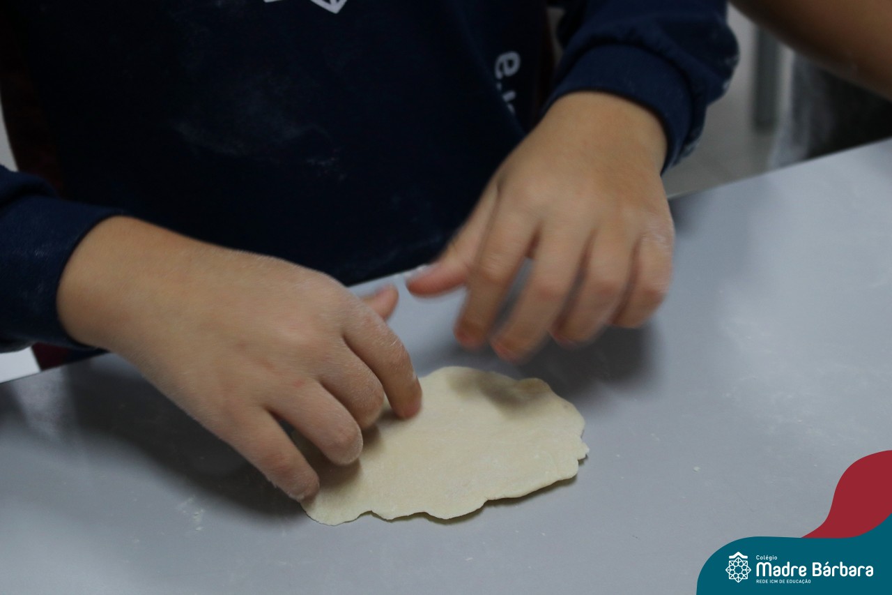 As turmas do nível 5 durante a semana de preparação para a Páscoa, fizeram um momento de culinária. Juntamente com suas professoras produziram um delicioso pão para ser partilhado entre as crianças. Quando o pão ficou pronto foi feita a partilha, um momento de muitas trocas e reflexões.