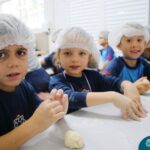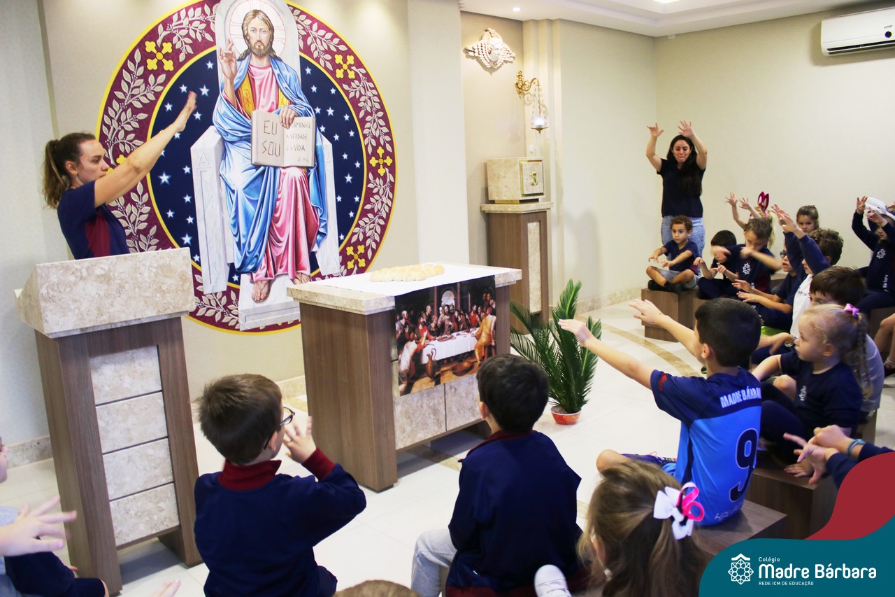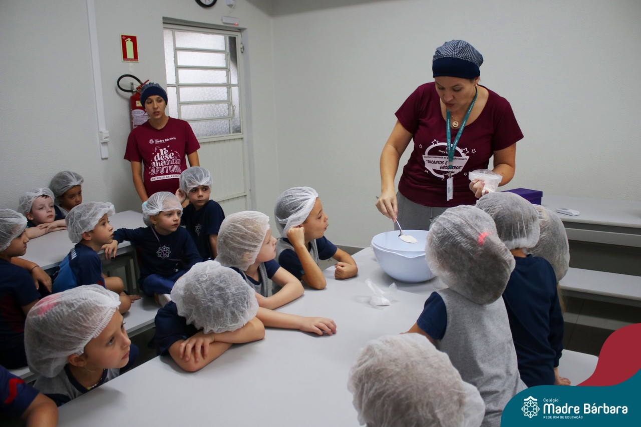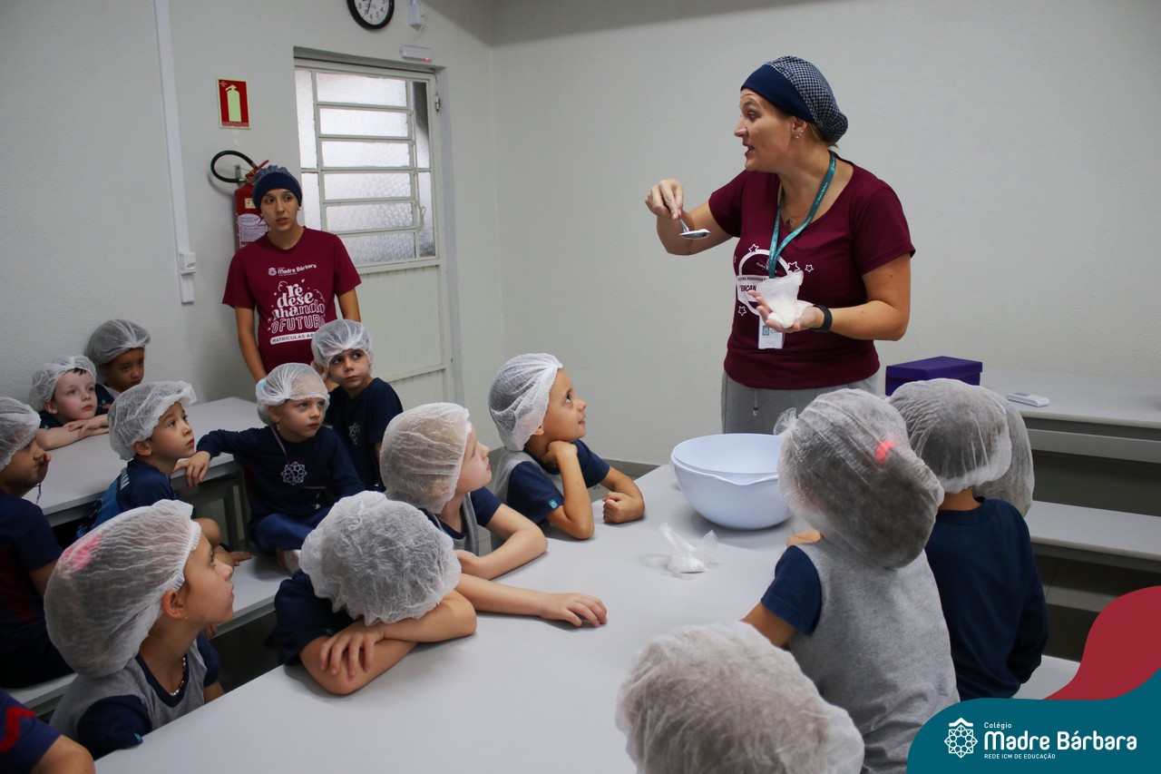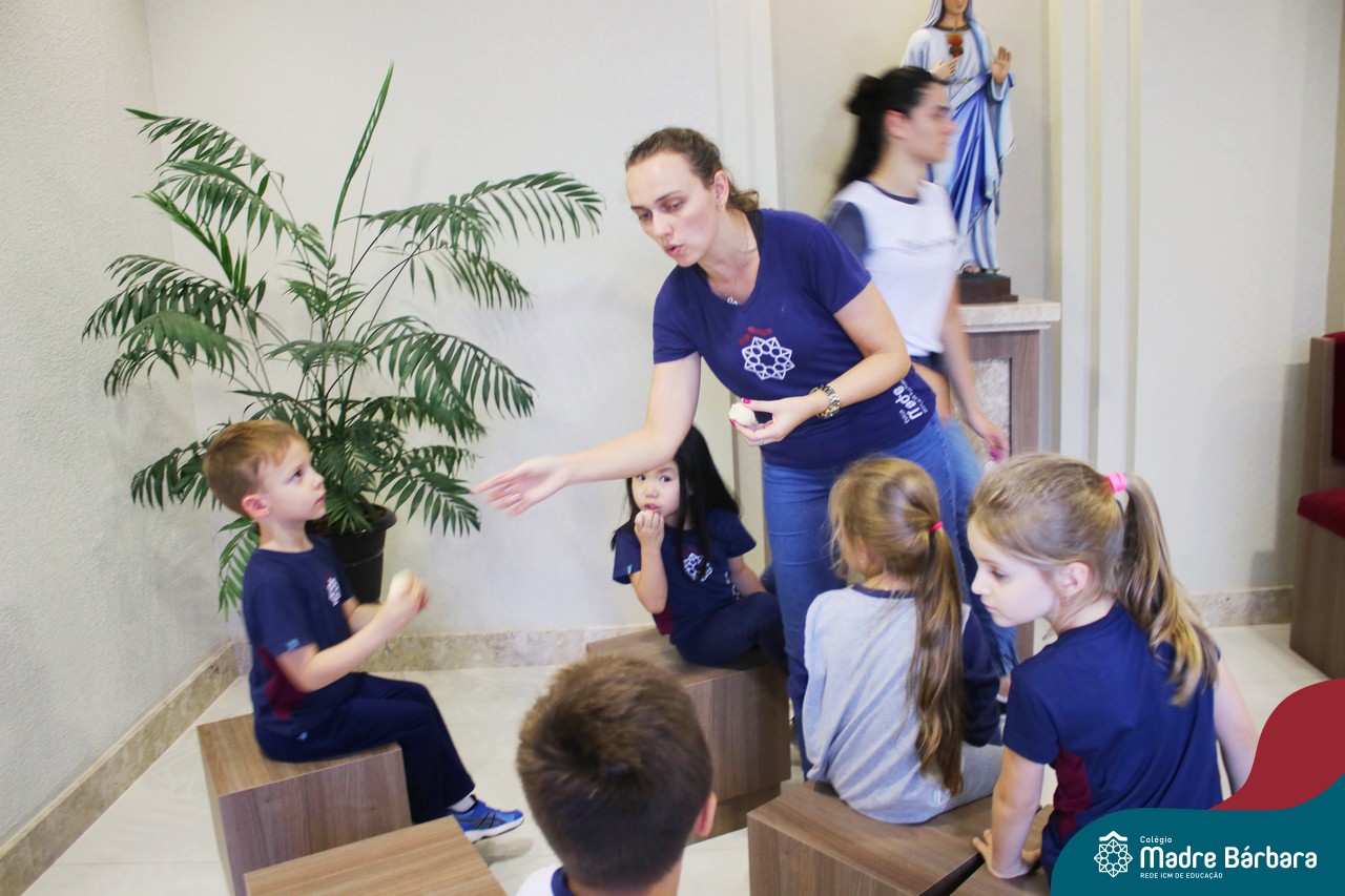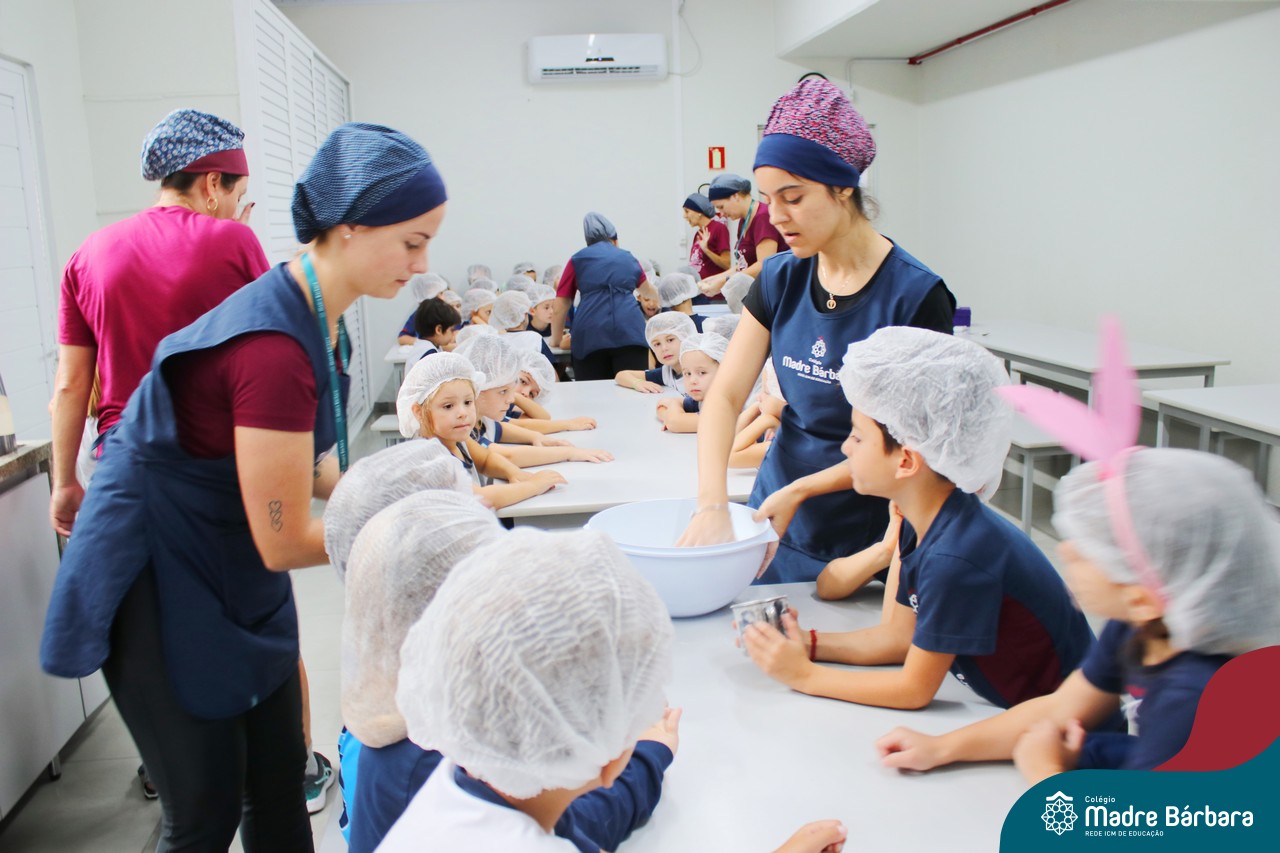 As turmas do nível 5 durante a semana de preparação para a Páscoa, fizeram um momento de culinária. Juntamente com suas professoras produziram um delicioso pão para ser partilhado entre as crianças. Quando o pão ficou pronto foi feita a partilha, um momento de muitas trocas e reflexões.