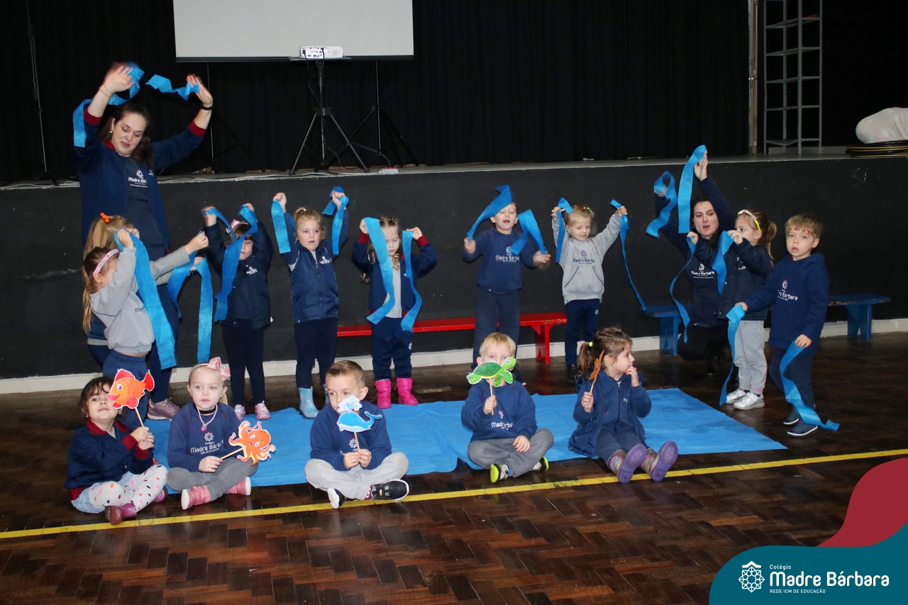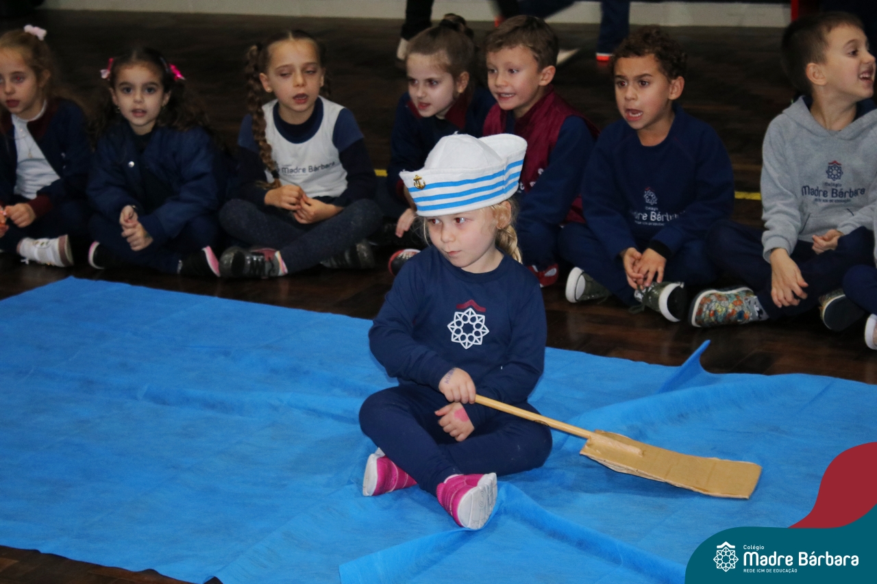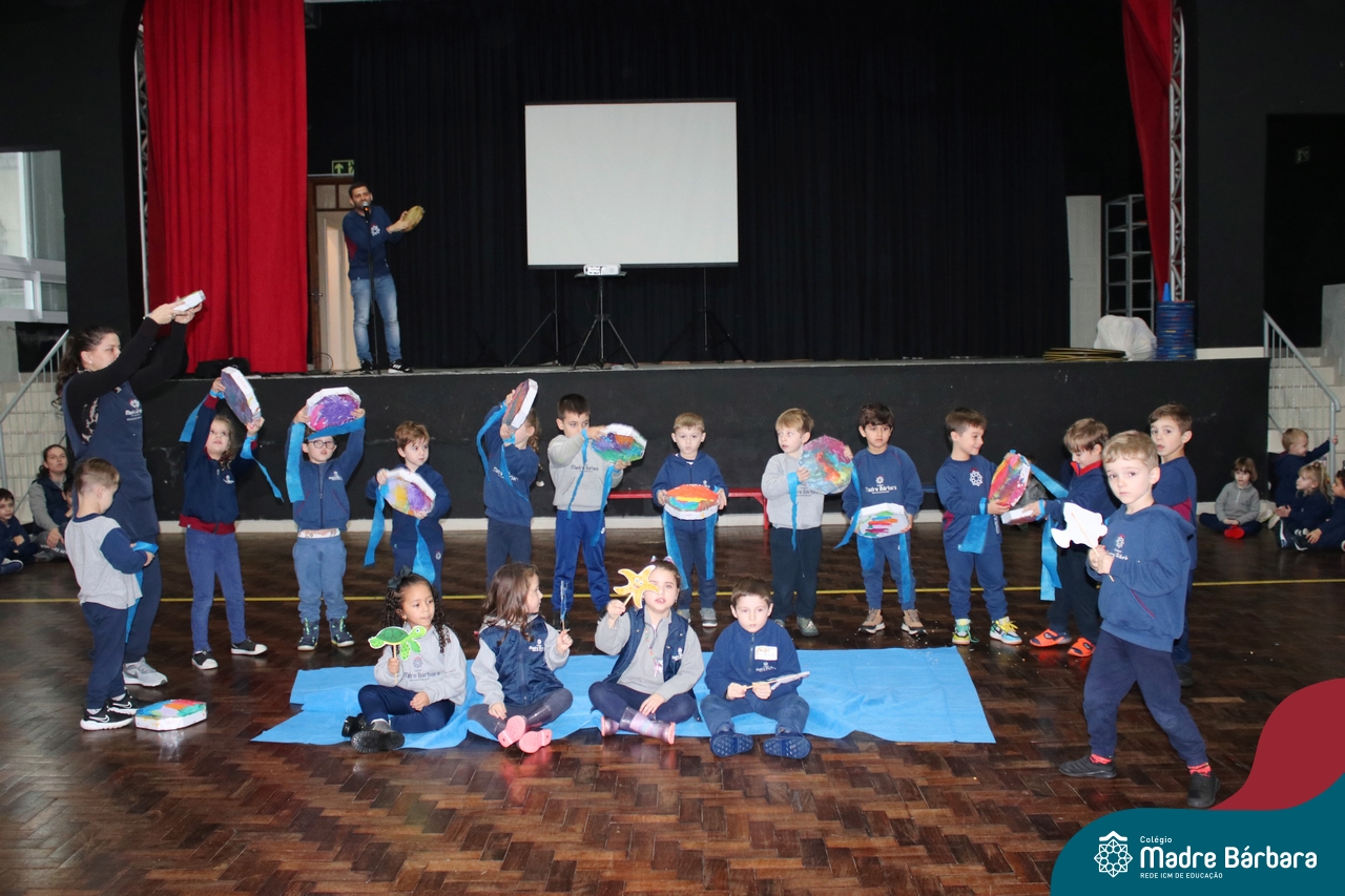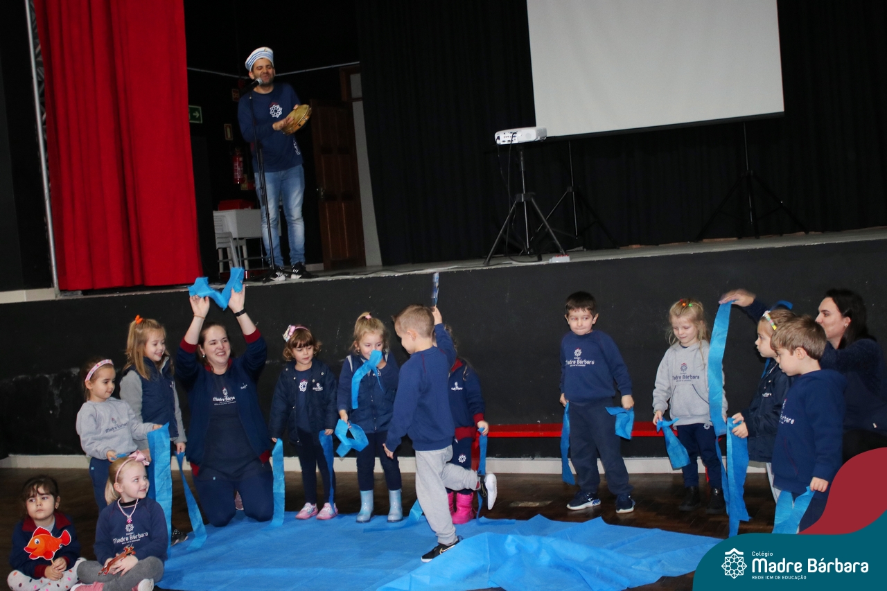 Muita imaginação e um imenso mar de fantasia marcaram a semana da Educação Infantil. As crianças mergulharam na aventura para descobrirem e compartilharem: “O que temos nesse mar?” …Além de peixes, baleia e estrelas do mar, foram encontrados nessa aventura: submarinos, barcos, marinheiro e muita música e diversão. A atividade ocorreu em conjunto com as professoras e o professor de música, Gilson Chacon. Através de um “faz de conta que estavam no mar”, puderam cantar e interpretar as músicas: “A maré está cheia”, “Marinheiro” e “Yellow submarine” . A situação ocorreu nos turnos da manhã e da tarde e os protagonistas foram os pequenos dos Níveis 4B (manhã), 4D (tarde), 5A, 5B e 5D. A professora de Inglês Marcela Fischer, preparou os alunos do 5A para cantarem a música em inglês. A maioria das turmas da Educação Infantil esteve prestigiando, brincando e se divertindo nessa aventura de música e alegria!